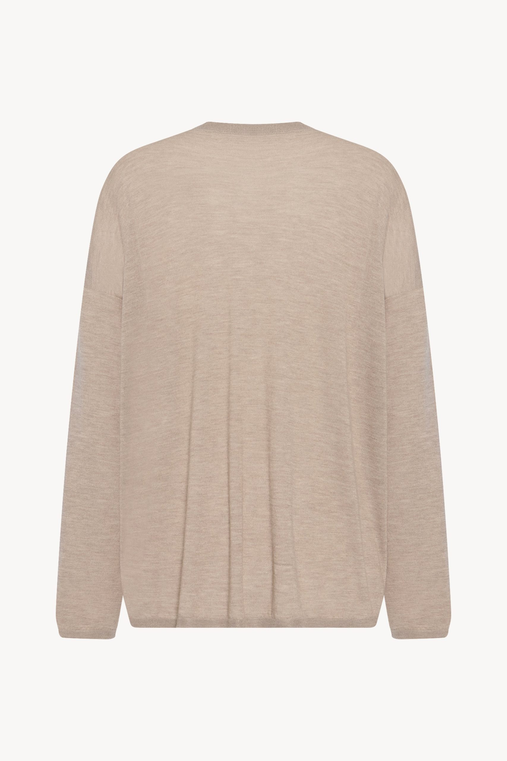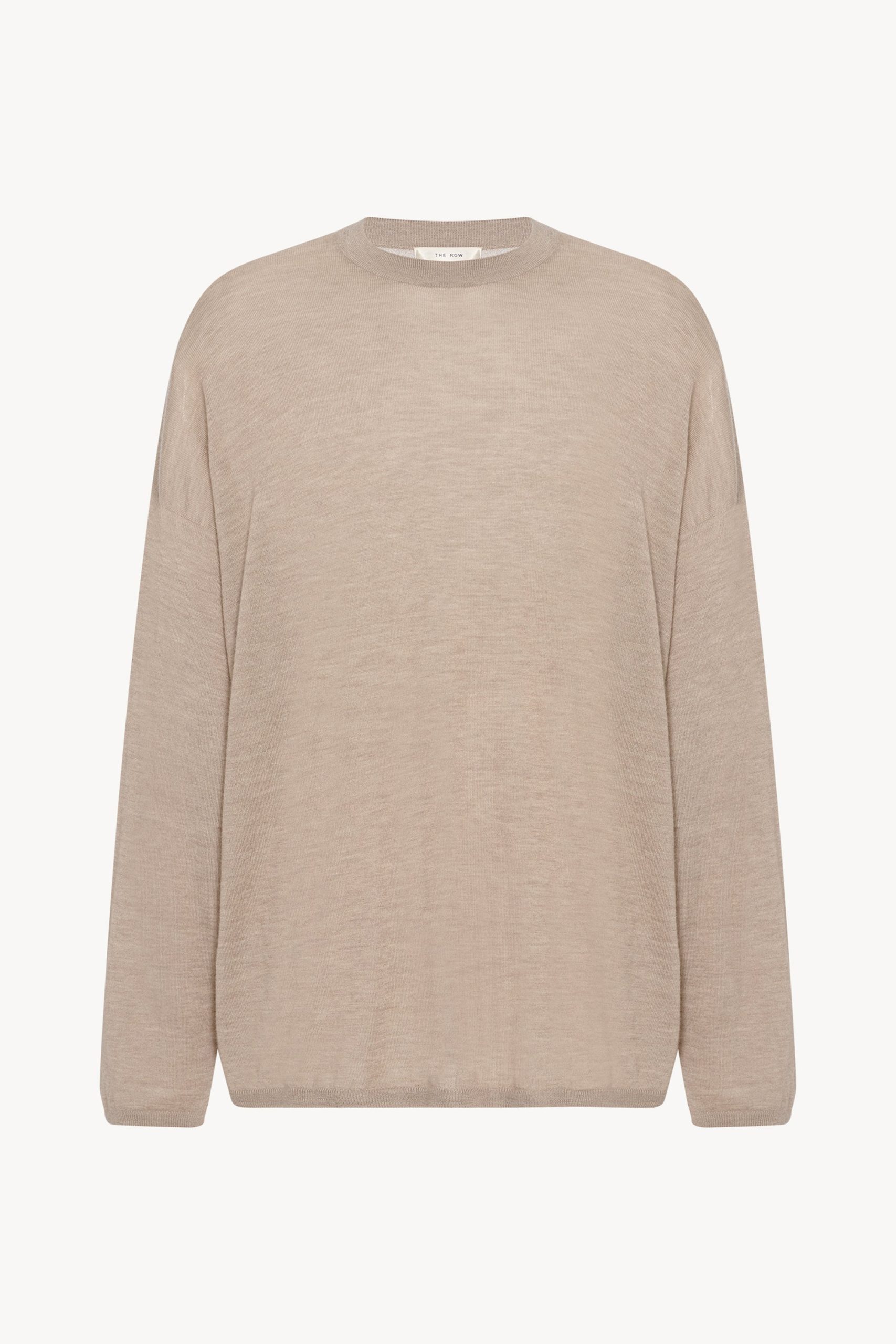 Oversized crewneck top in fine lightweight cashmere with dropped shoulders and ribbed neckline. cuffs. and hem.