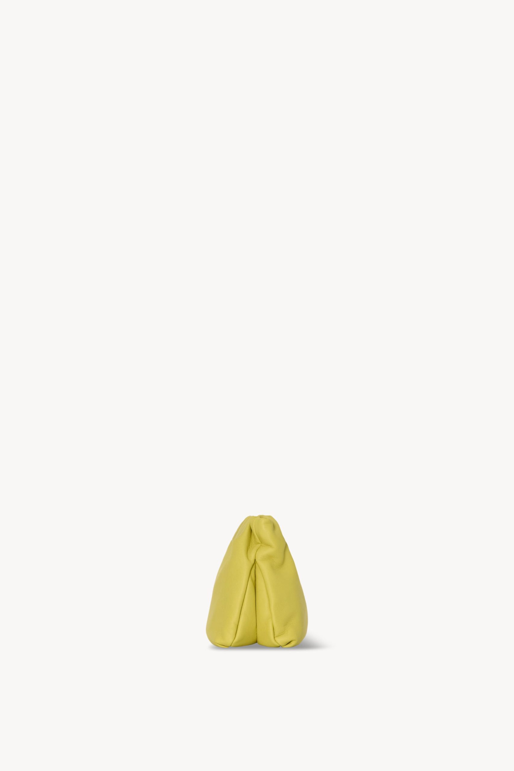 Ruched clutch in buttery lambskin leather with hidden adjustable shoulder strap and hinged frame closure.