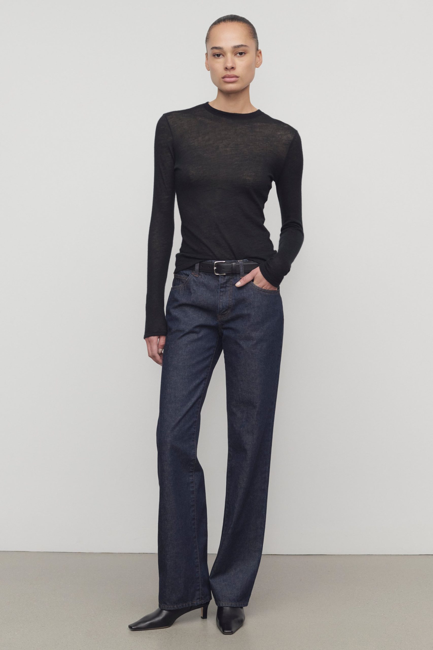 Mid-rise jean in Japanese Supima cotton denim with contrast topstitching and classic 5-pocket construction.