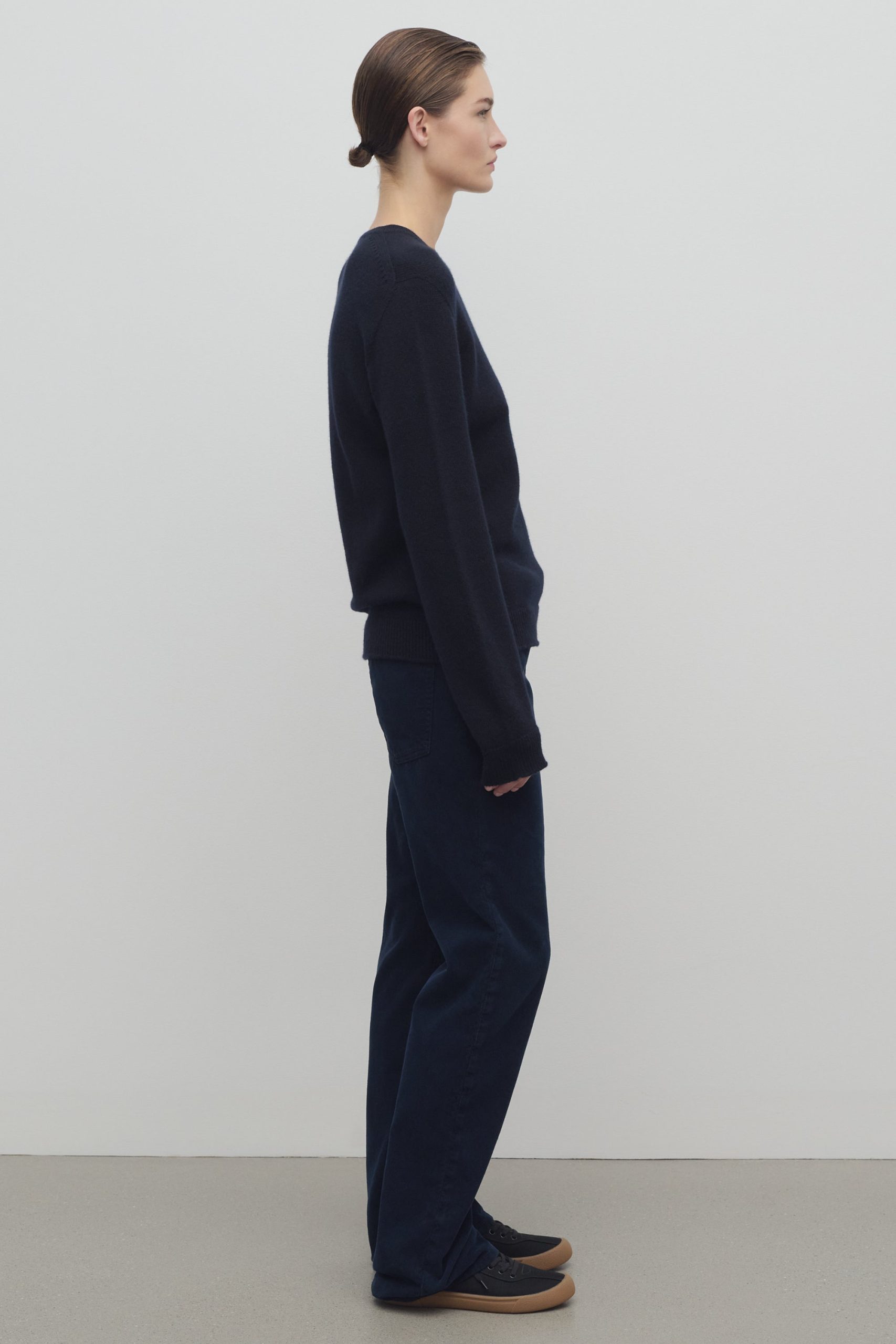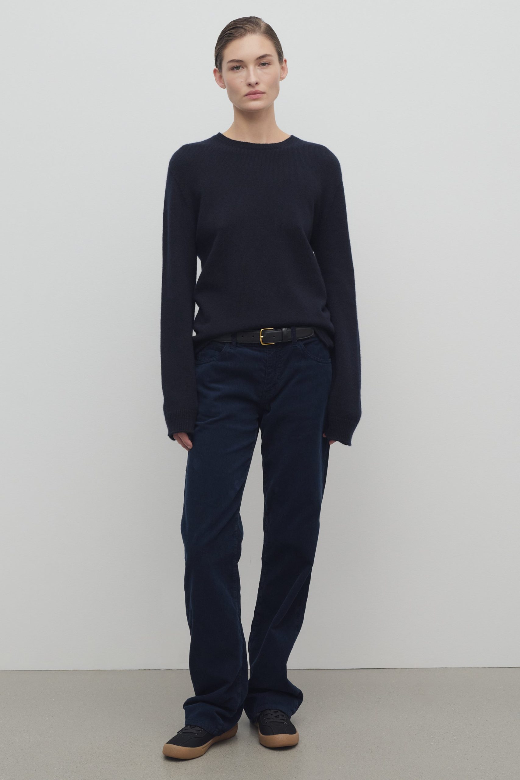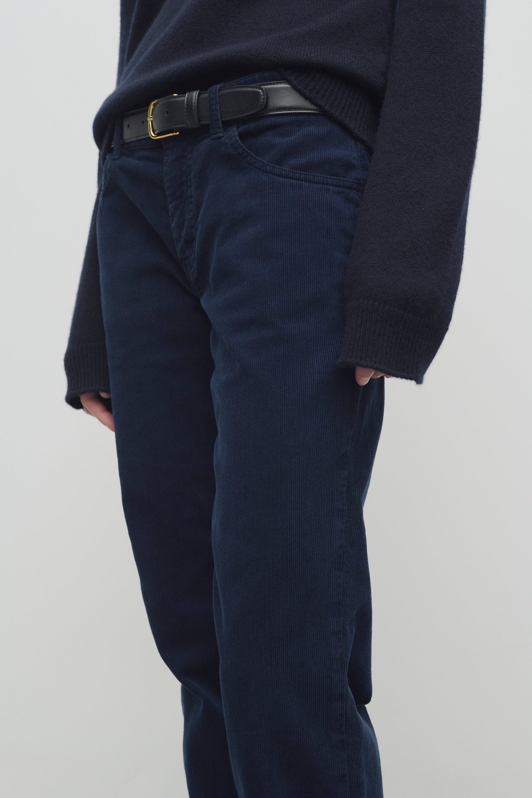 Mid-rise pant in Japanese cotton corduroy with tonal topstitching and classic 5-pocket construction.