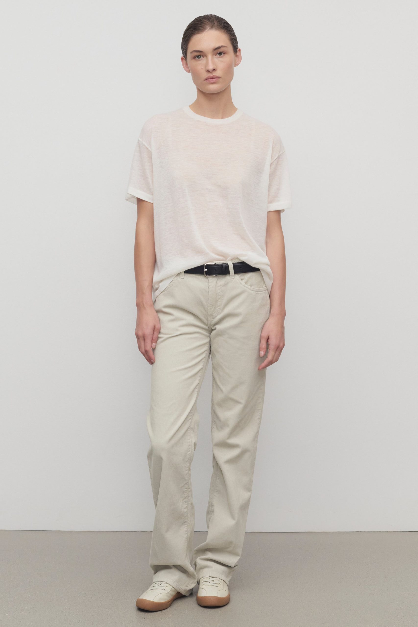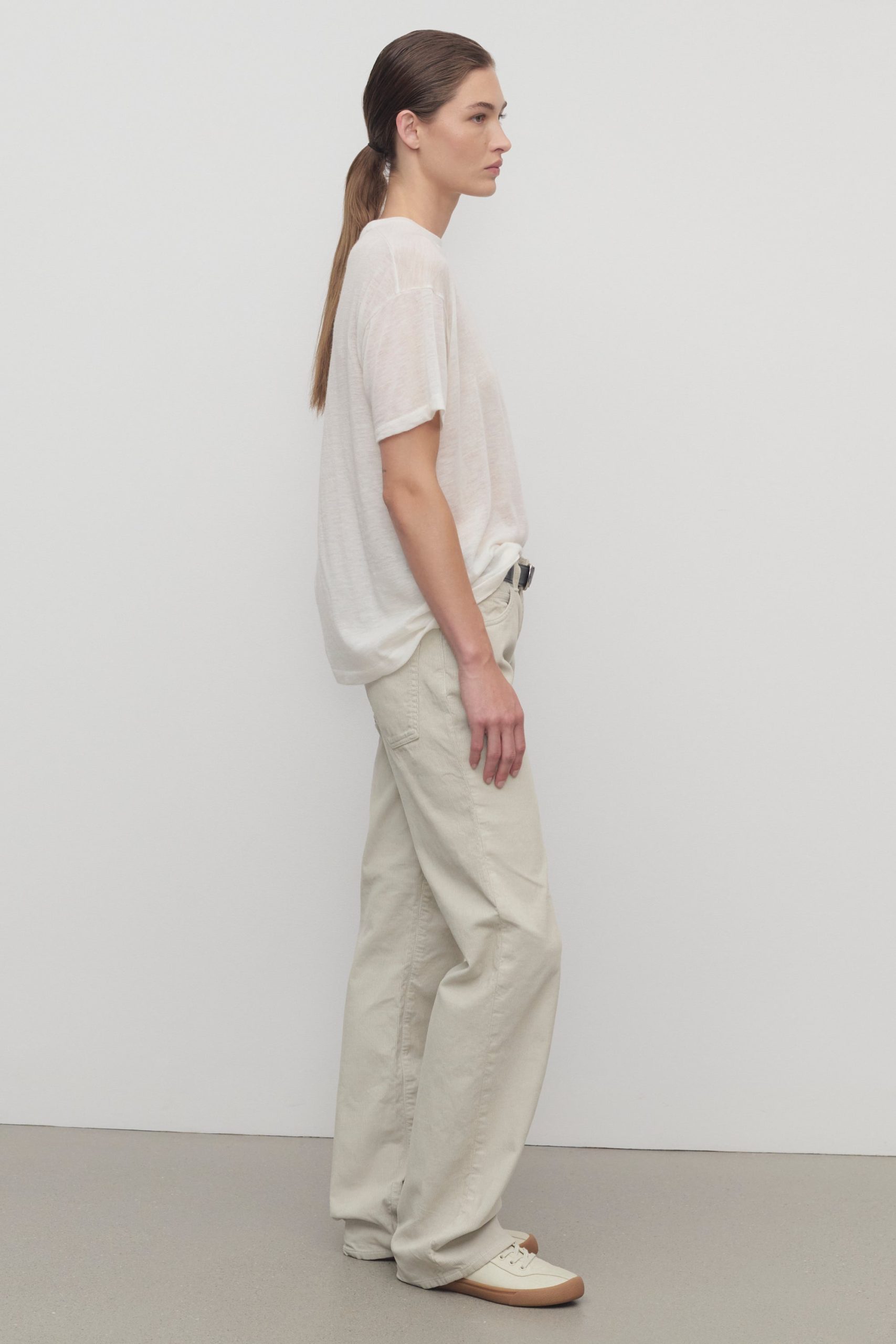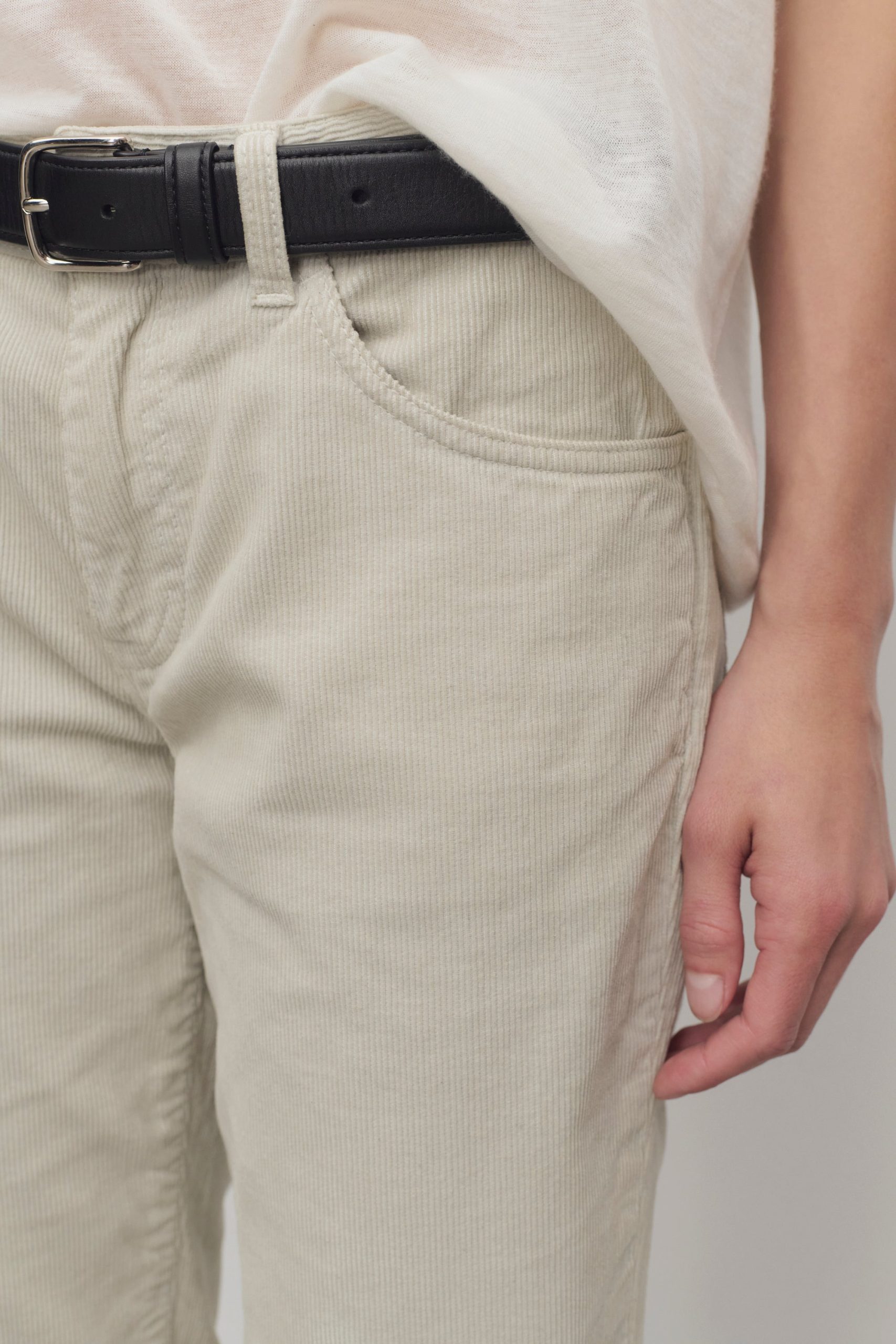 Mid-rise pant in Japanese cotton corduroy with straight leg. tonal topstitching. and classic 5-pocket construction.