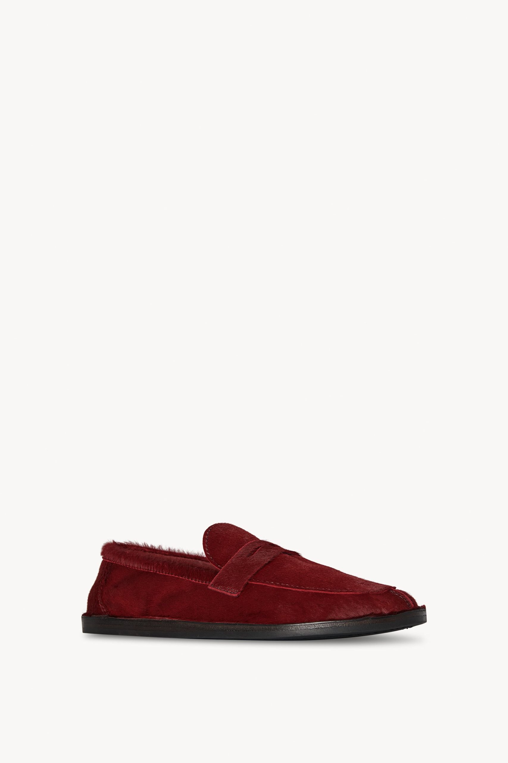 Artisanally-crafted loafer in sleek pony hair with round toe. stitched detailing. and flexible sole.
