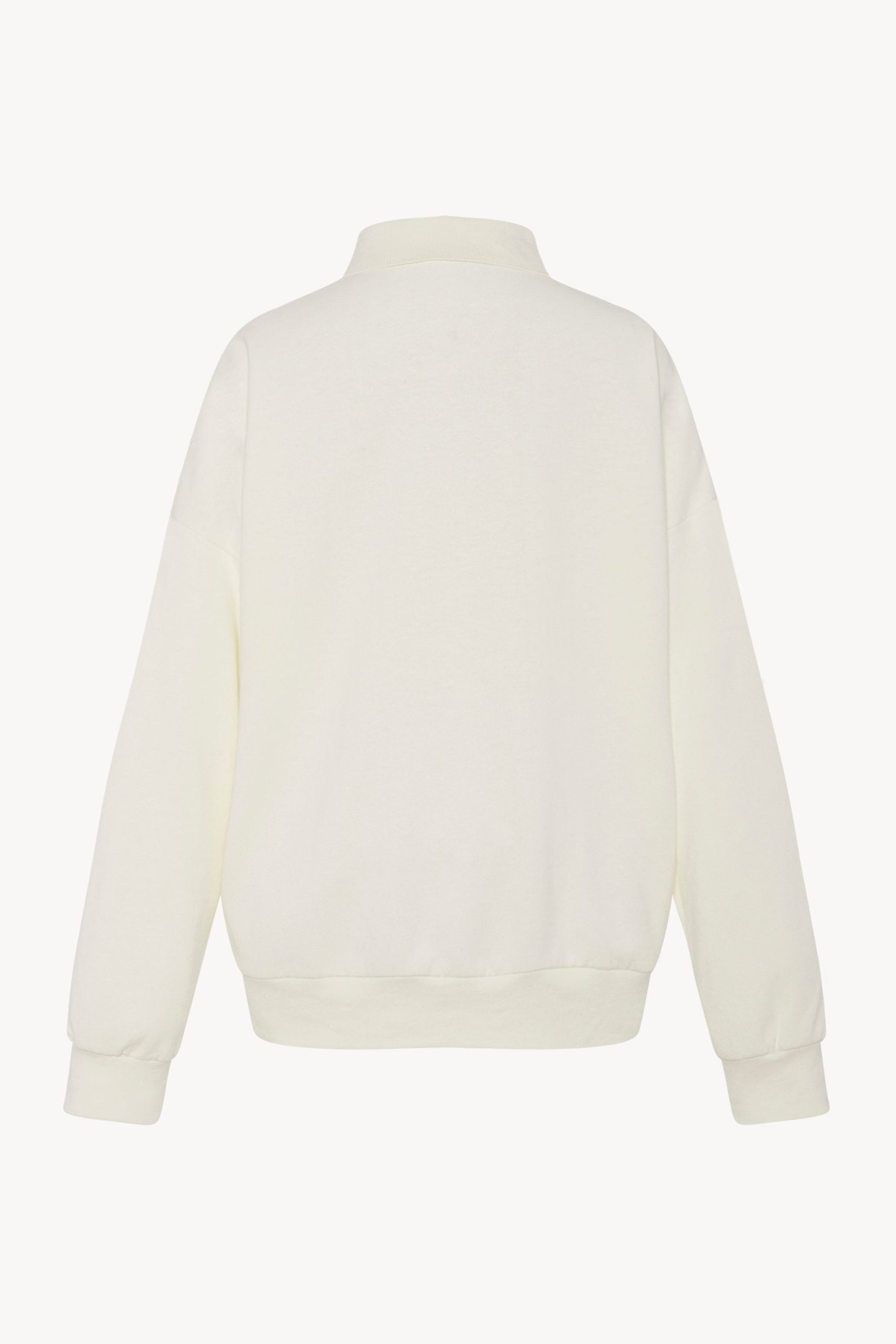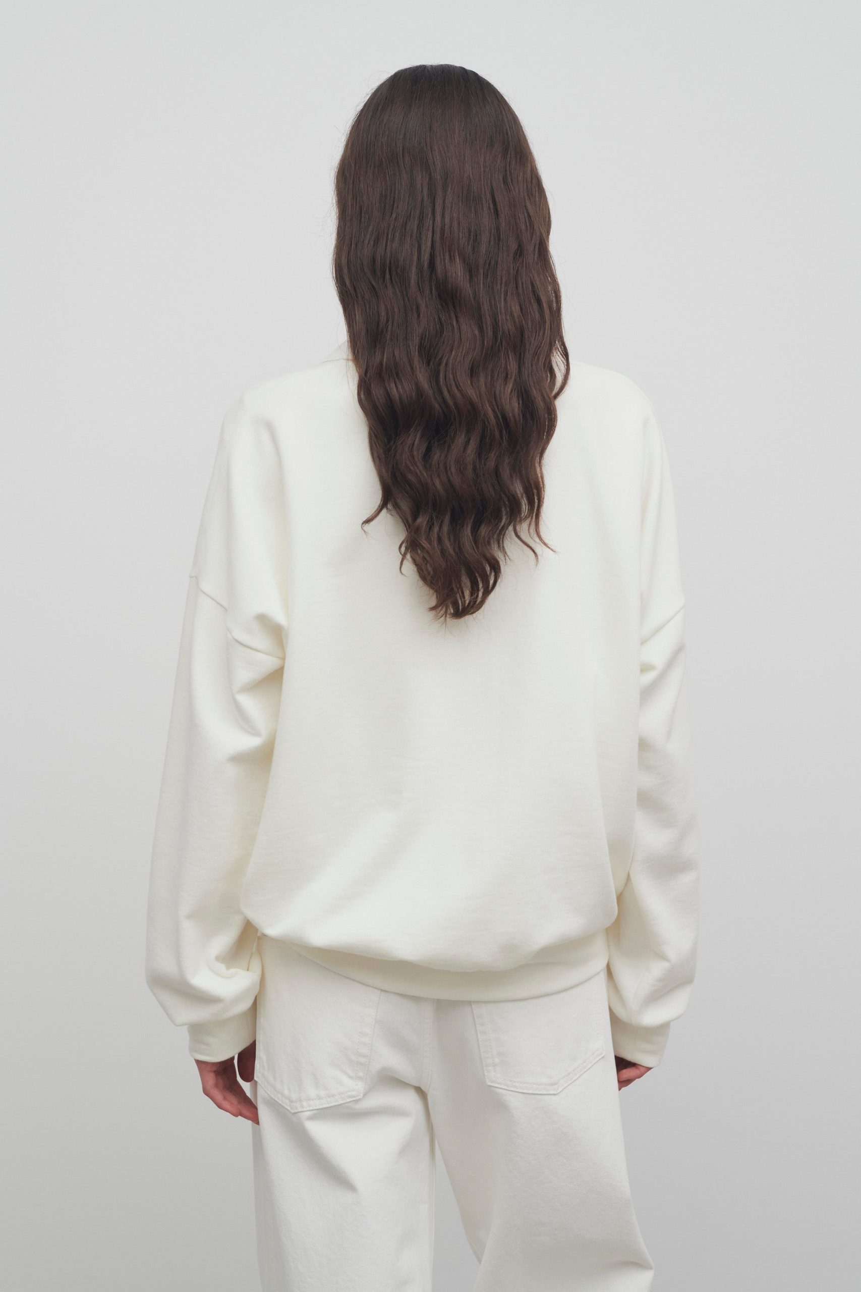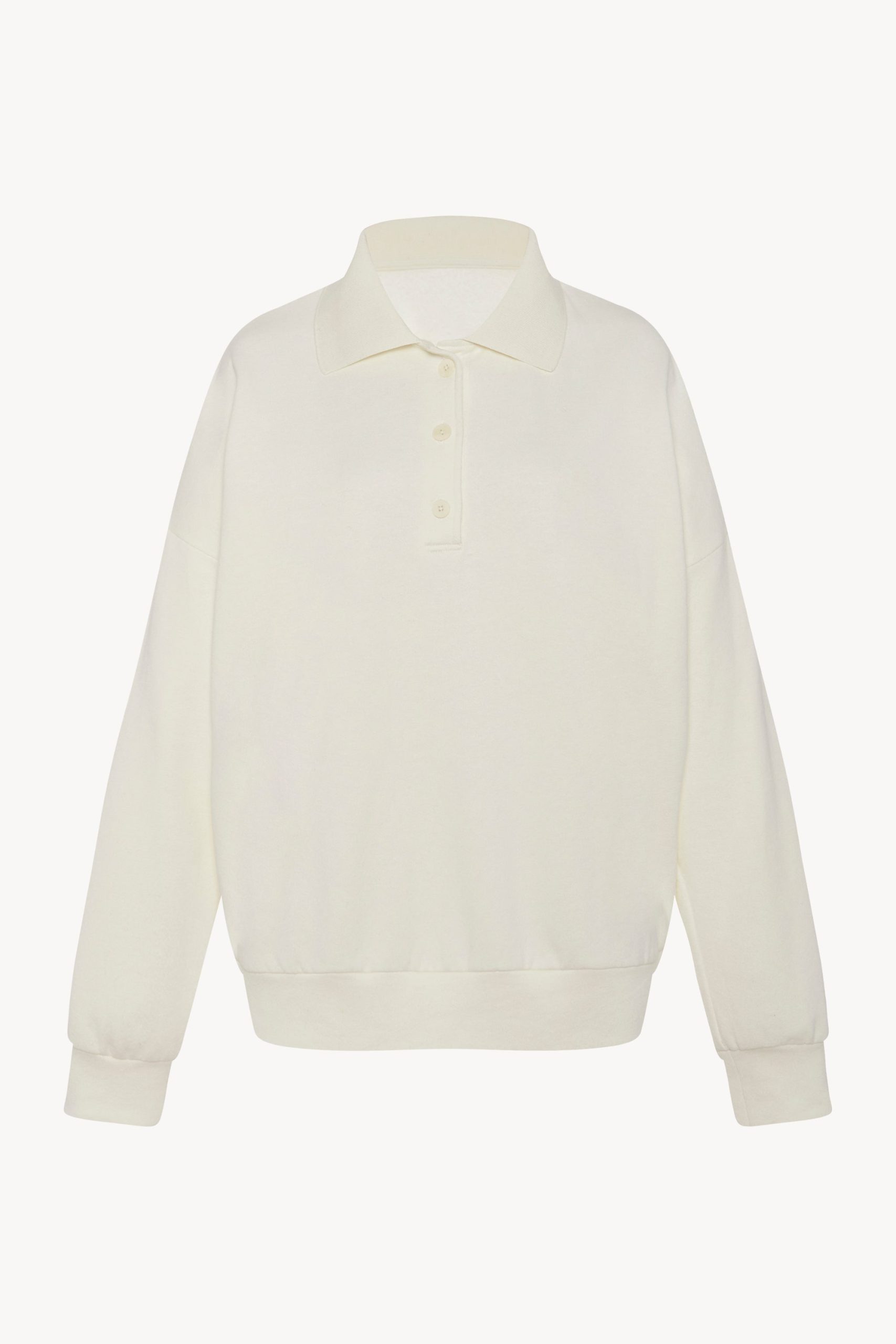 Oversized long-sleeved polo in fine French terry cloth with dropped shoulder and custom ribbed-knit collar.