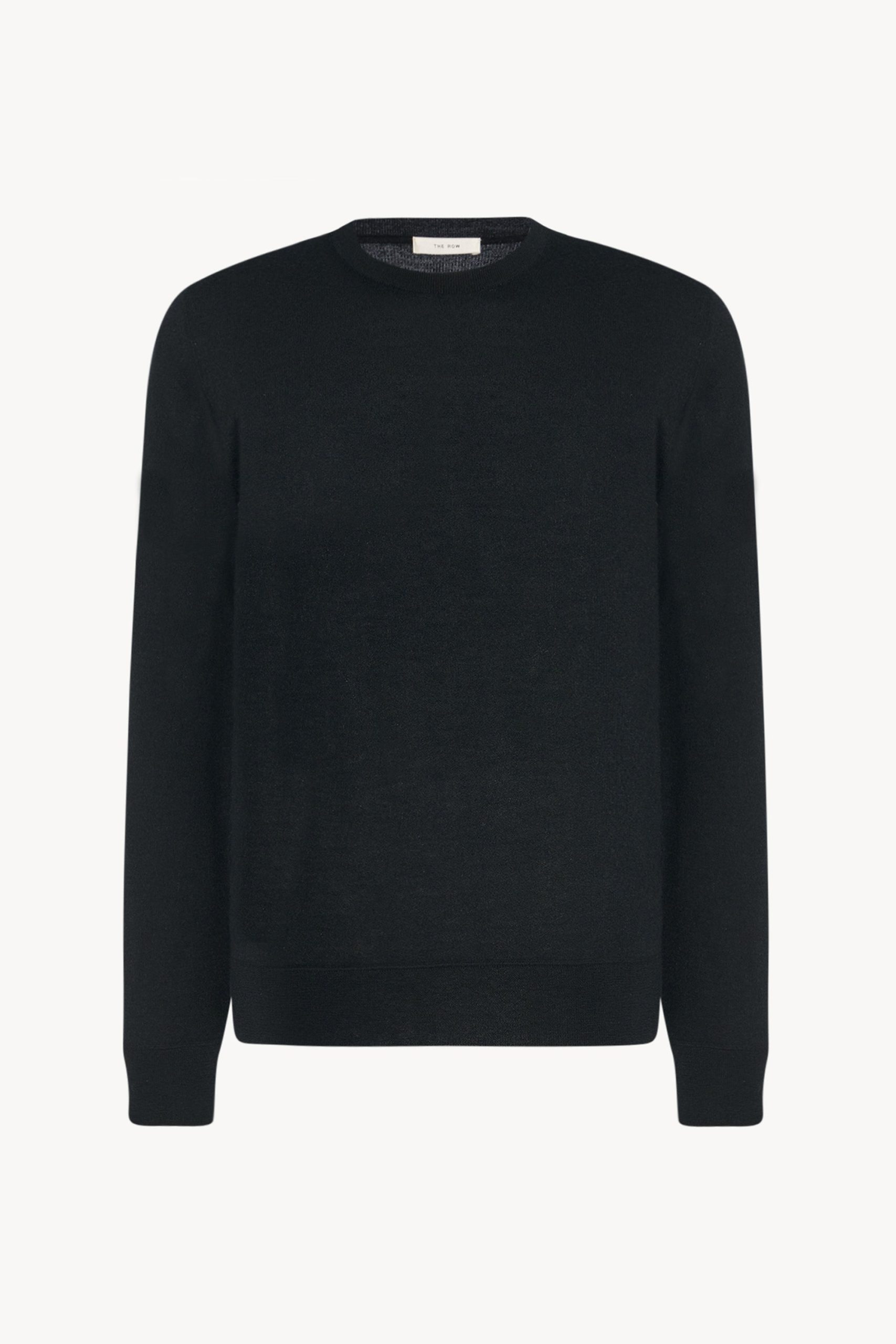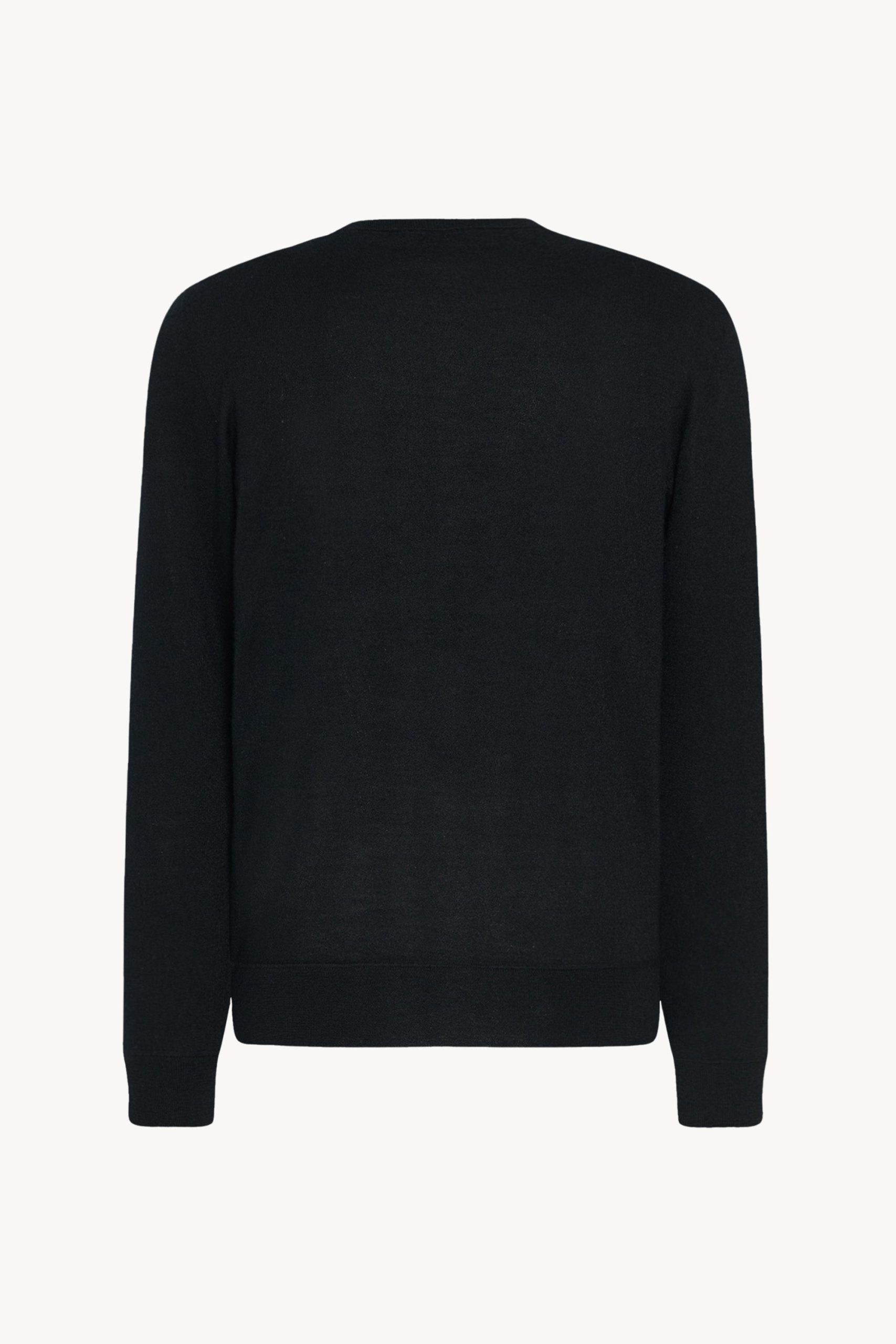 Classic crewneck sweater in ultrafine cashmere jersey with relaxed fit. covered stitch detailing. and ribbed neckline. cuffs. and hem.