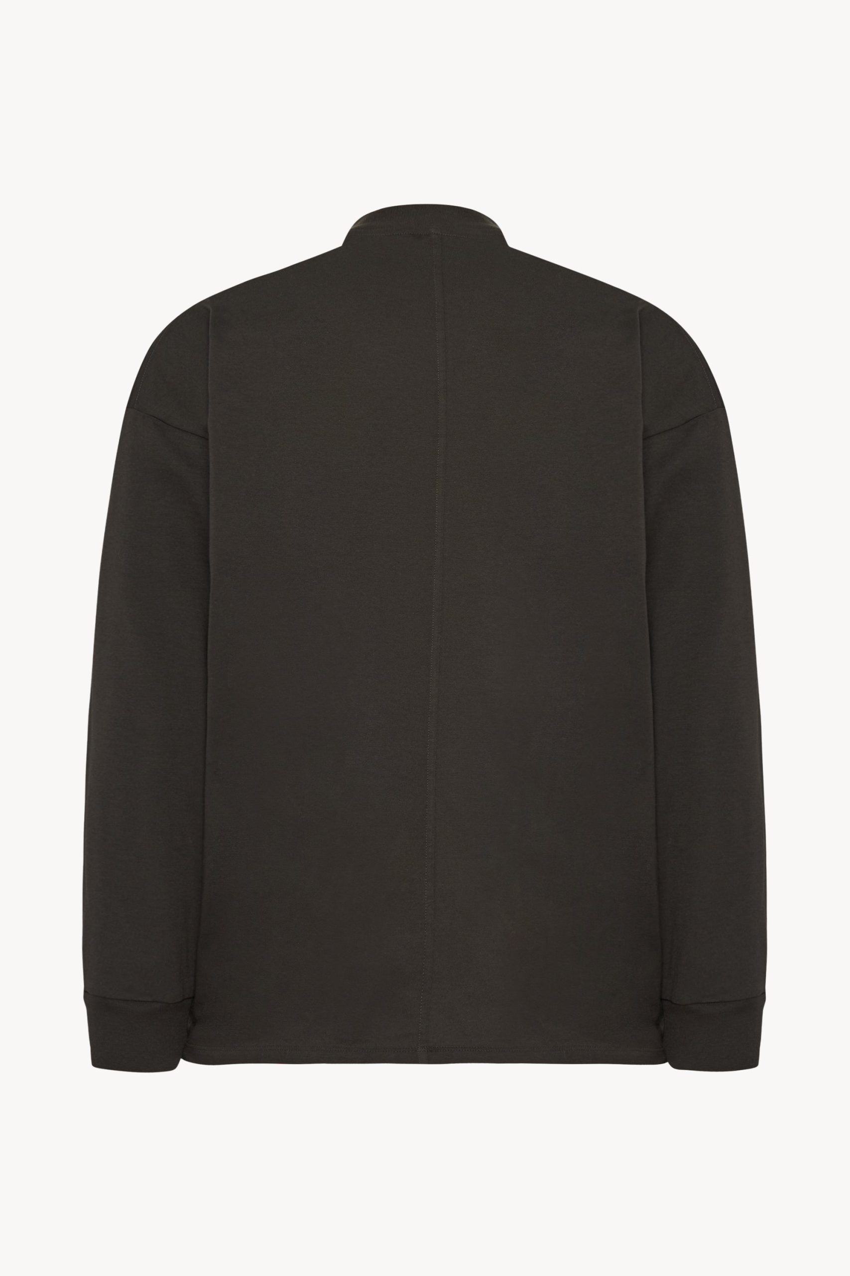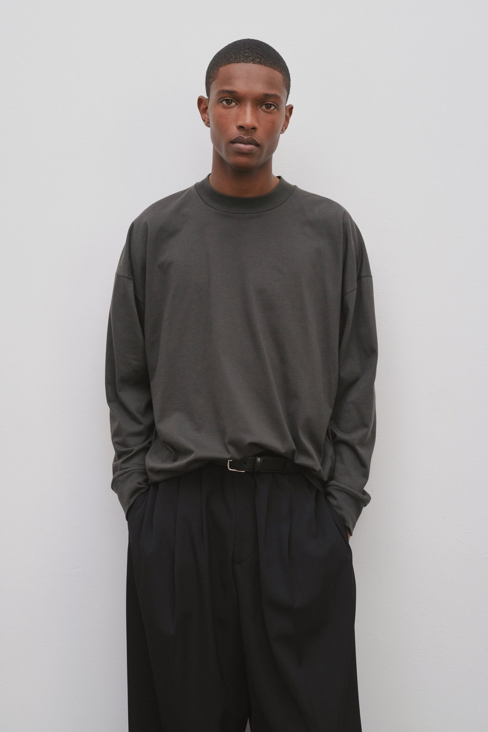 Long-sleeved mock neck t-shirt in Supima cotton jersey with oversized fit and ribbed collar.