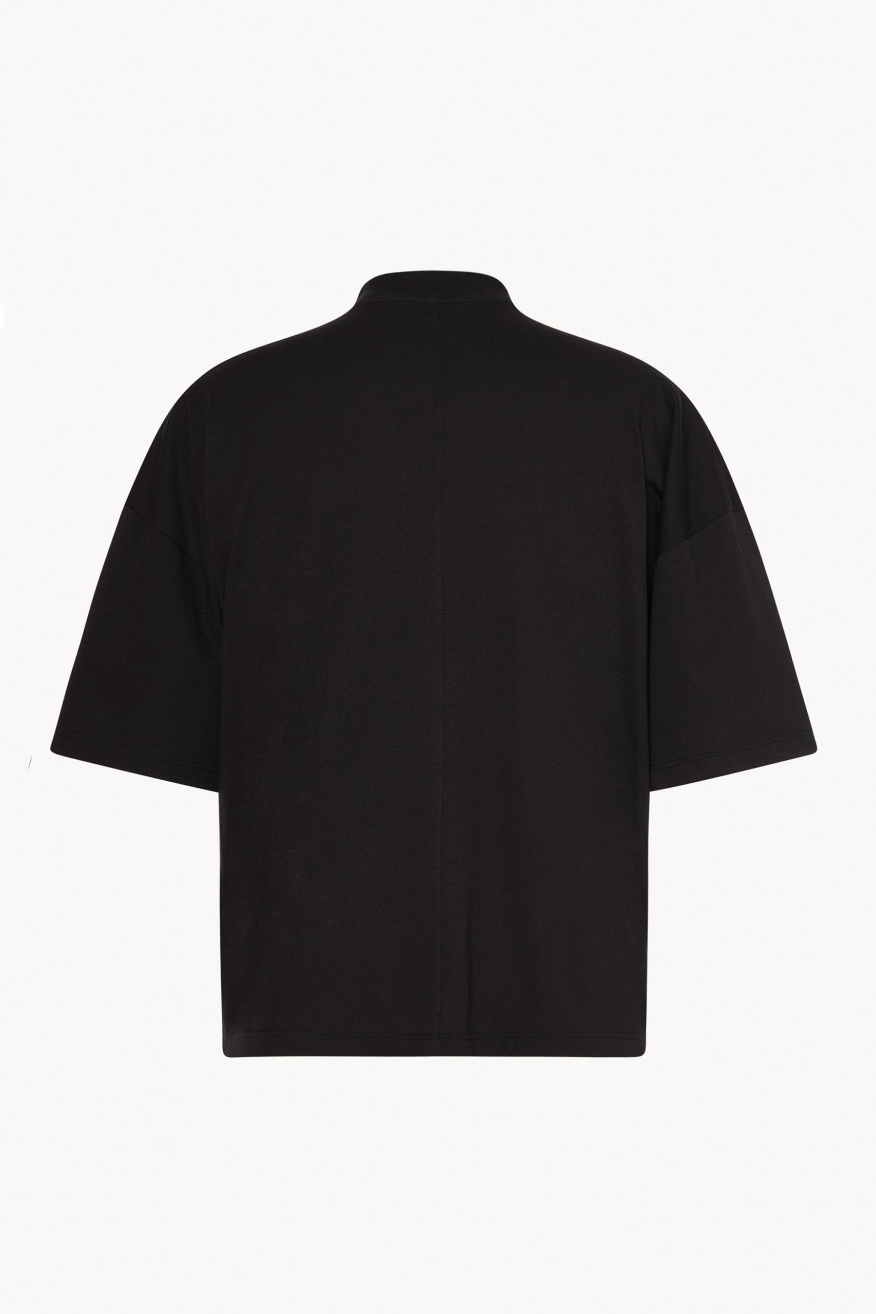 Short-sleeved mock neck t-shirt in Supima cotton jersey with ribbed collar and signature center back detail.