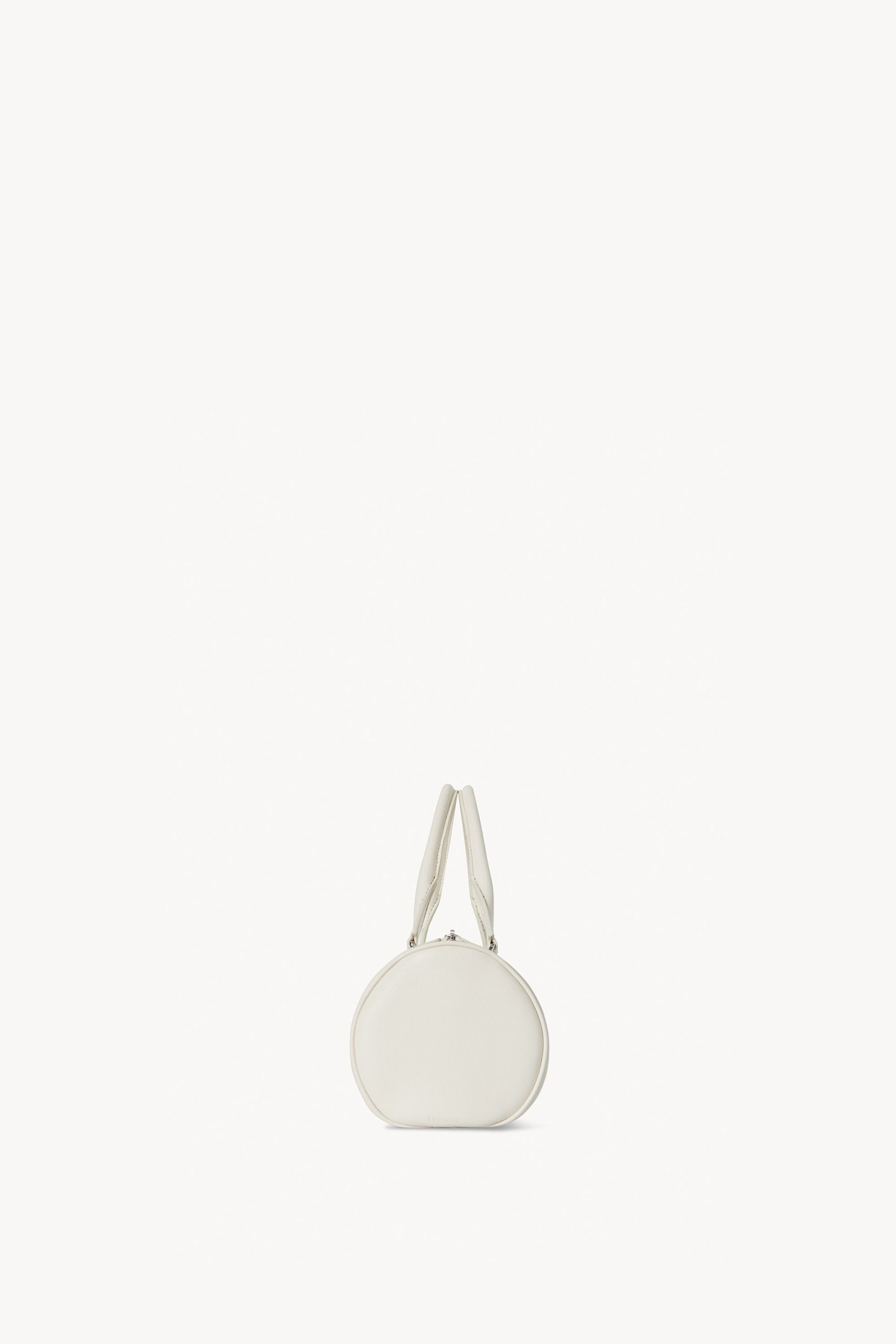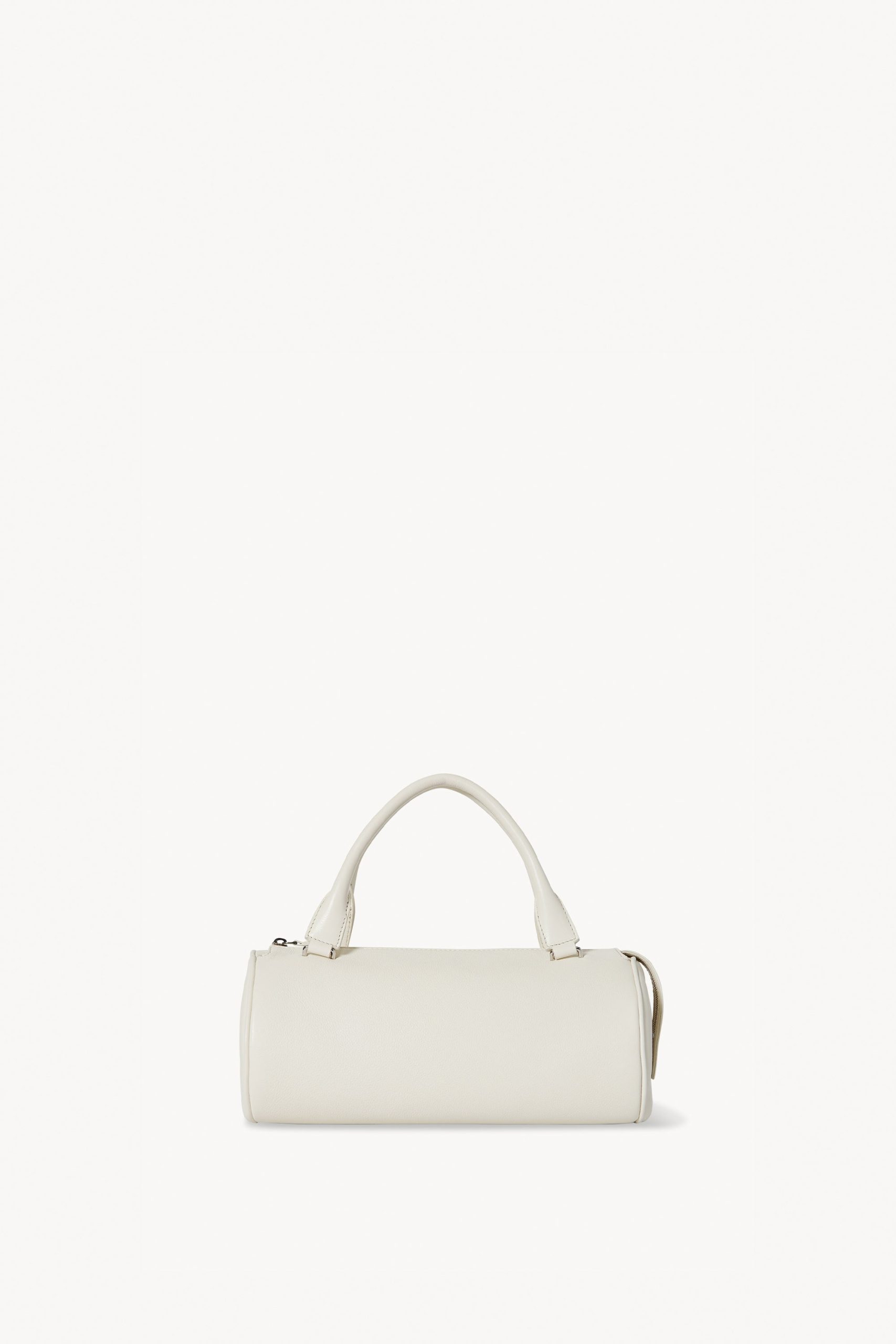 Round top handle bag in finely grained calfskin leather with exposed zipper and magnetic closure.