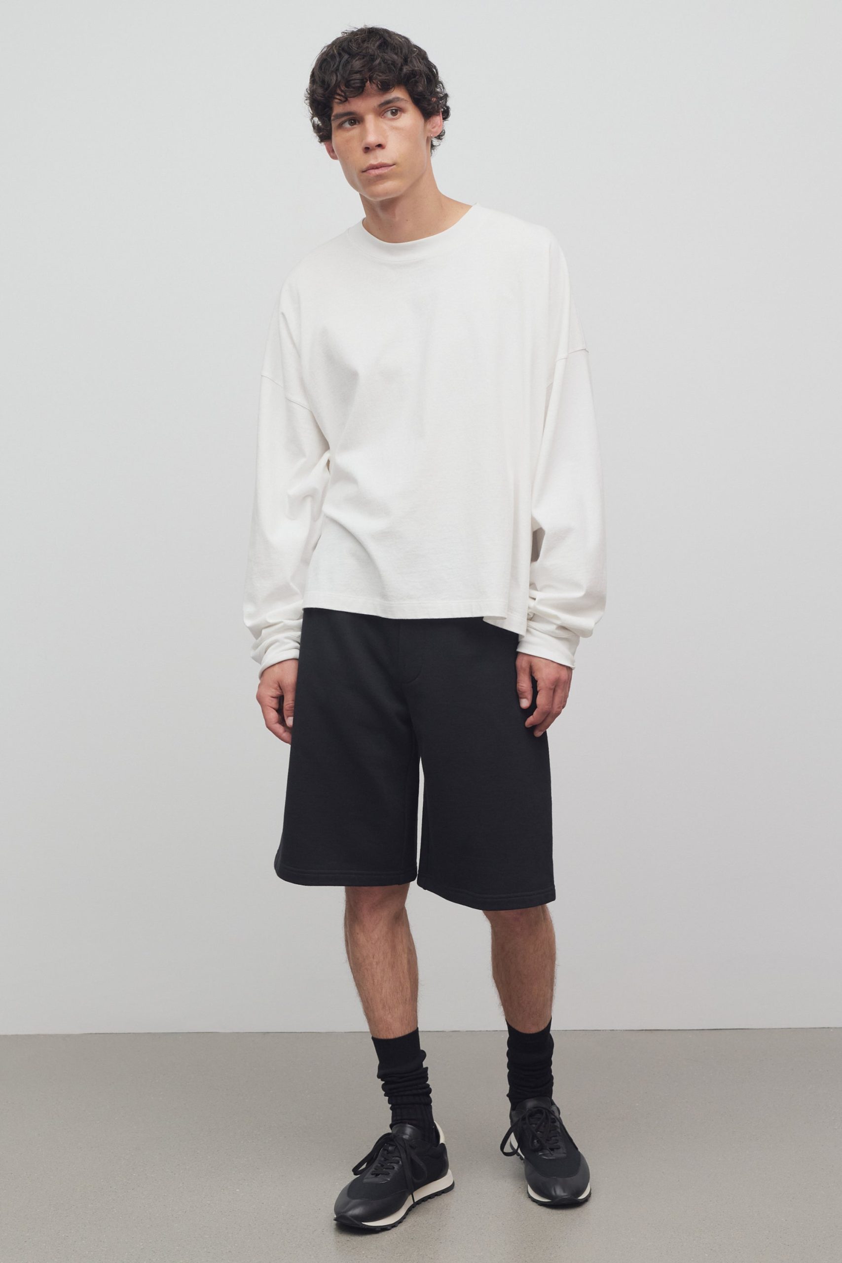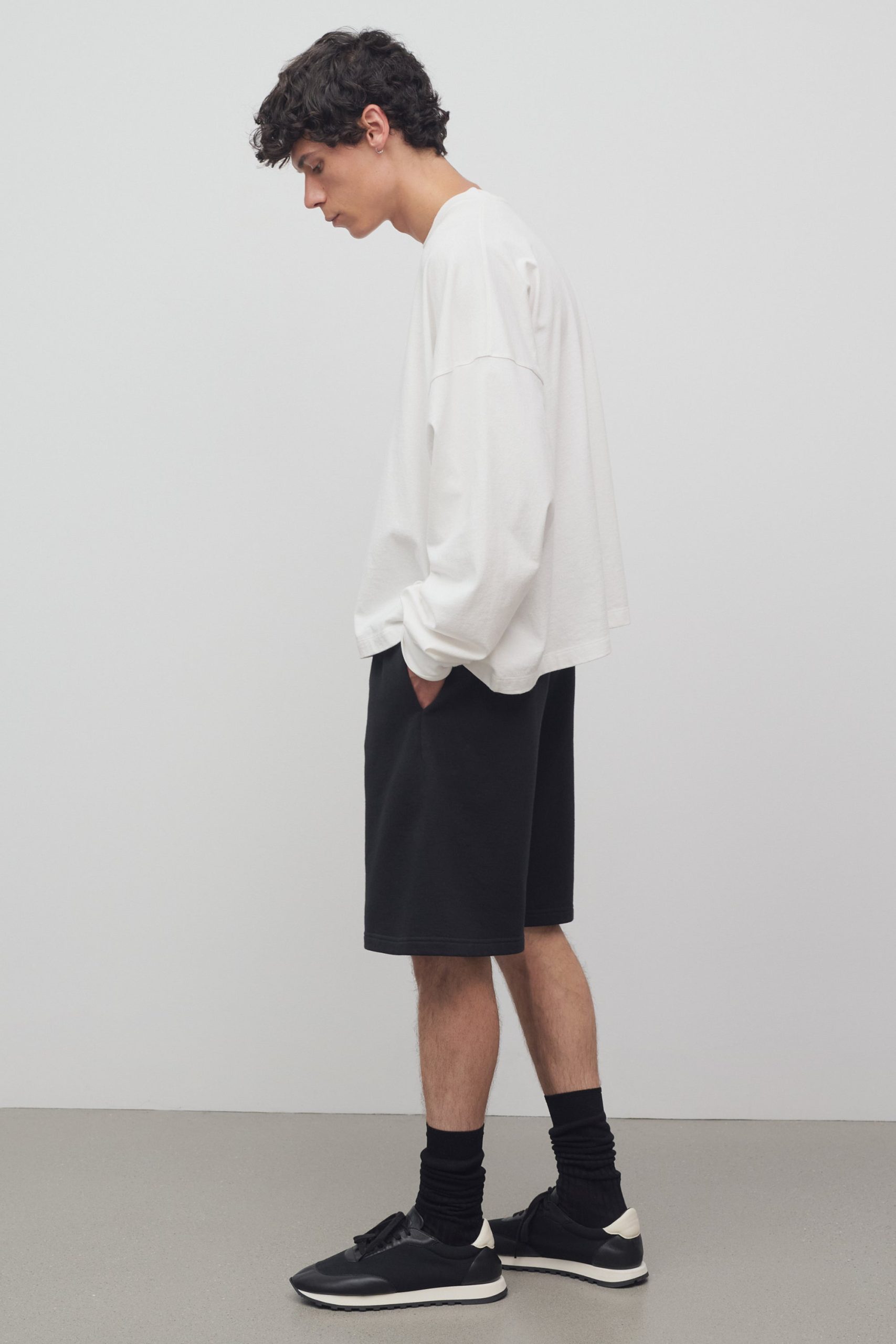 Relaxed fit pull on shorts in soft cotton jersey with elastic waistband and side seam pockets.