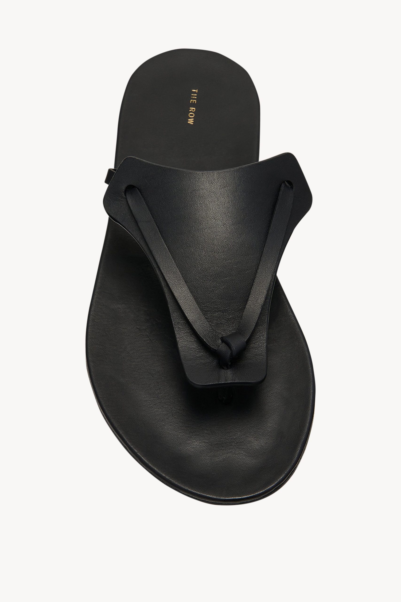 Sculptural flip-flop sandal in vegetable tanned calfskin leather with layered straps and slim leather sole.