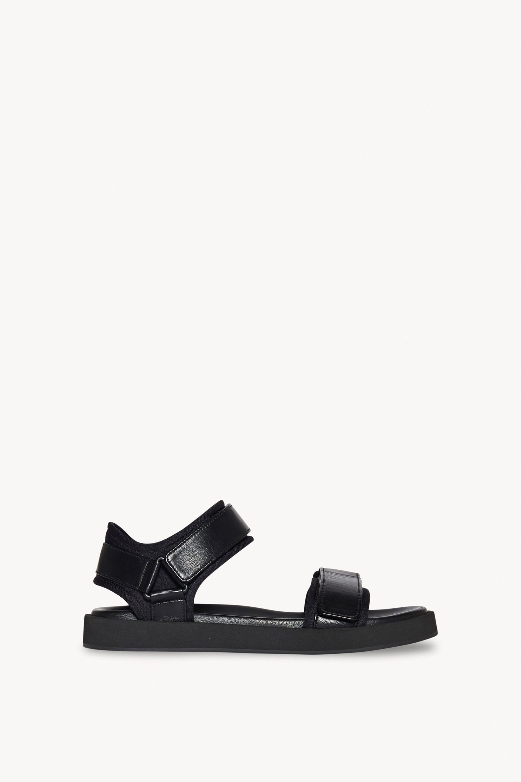 Sport-inspired sandal with neoprene lined smooth nappa leather straps. molded leather footbed and foam midsole.