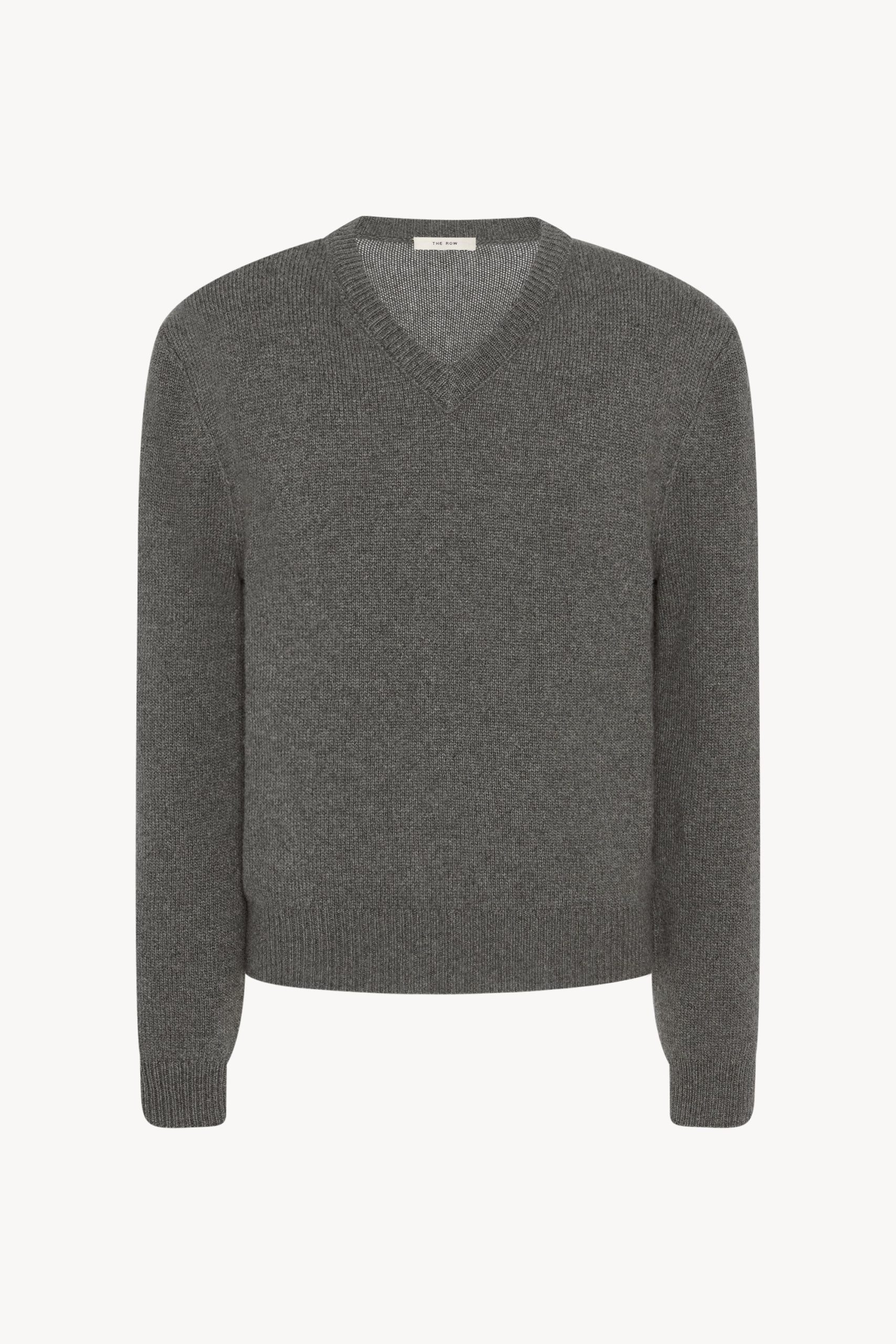 Classic v-neck sweater in midweight cashmere with regular fit and ribbed neckline. cuffs and hem.