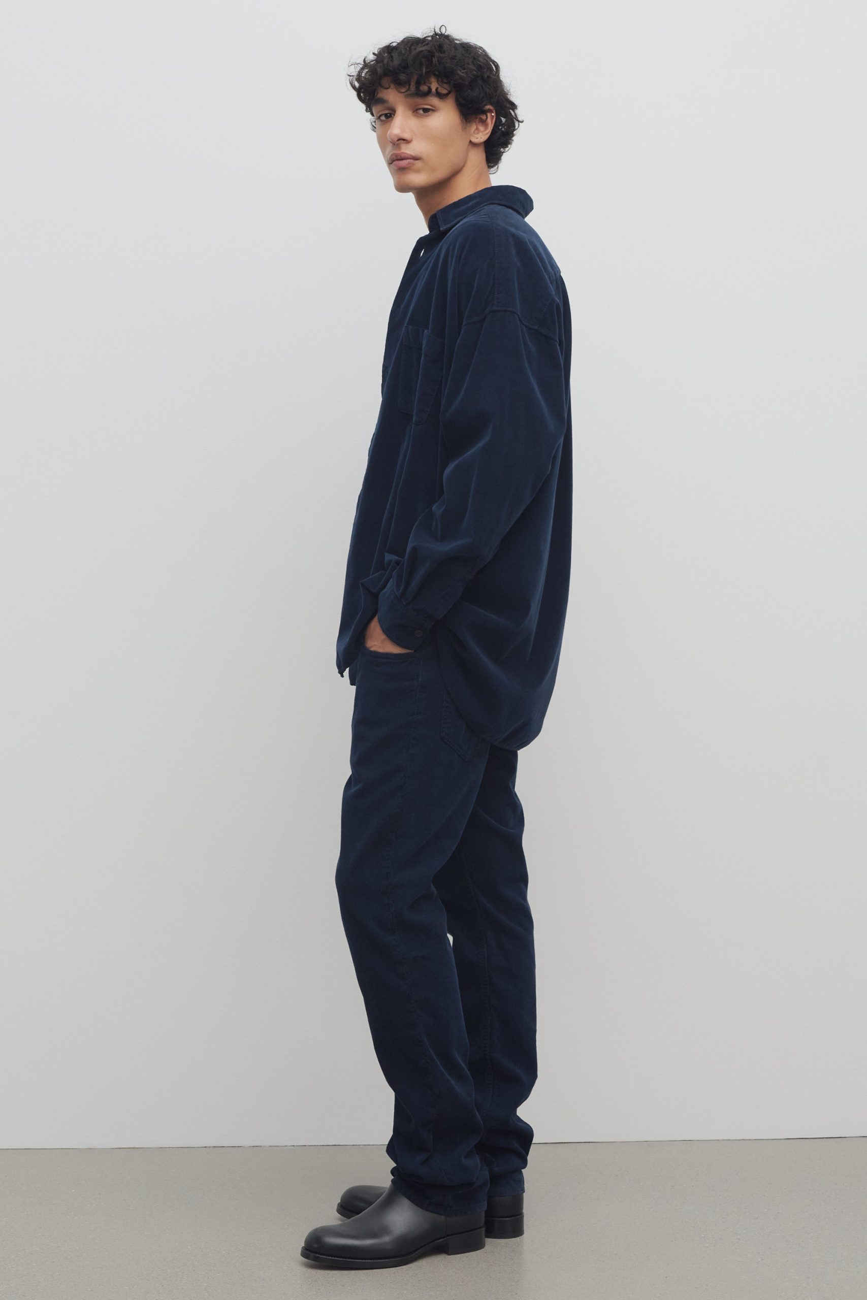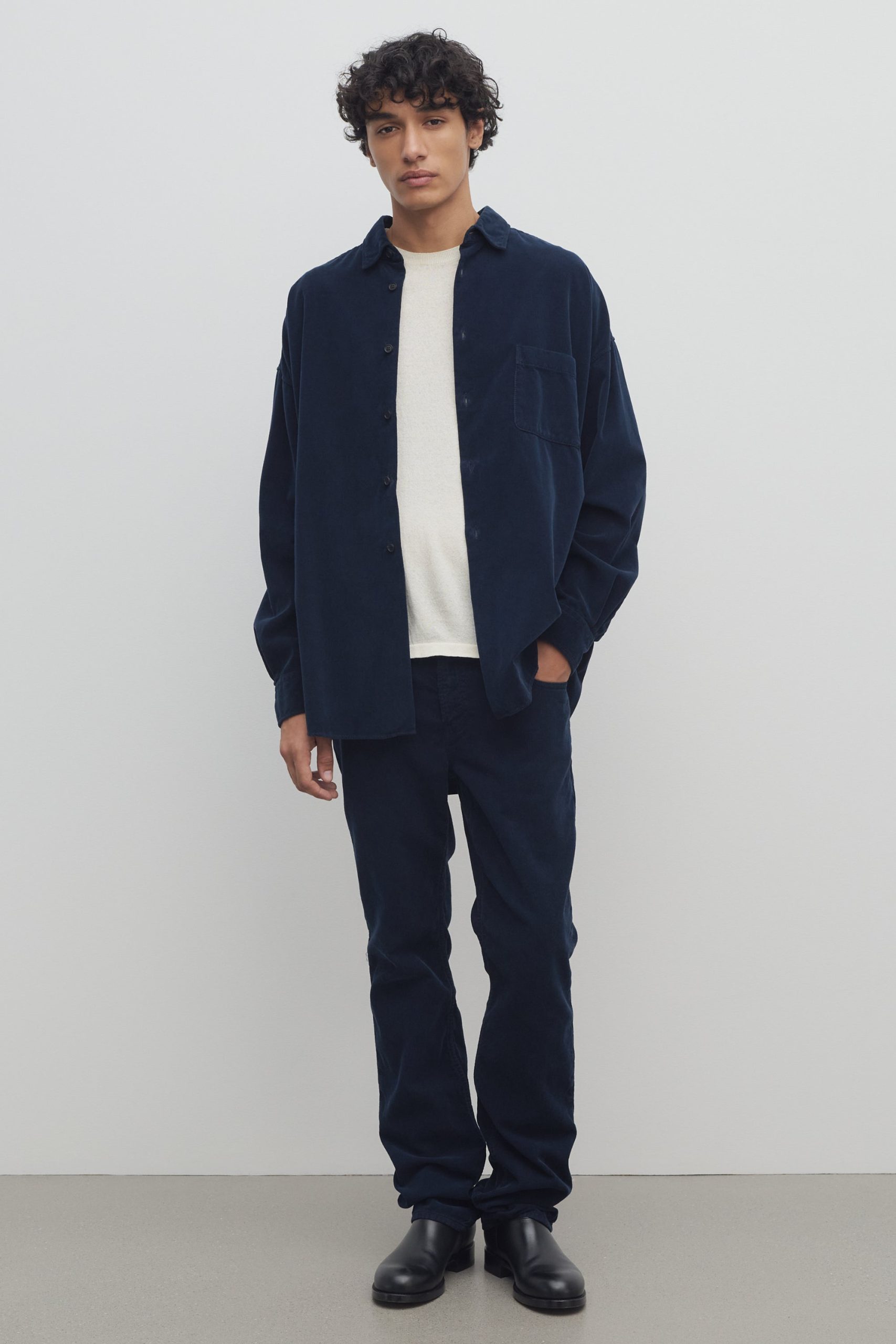 Straight-fit pant in Japanese cotton corduroy with classic 5-pocket construction. tonal topstitching. and zipper fly closure.
