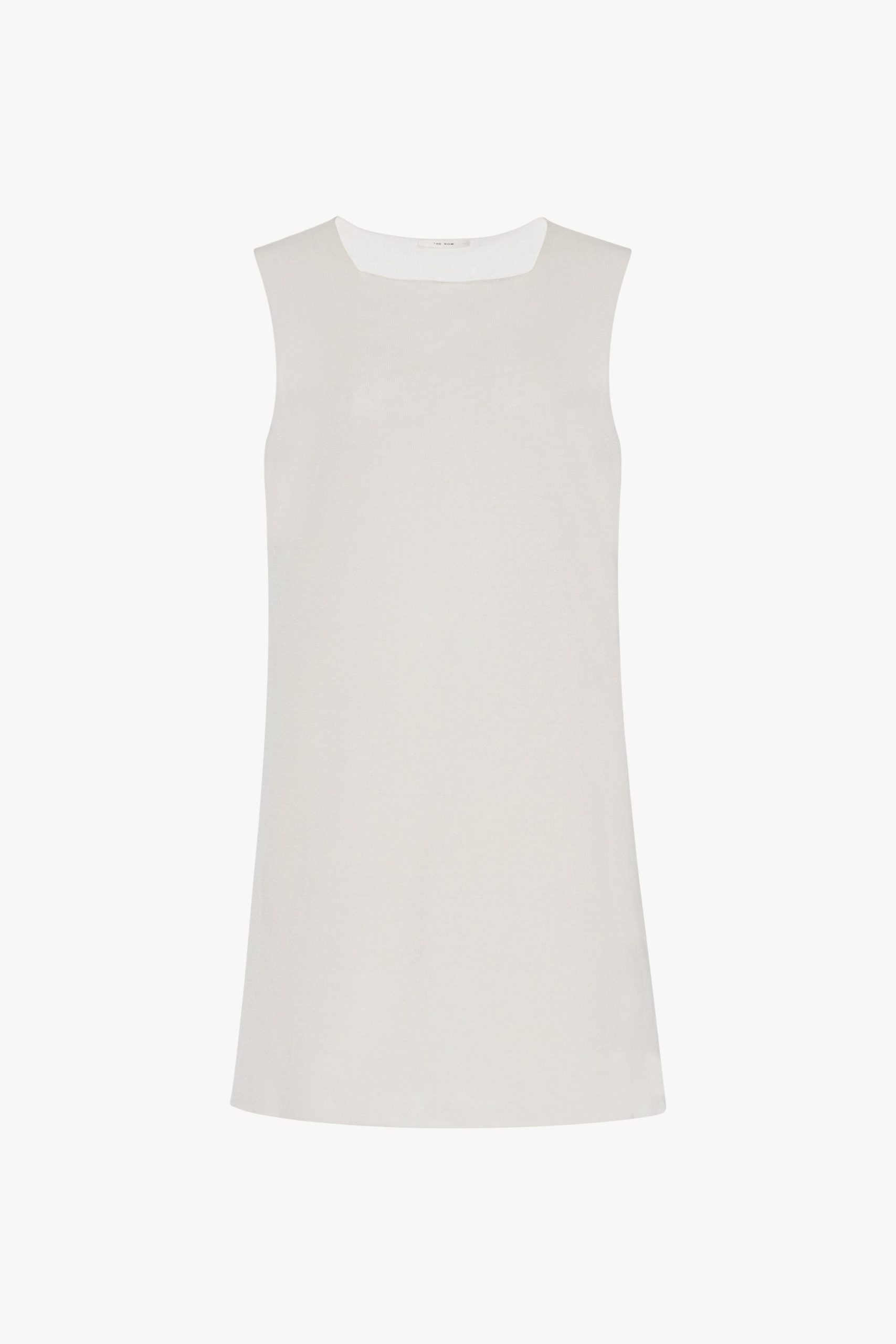 Elongated tank top in textured linen and cotton knit with squared neckline and straight fit.