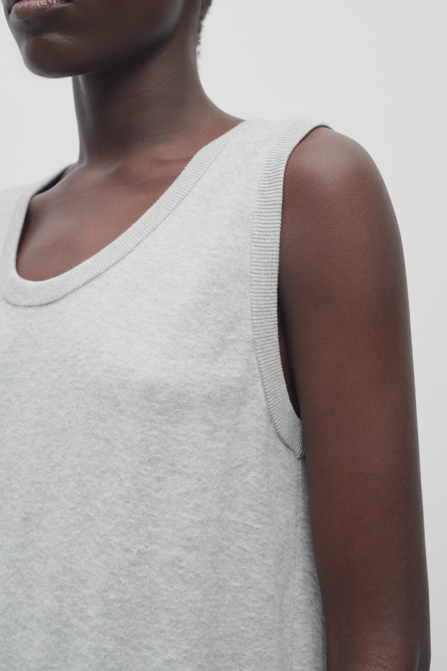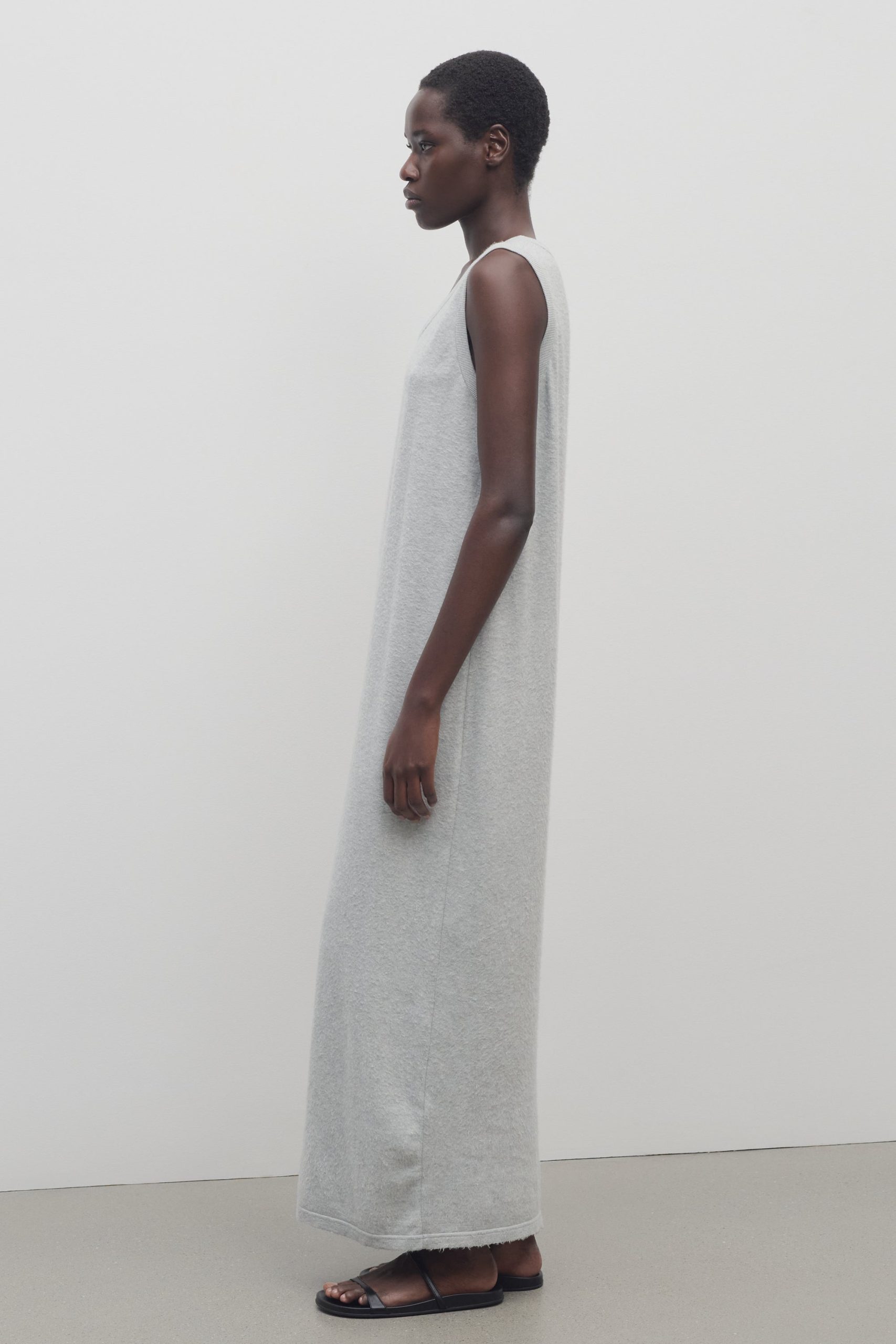 Relaxed ankle-length tank dress in softly brushed fine cotton with ribbed armholes and neckline. and straight fit.