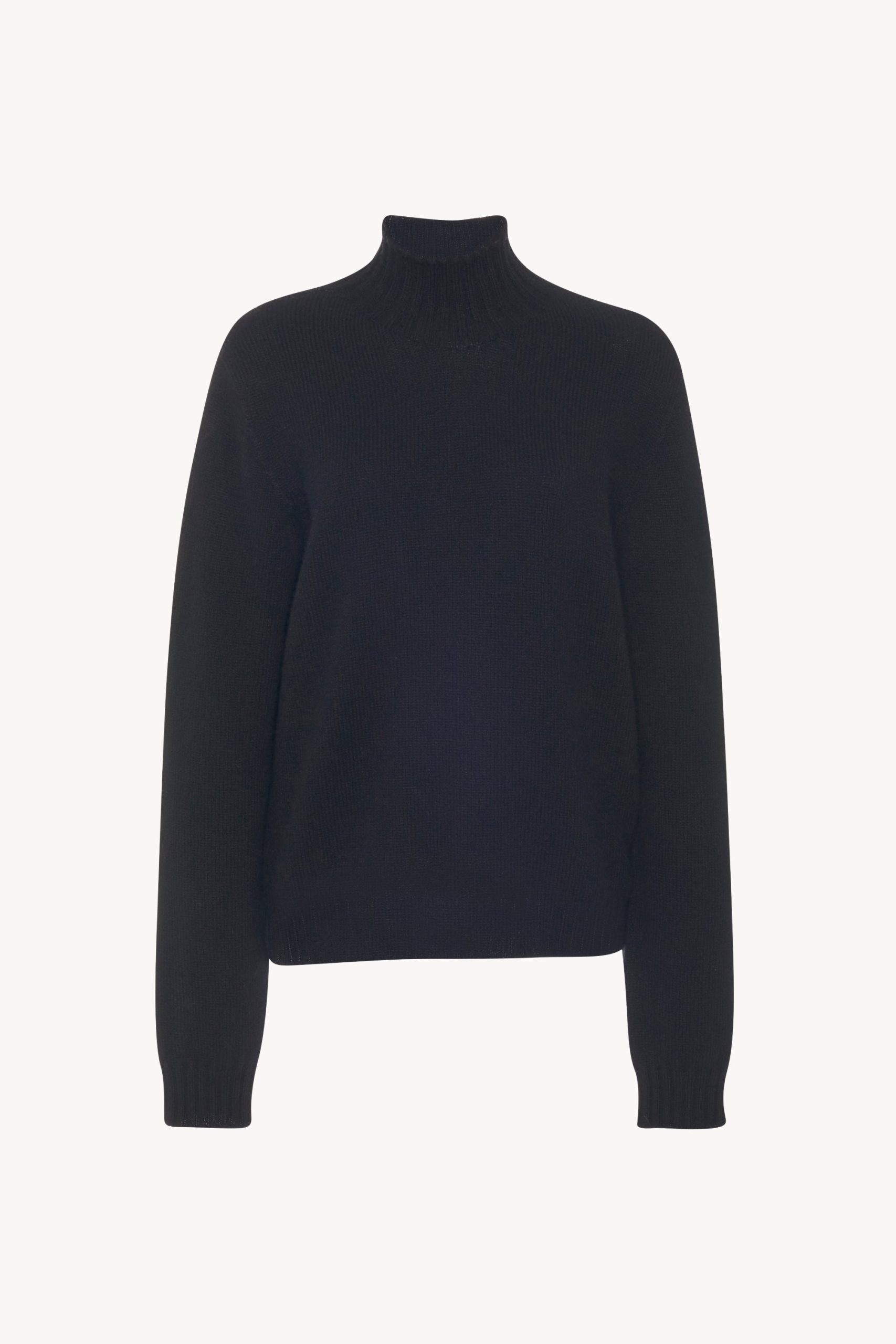The Row Essentials sweater in foamy cashmere knit with mock turtleneck and ribbed neckline. cuffs and hem.