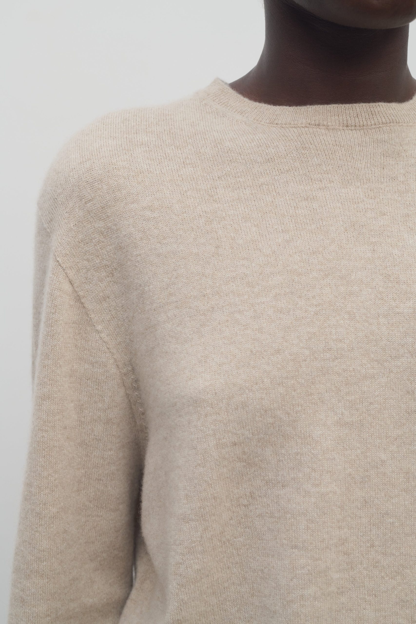 Classic crewneck sweater in soft lightweight cashmere with relaxed fit and ribbed neckline. cuffs. and hem.