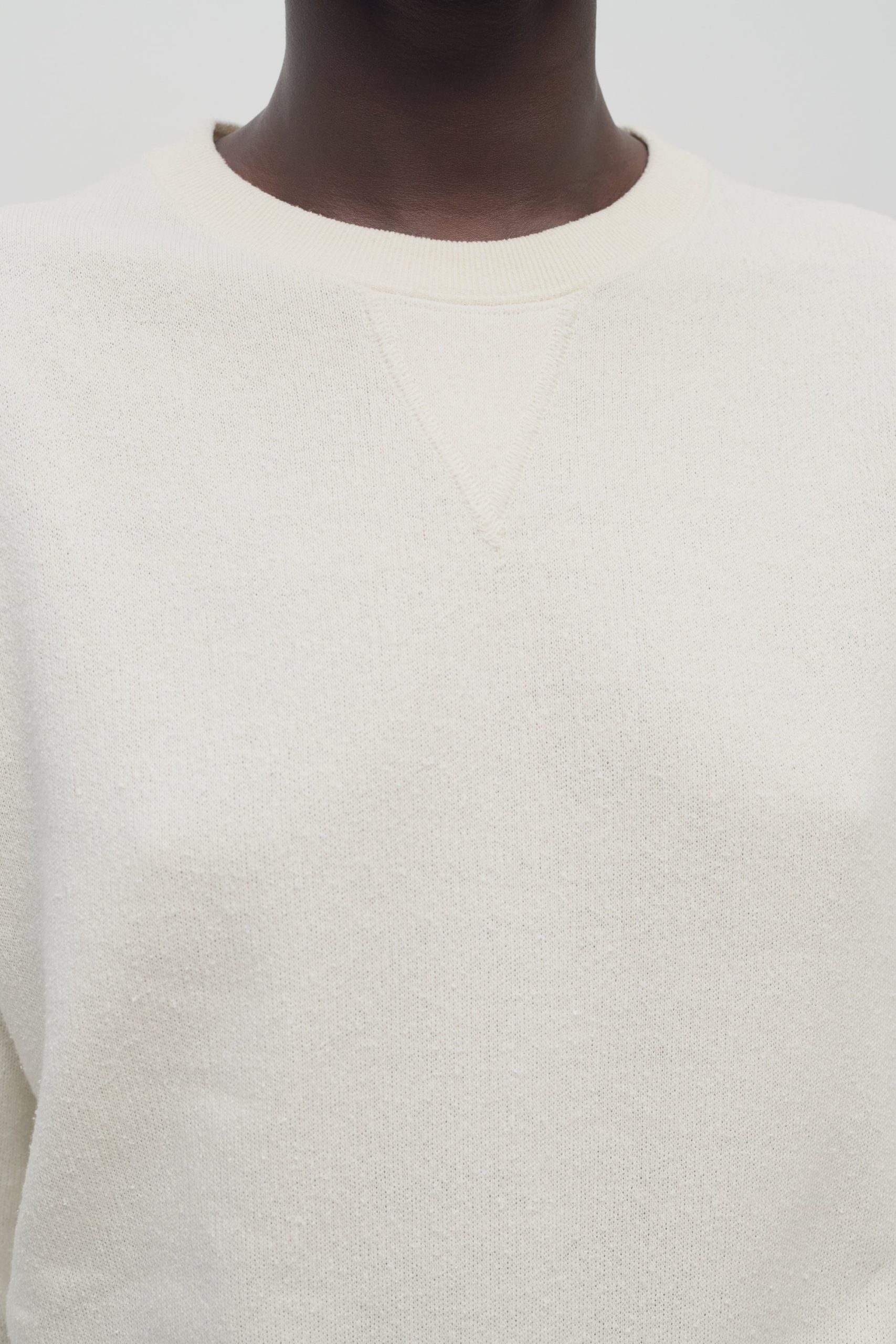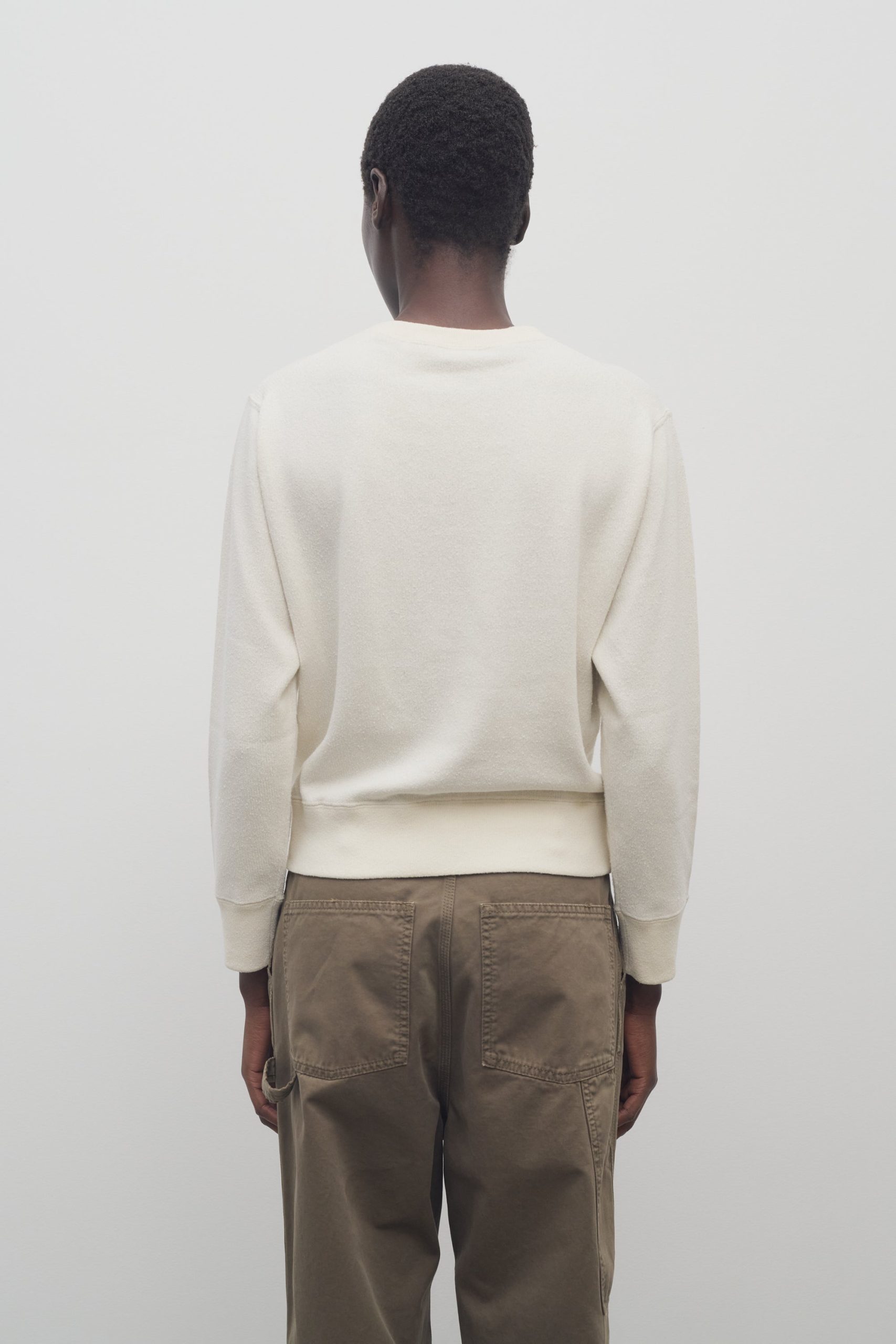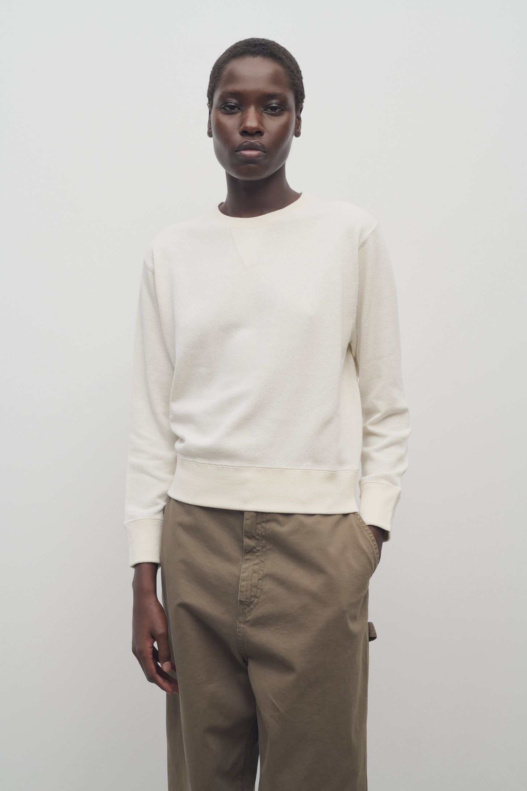 Crewneck sweatshirt in stonewashed silk jersey with regular fit. stitched v-notch detail and ribbed neckline. cuffs. and hem.