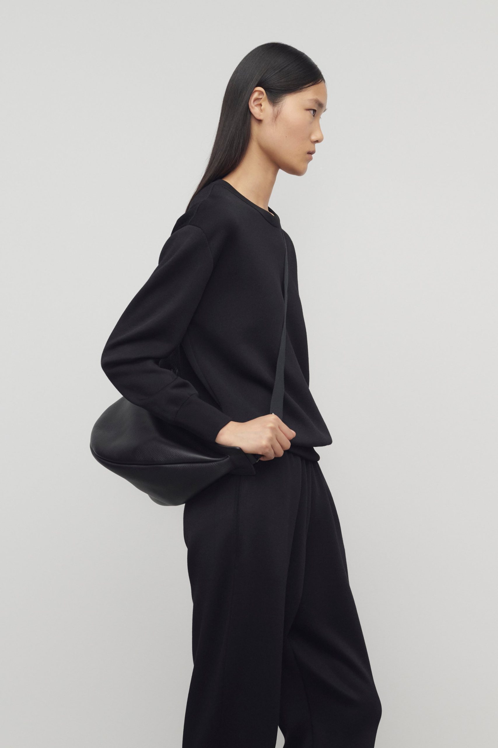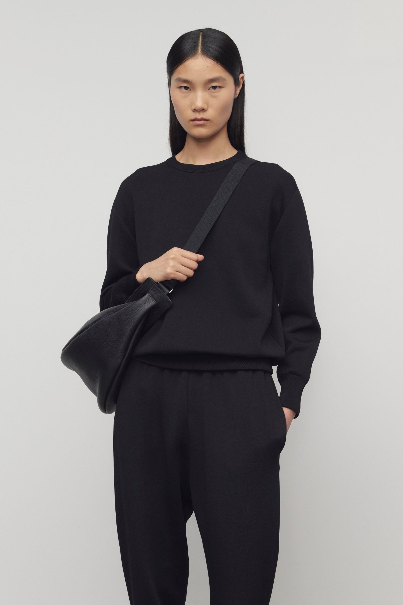 Classic crewneck sweater in double-faced jersey with regular fit and ribbed neckline. cuffs. and hem.