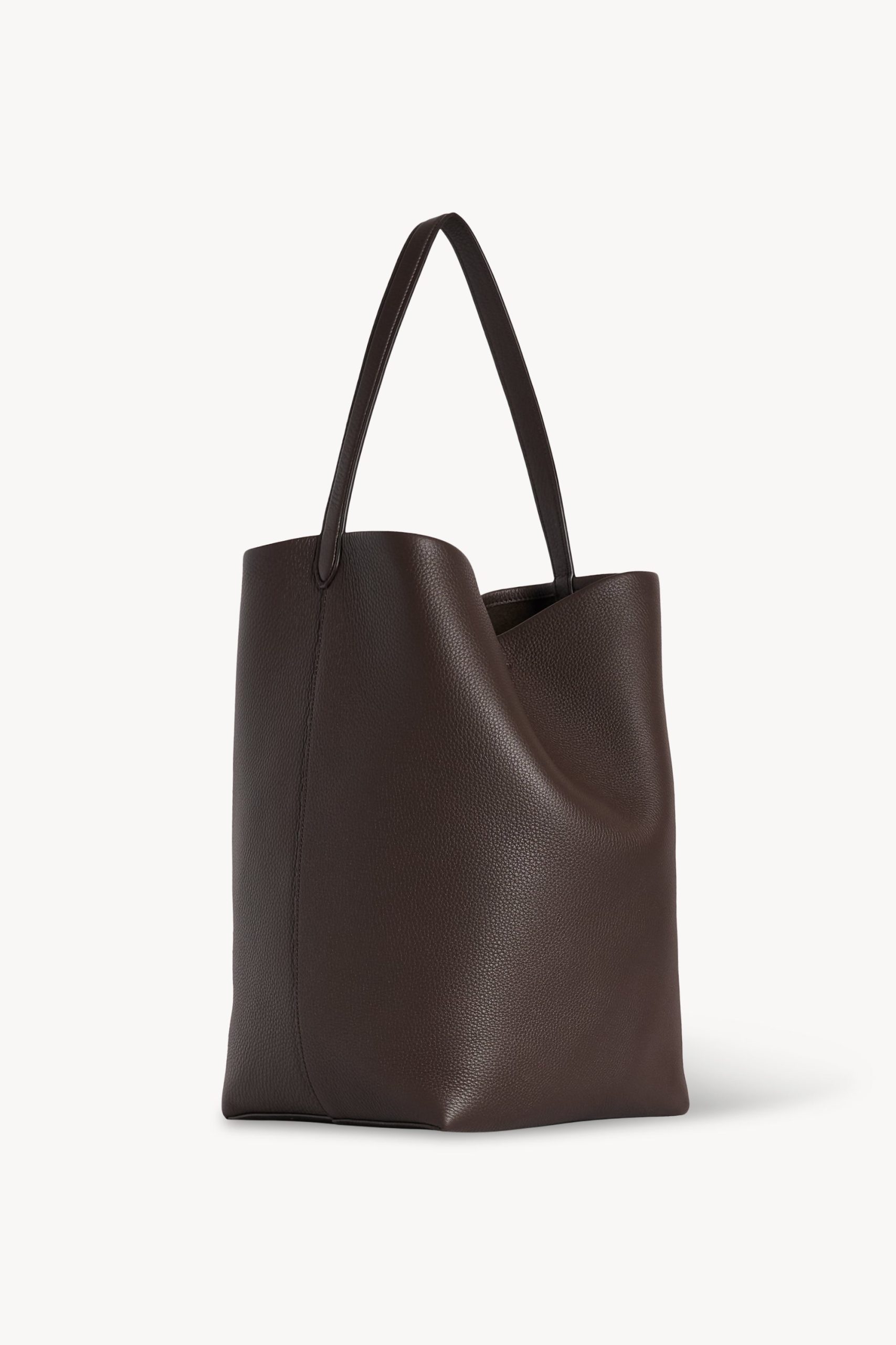 Classic tote bag in textured calfskin leather with interior tie closure and flat handle.