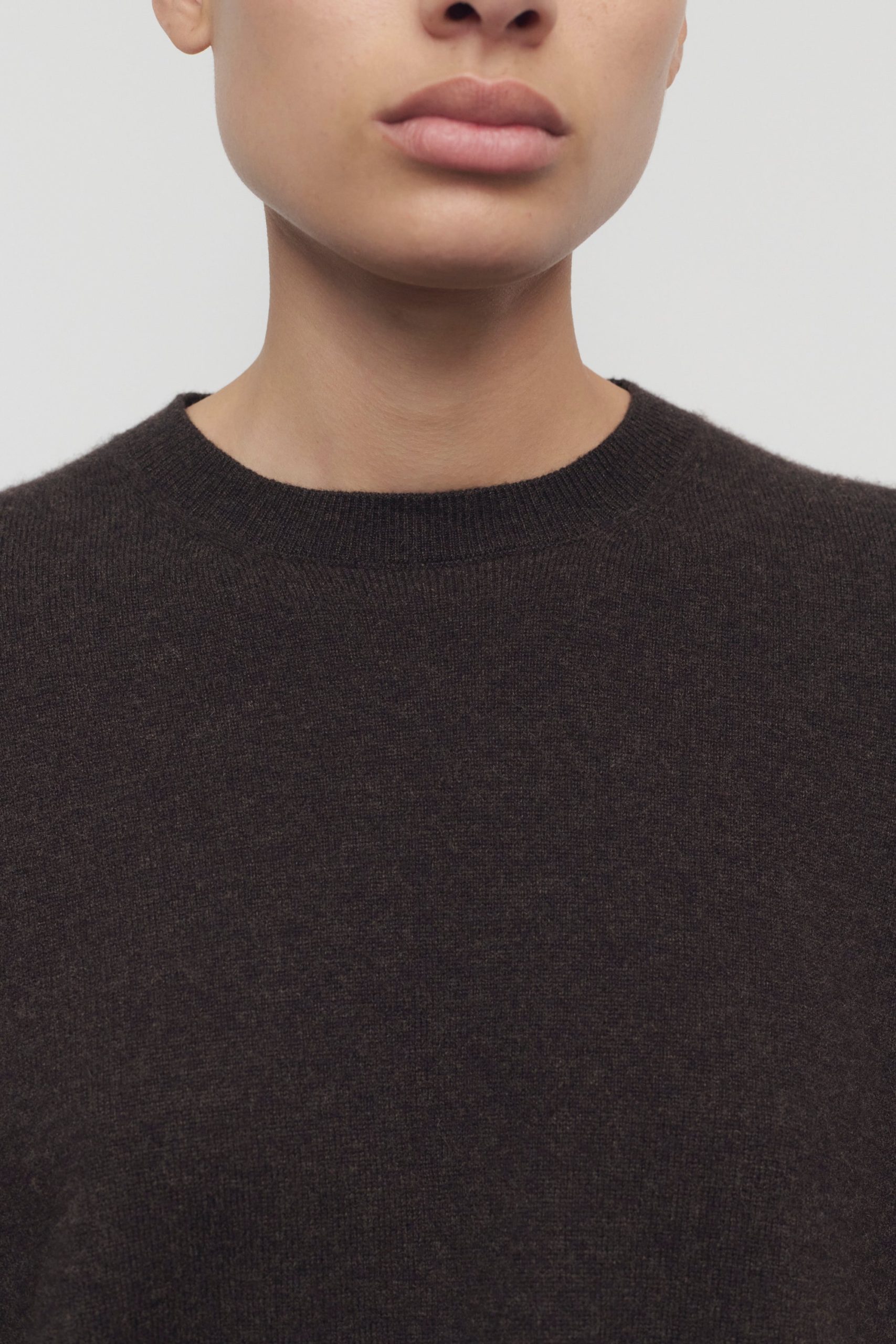 Classic crewneck sweater in soft cashmere with relaxed fit. seamless construction. and ribbed neckline. cuffs. and hem.