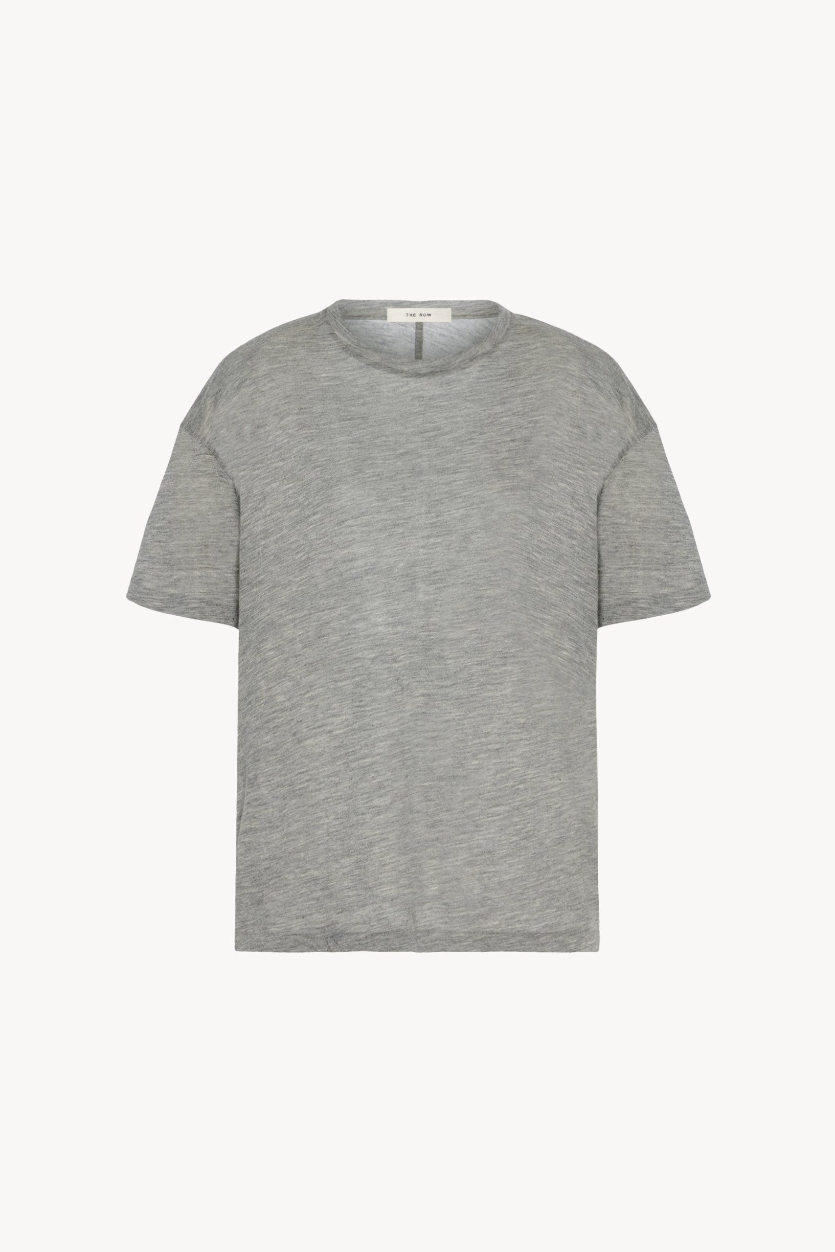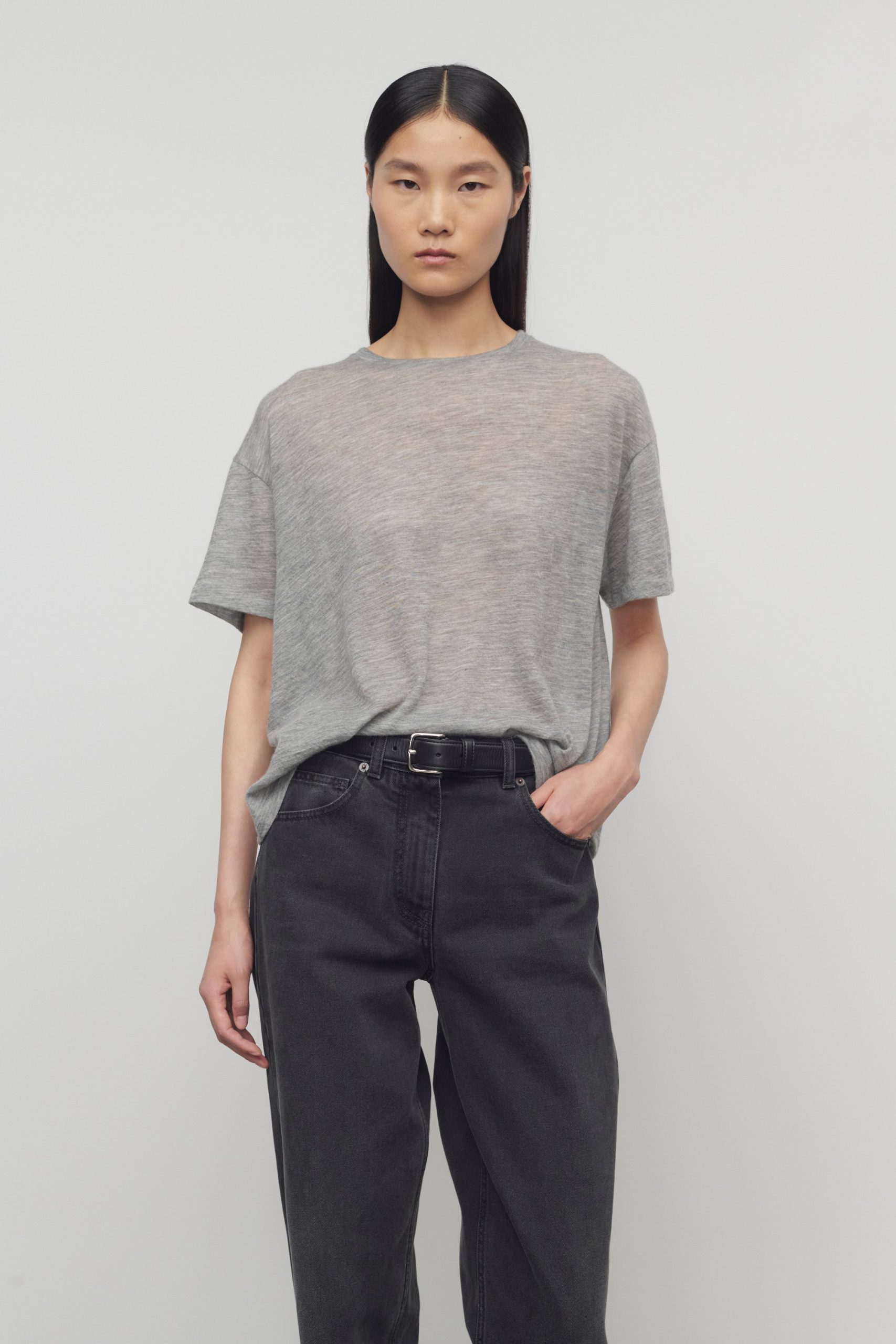 Relaxed. short-sleeved t-shirt in soft cashmere jersey with ribbed crewneck and signature center back detail.