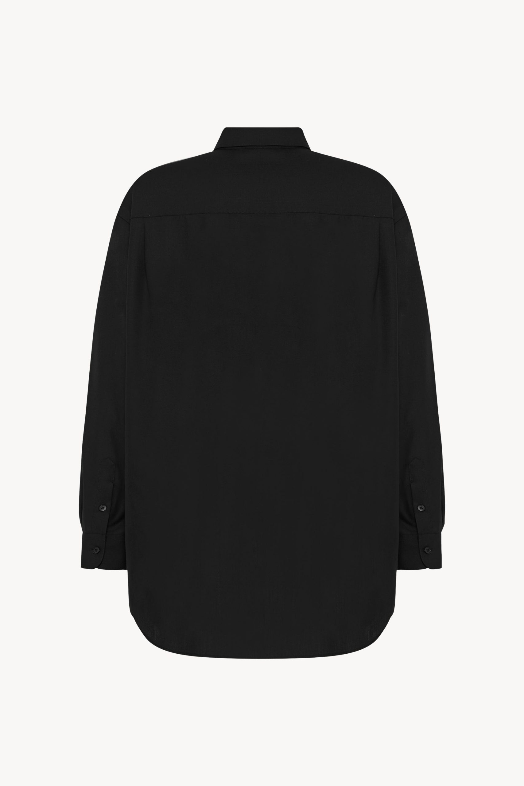 Classic oversized shirt in washed cotton poplin with pointed collar. curved hem and triangle side seams.