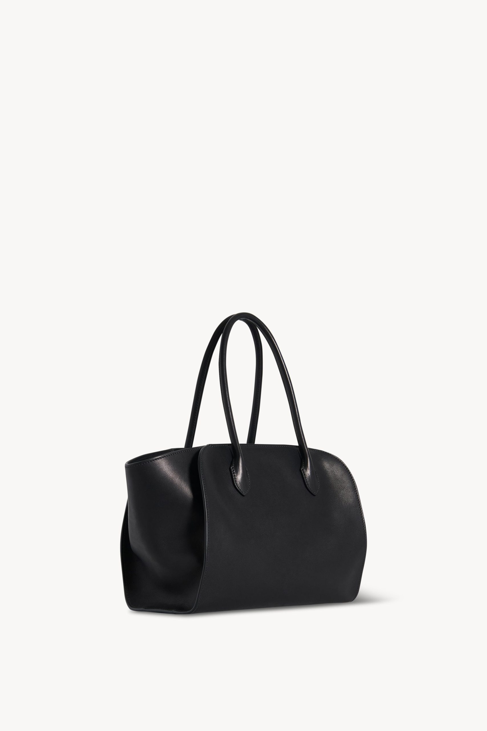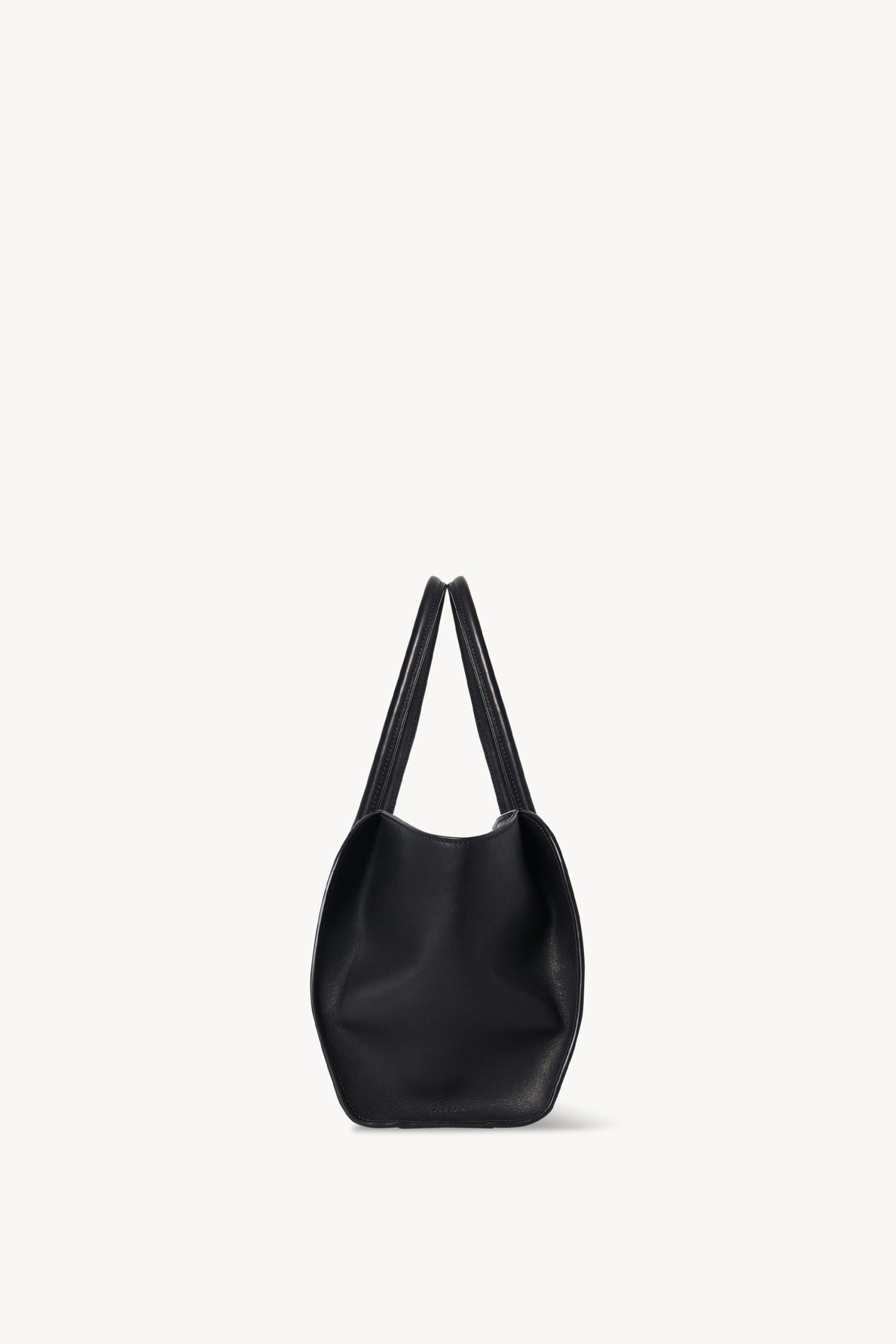 Softly structured tote bag in polished saddle leather with tubular handles. gusseted side panels. and top zipper closure. Untreated and drum-dyed. the leather develops character with time and use.