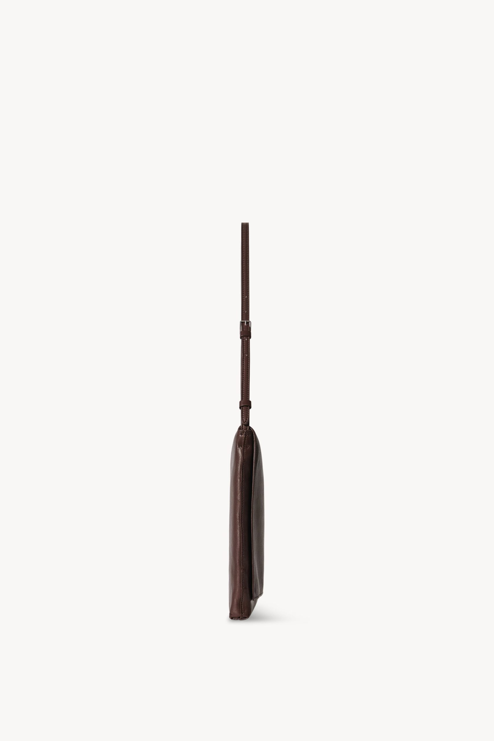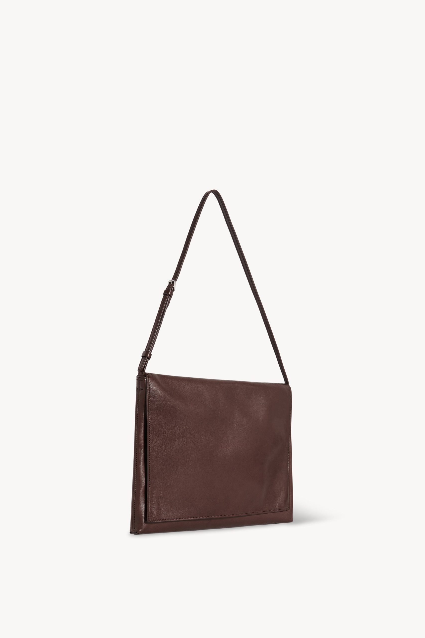 Compact shoulder bag in buttery lambskin leather with overlapped front flap. removable interior zip pocket. and adjustable strap with metal buckle.