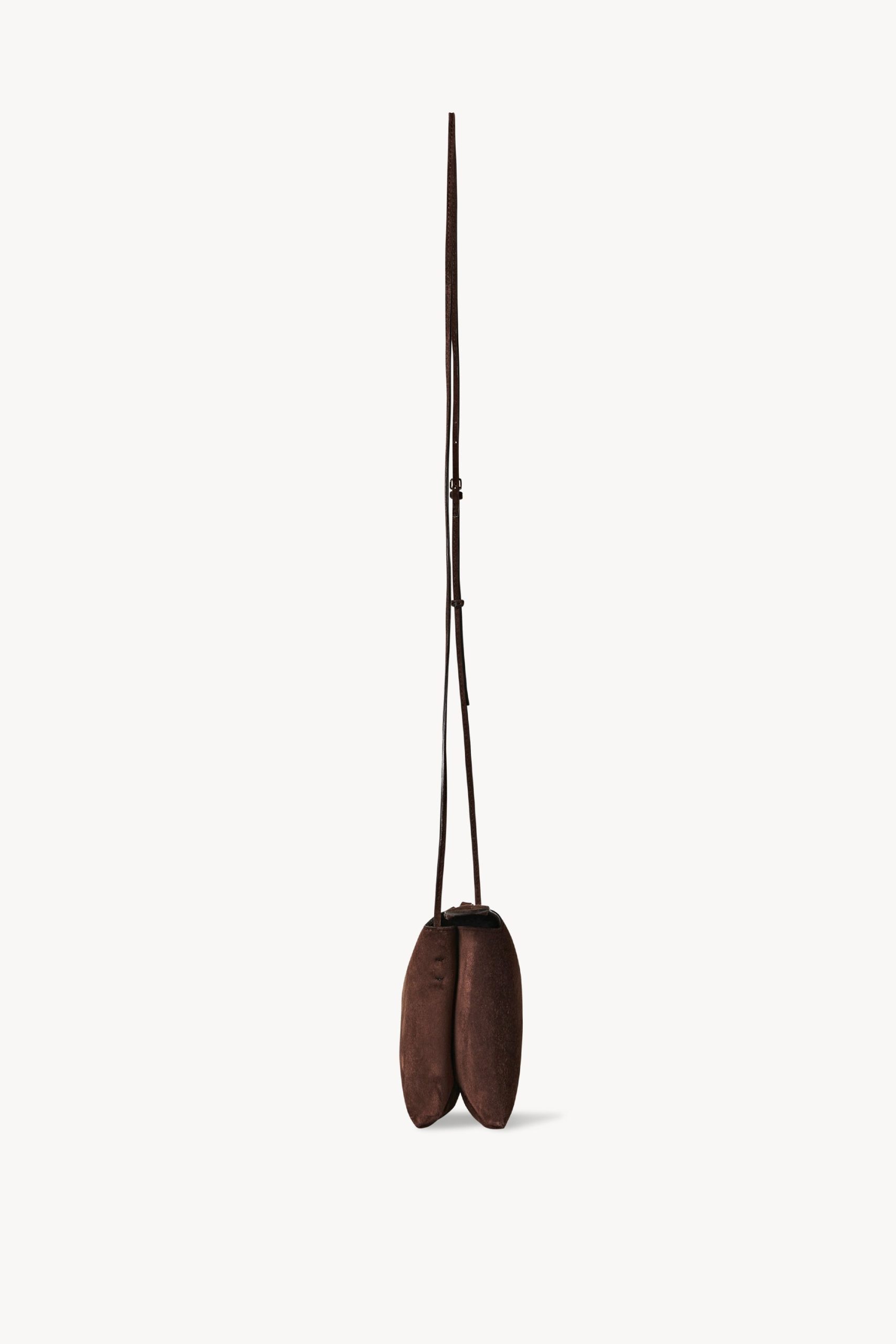 Softly structured shoulder bag in soft suede with seamless construction. removable adjustable shoulder strap and zip top closure.