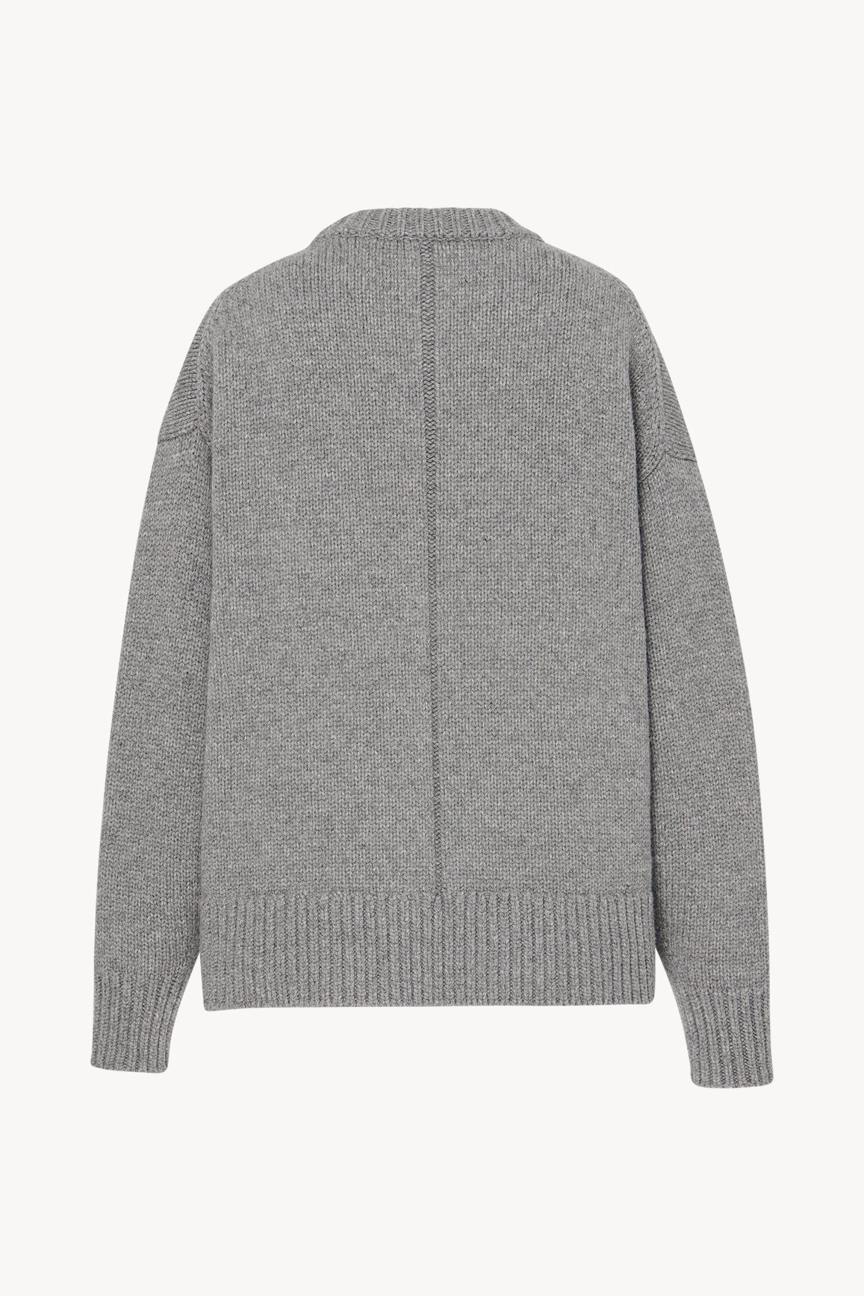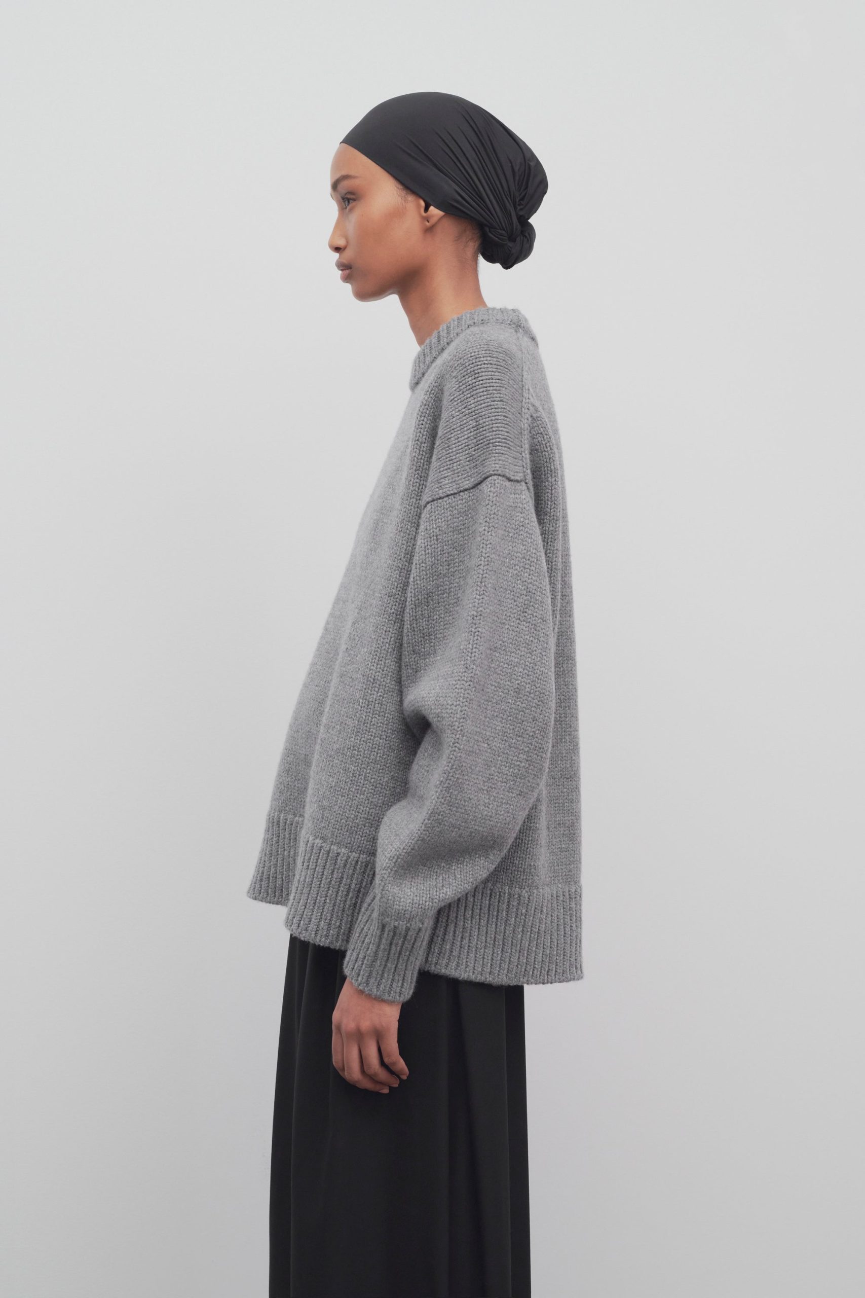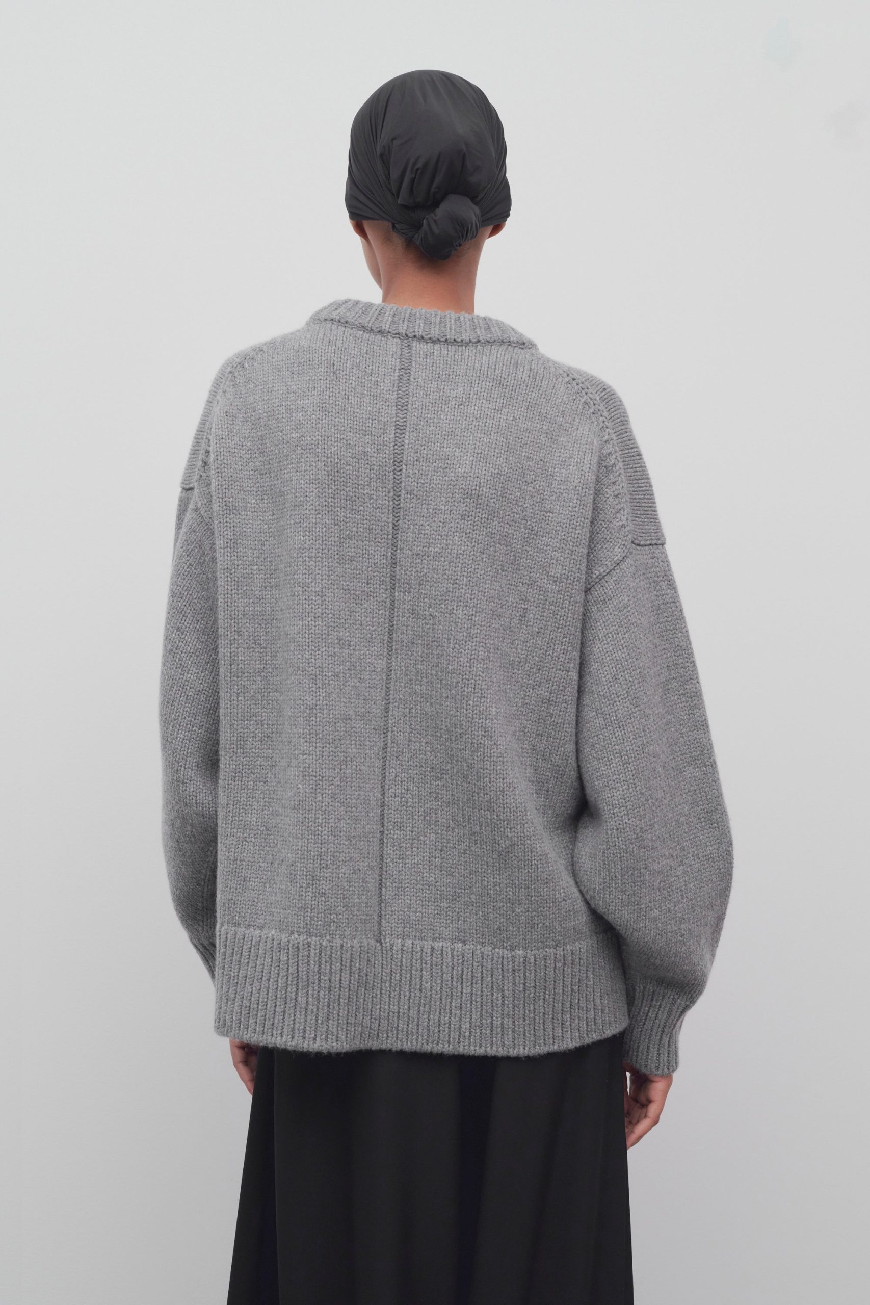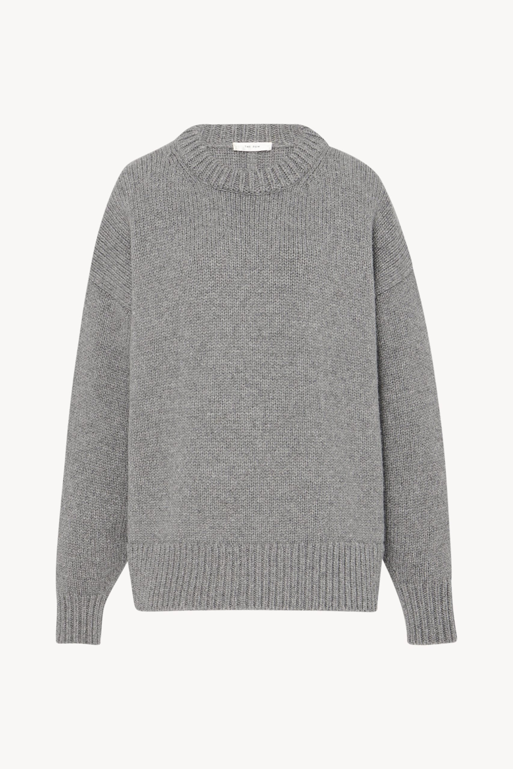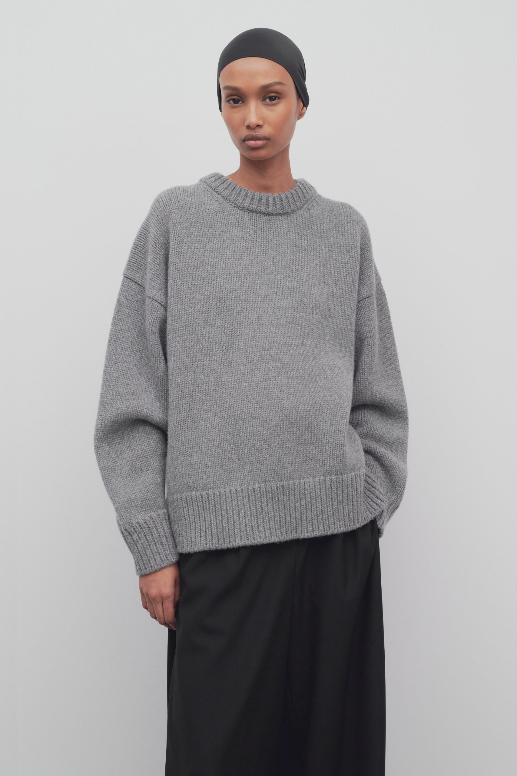 The Row Essentials crewneck sweater in multi-stitch. heavyweight wool and cashmere knit with ribbed neckline. cuffs and hem.