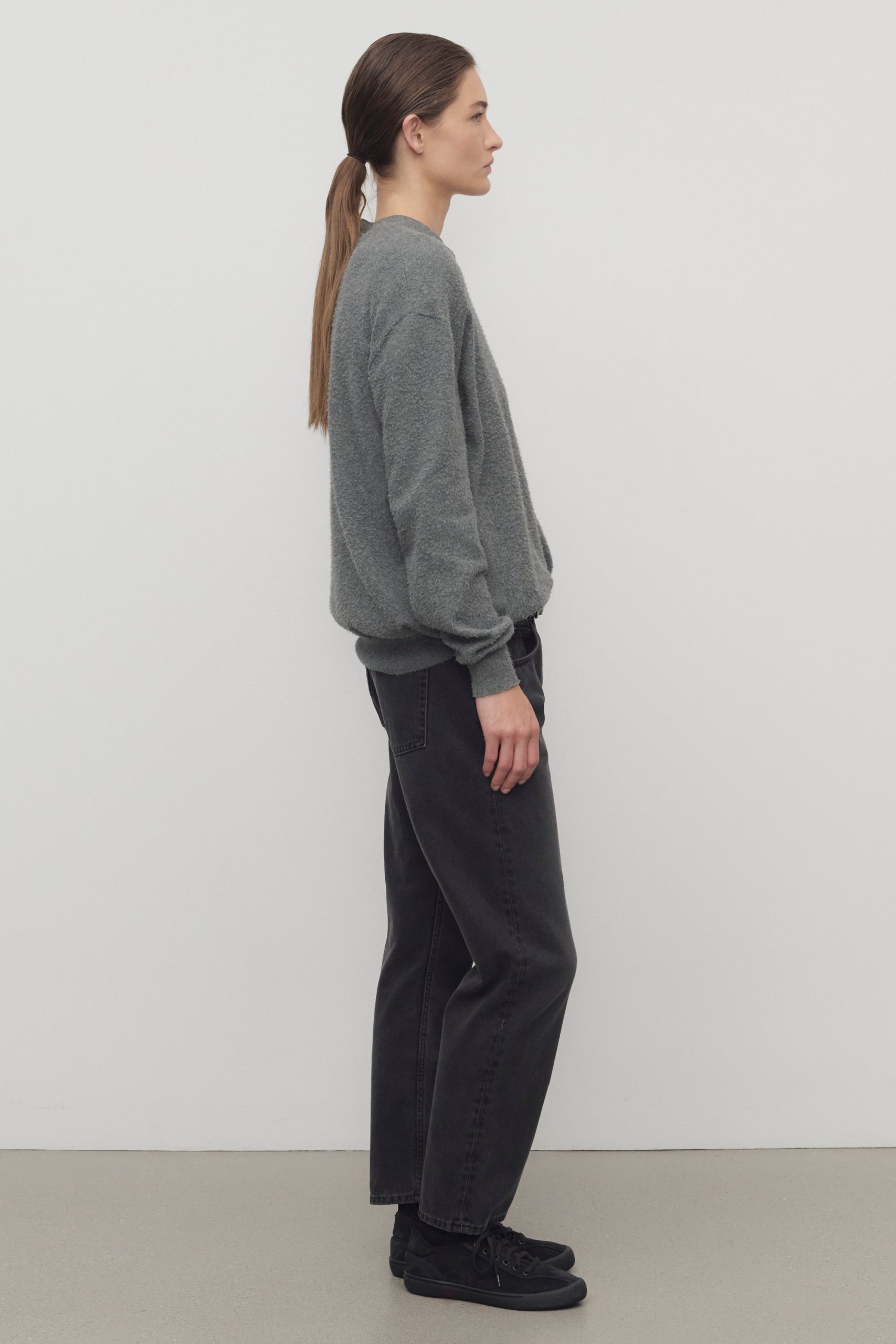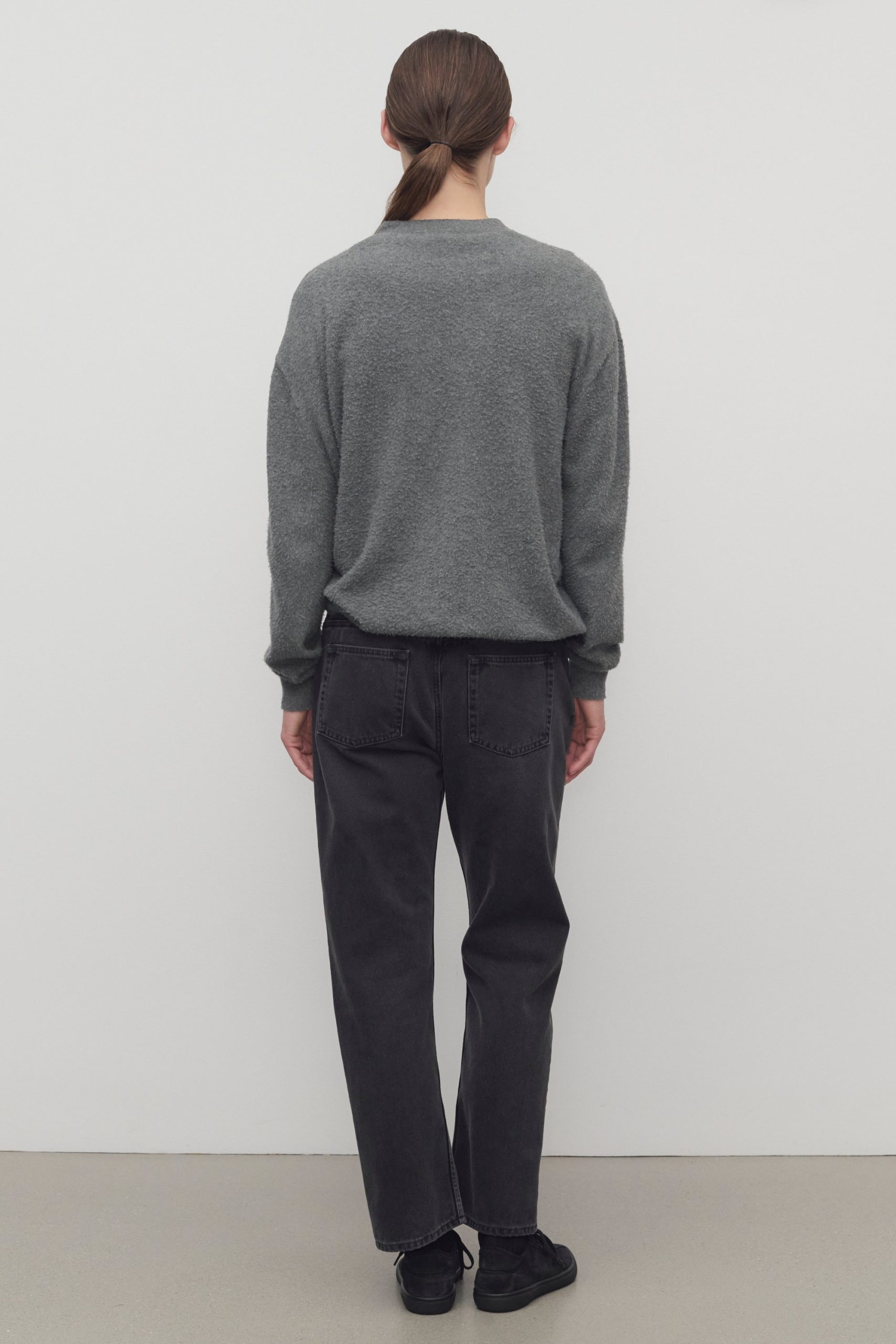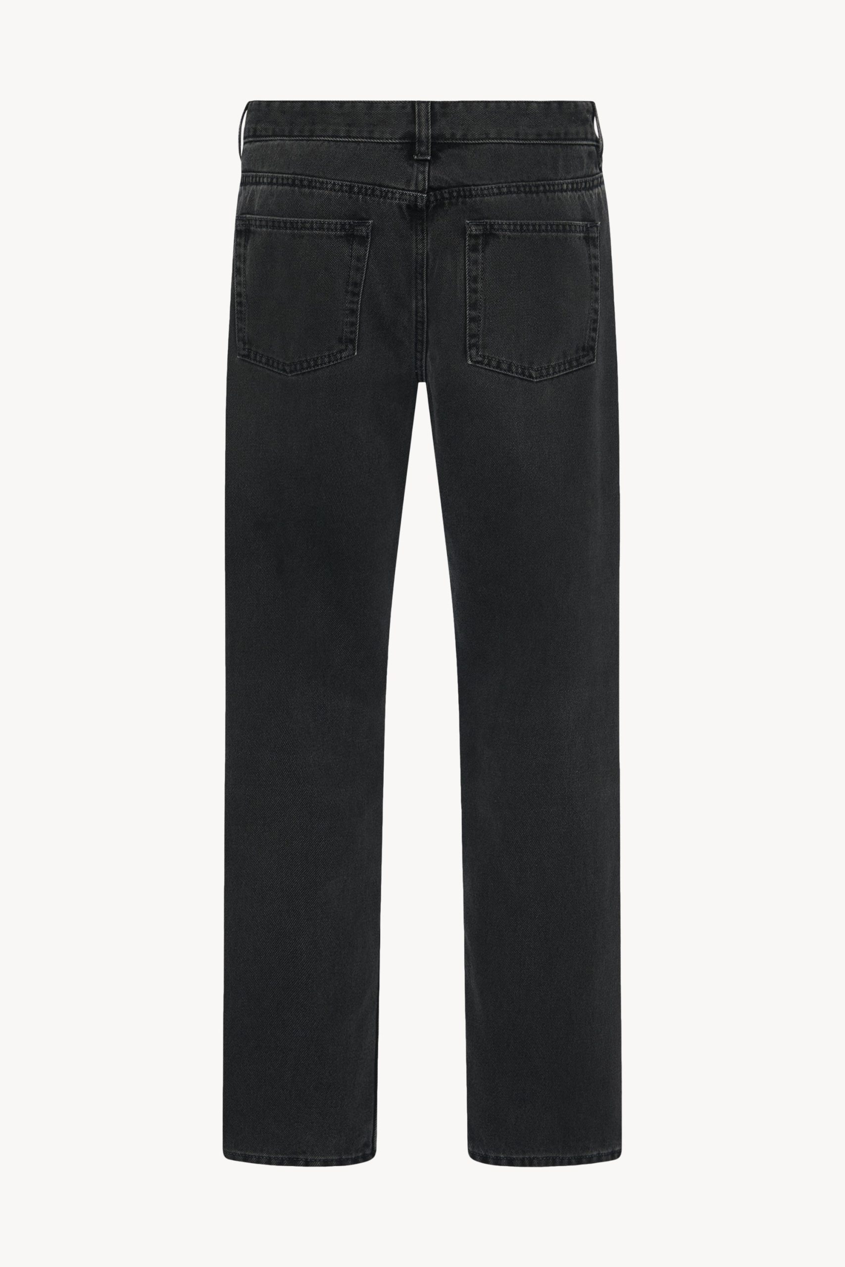 Mid-rise jean in in gently faded cotton denim with slim leg. tonal topstitching. and classic 5-pocket construction.
