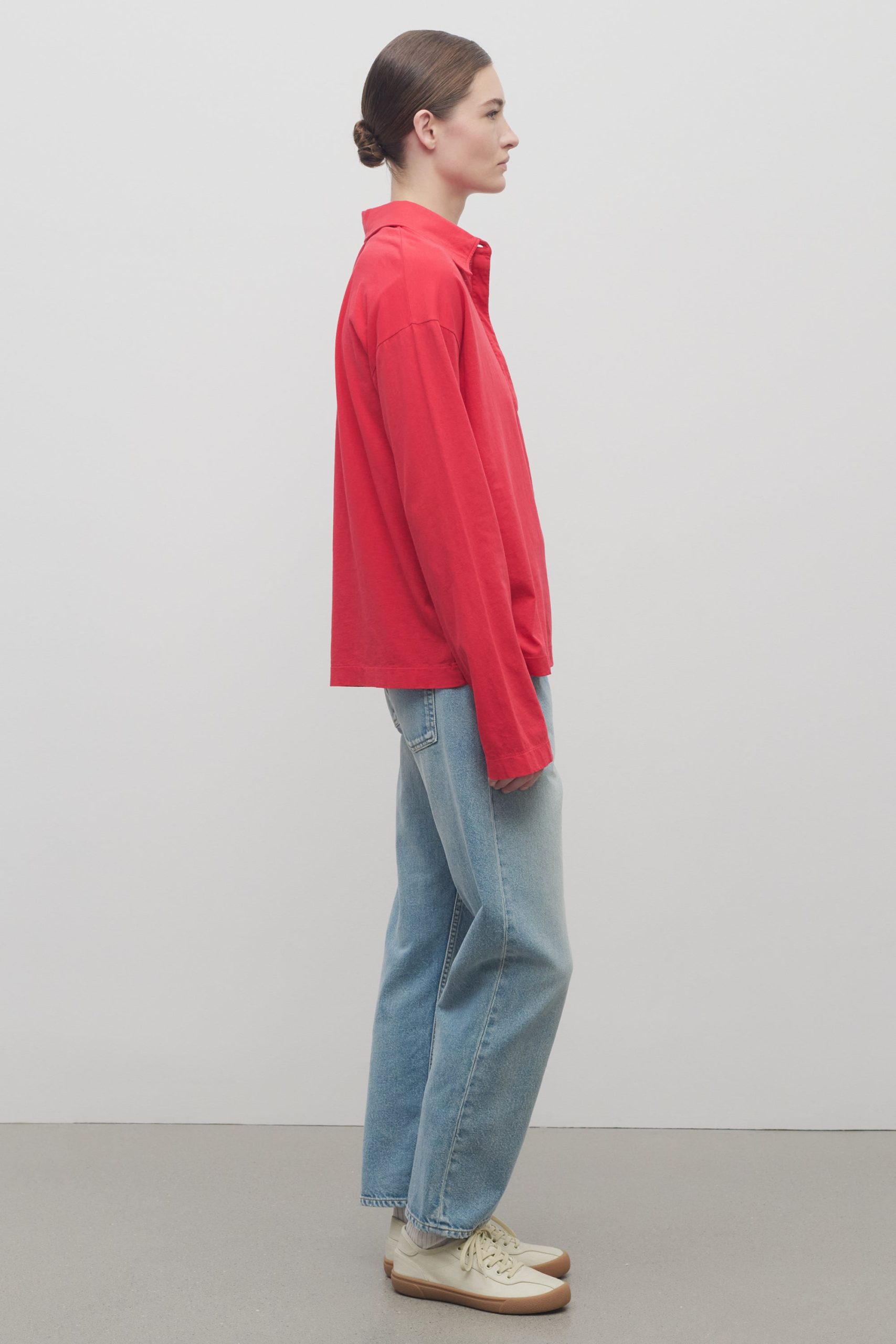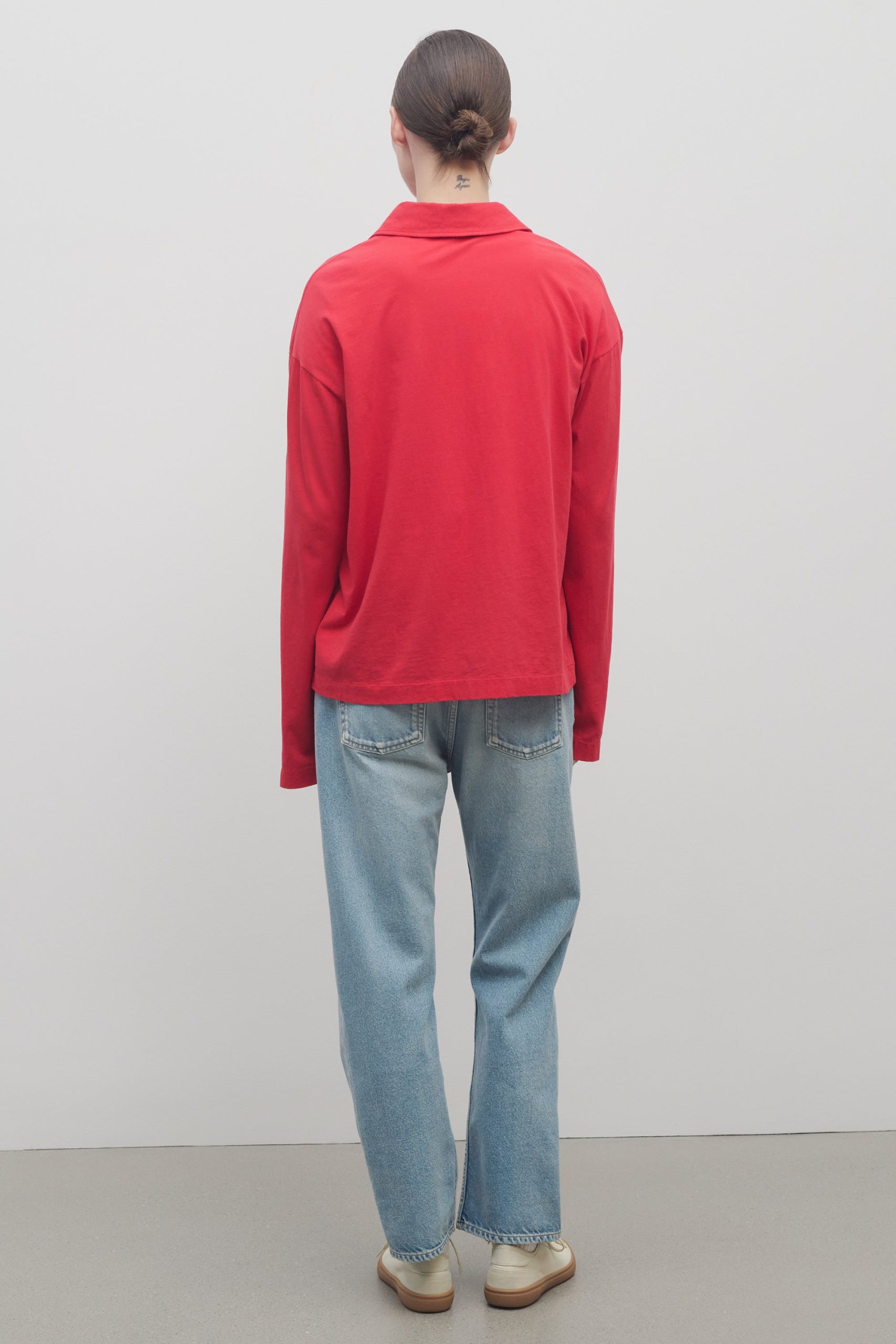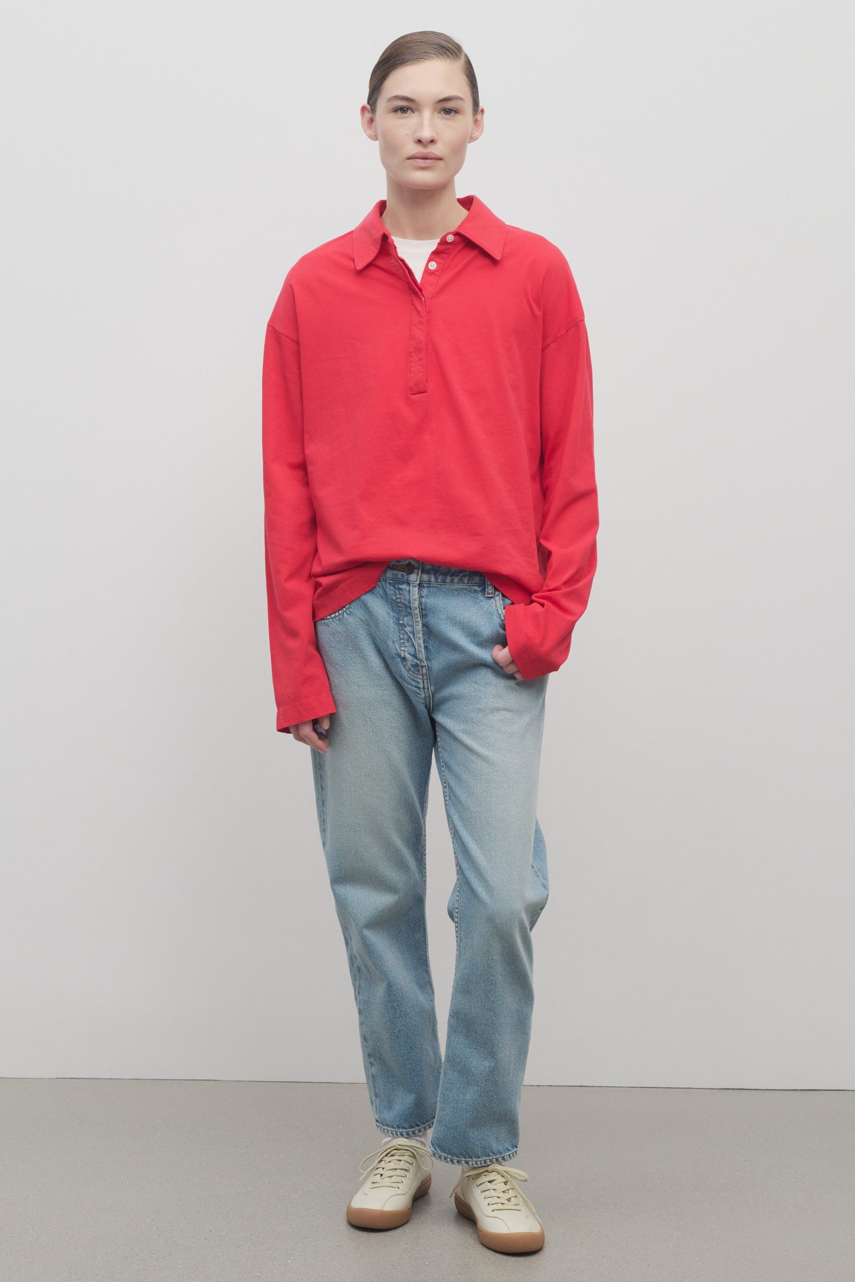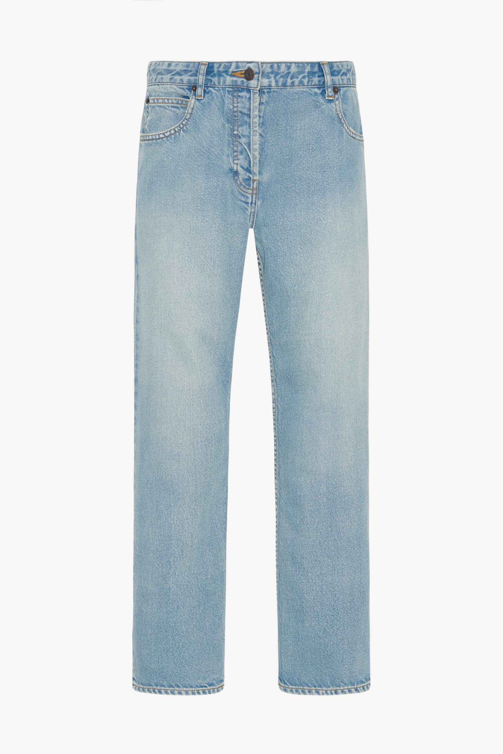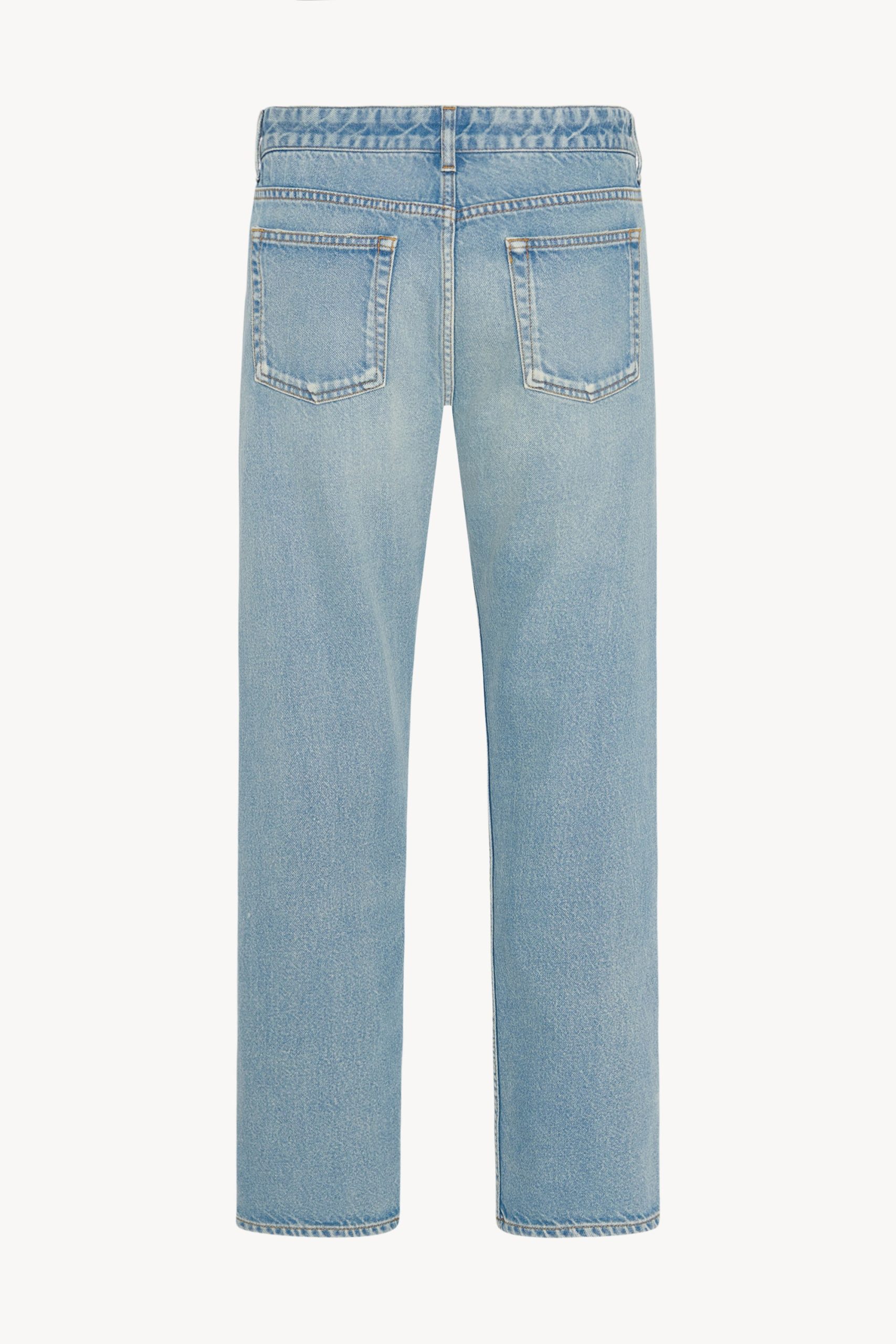 Mid-rise jean in in lightweight indigo denim with slim fit. contrast topstitching. and classic 5-pocket construction.
