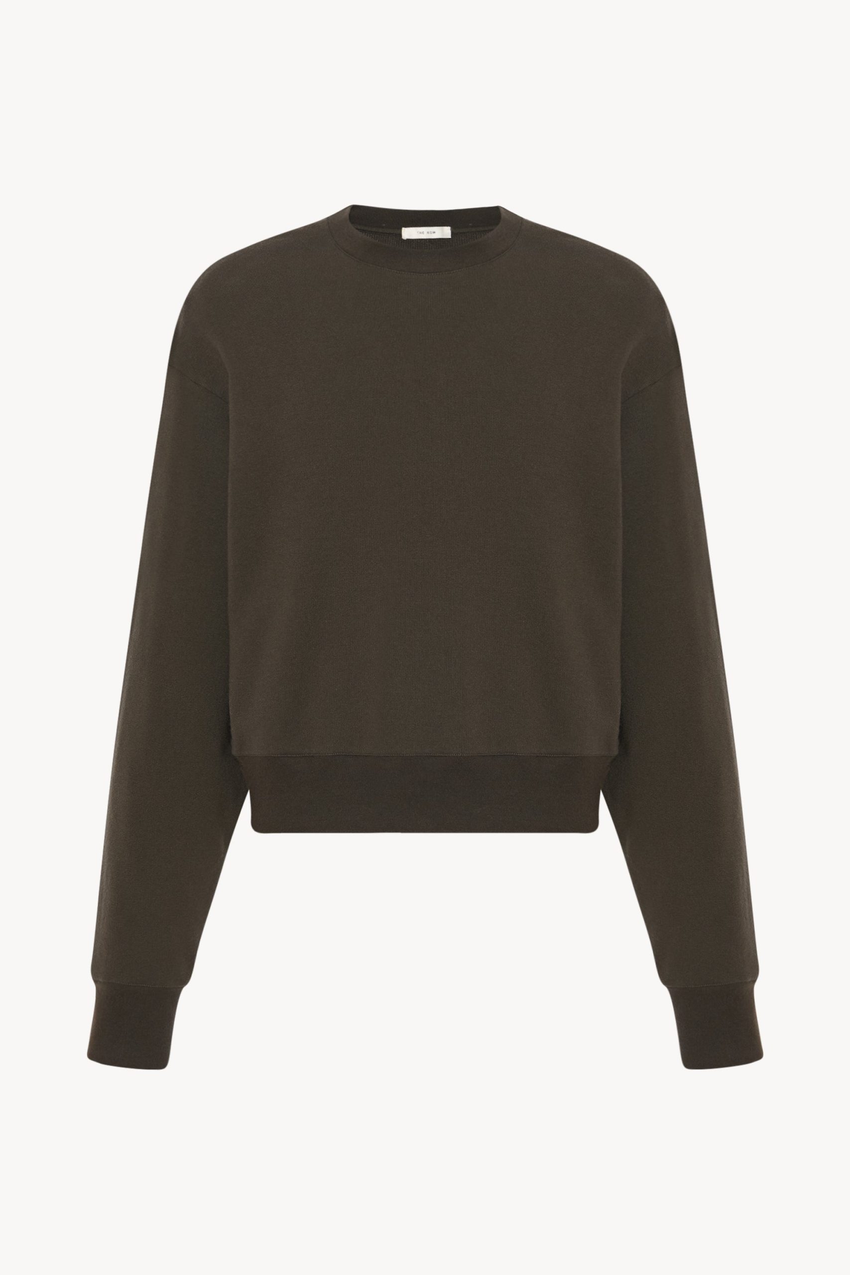 Relaxed crewneck sweatshirt in cotton and cashmere French terry with dropped shoulders and ribbed neckline. cuffs. and hem.