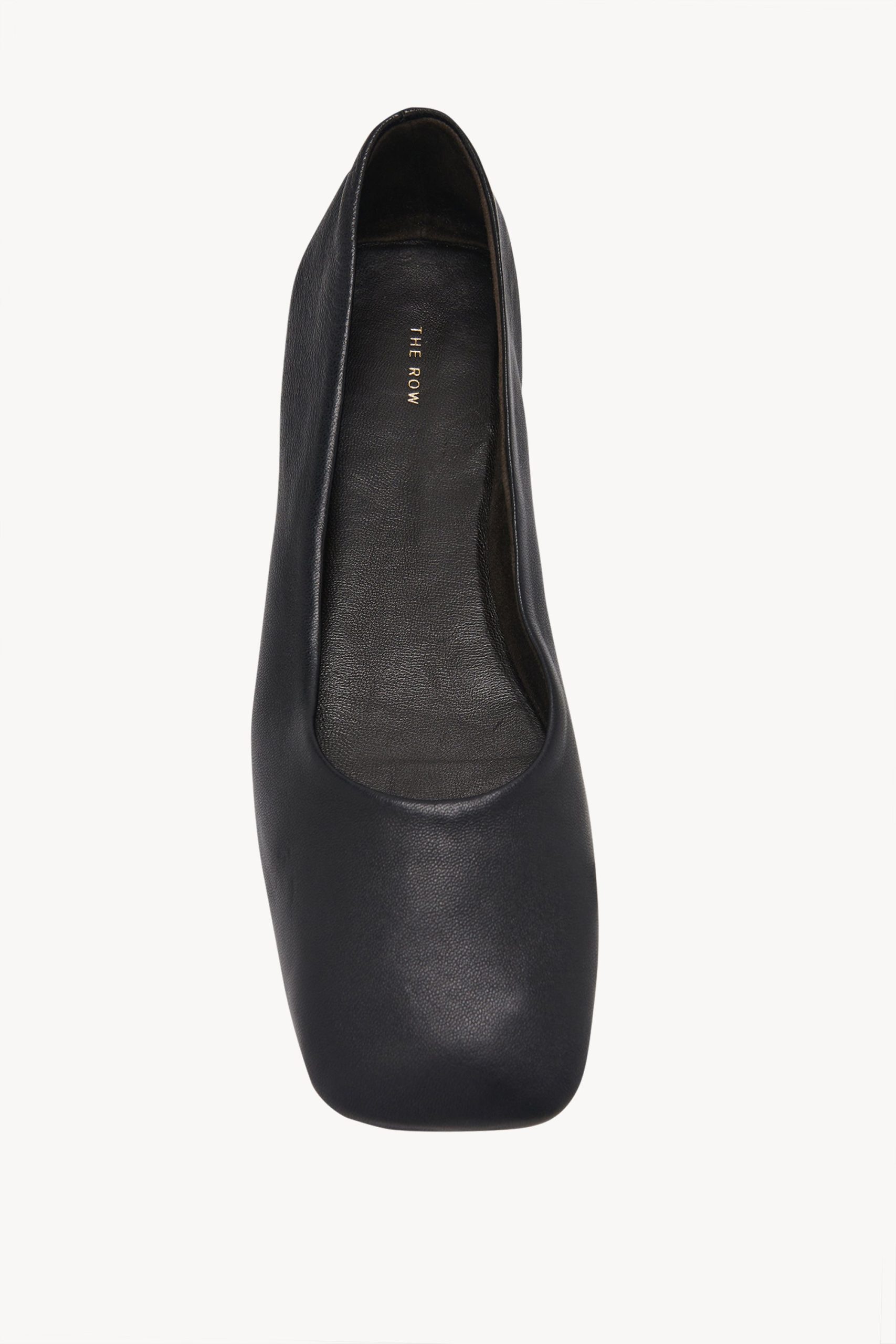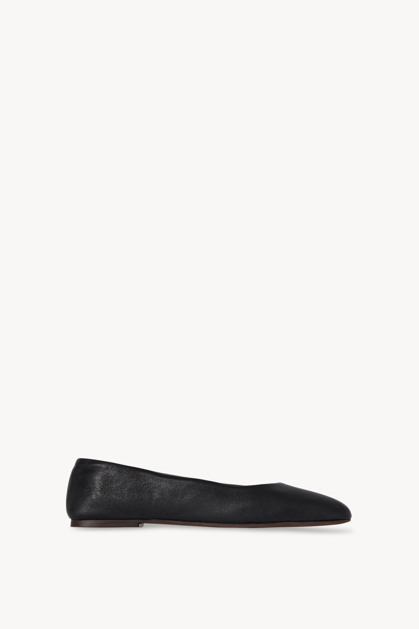 Minimal ballet flat in soft lightweight leather with squared toe and leather sole.