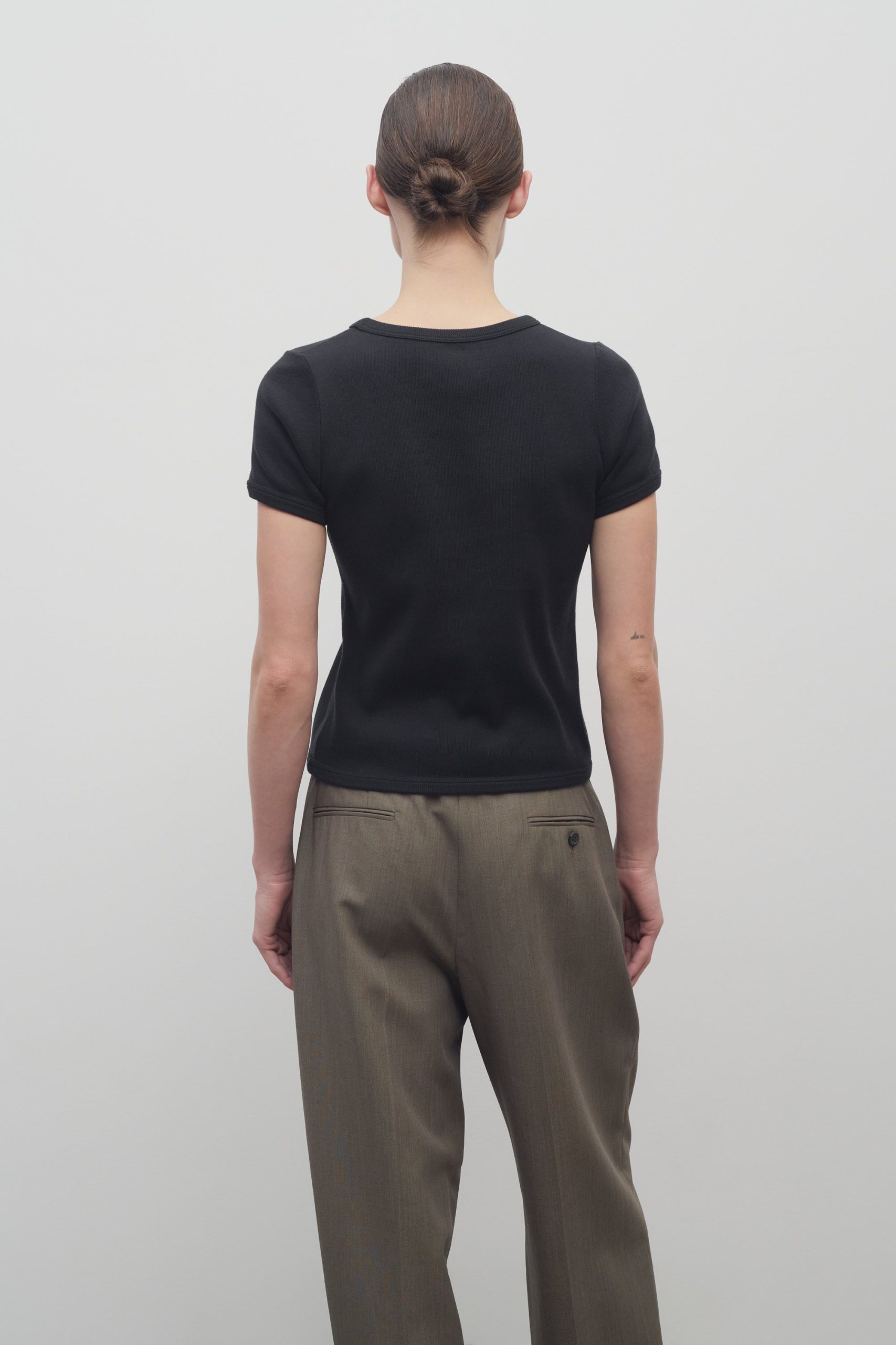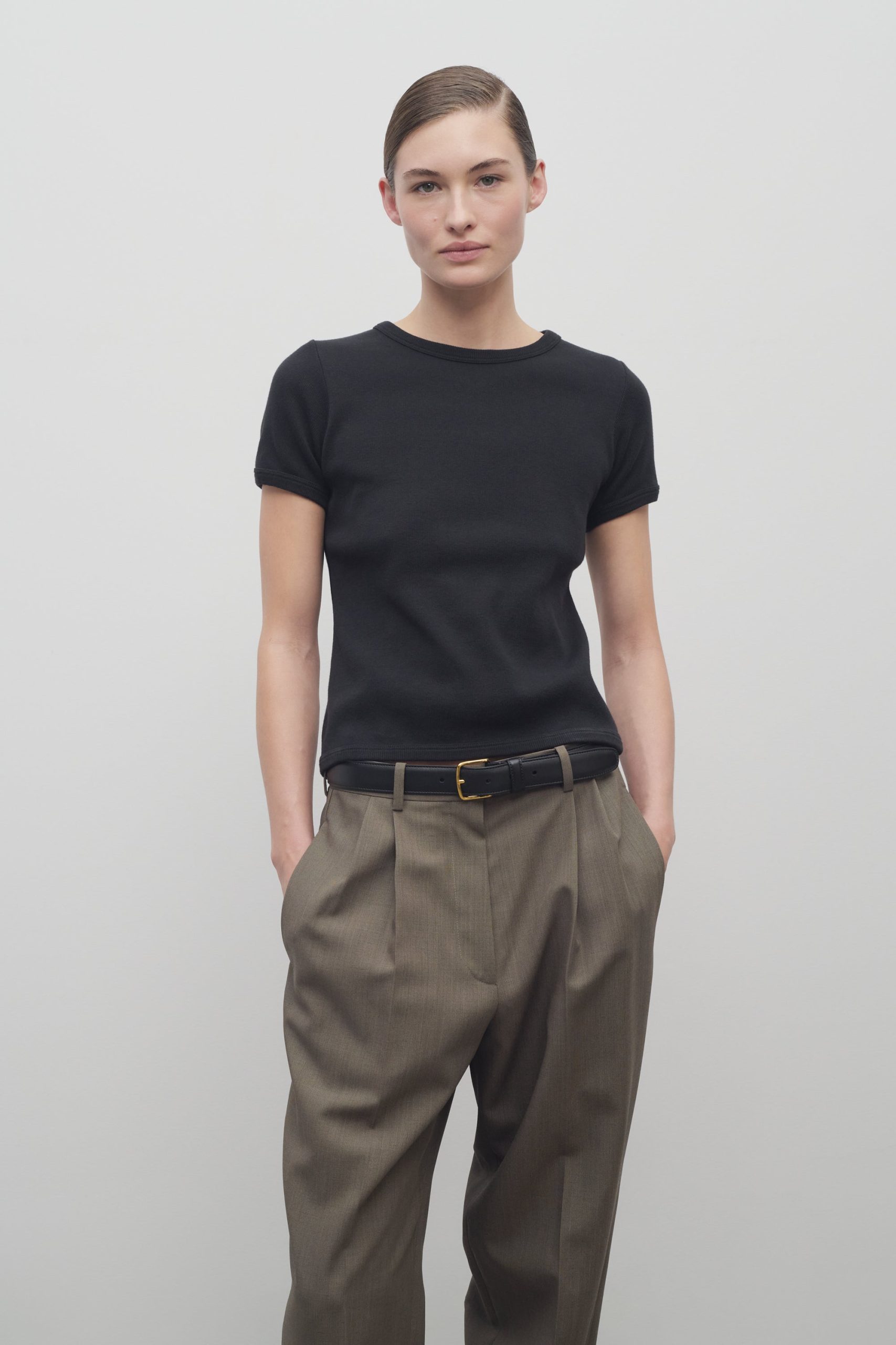 Classic crewneck t-shirt in heavyweight ribbed Japanese cotton with slim fit and ribbed neckline. cuffs. and hem.