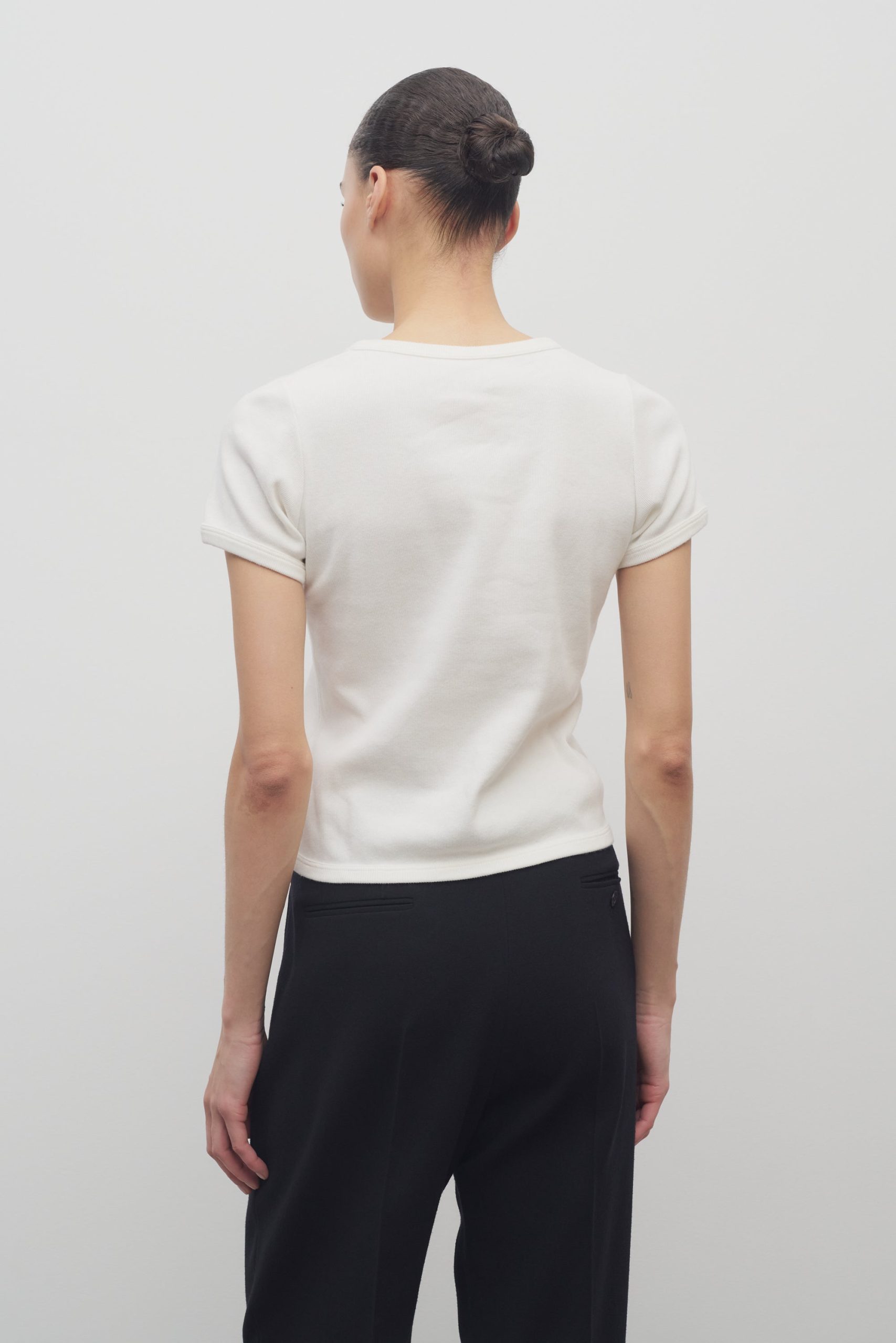 Classic crewneck t-shirt in heavyweight ribbed Japanese cotton with slim fit and ribbed neckline. cuffs. and hem.