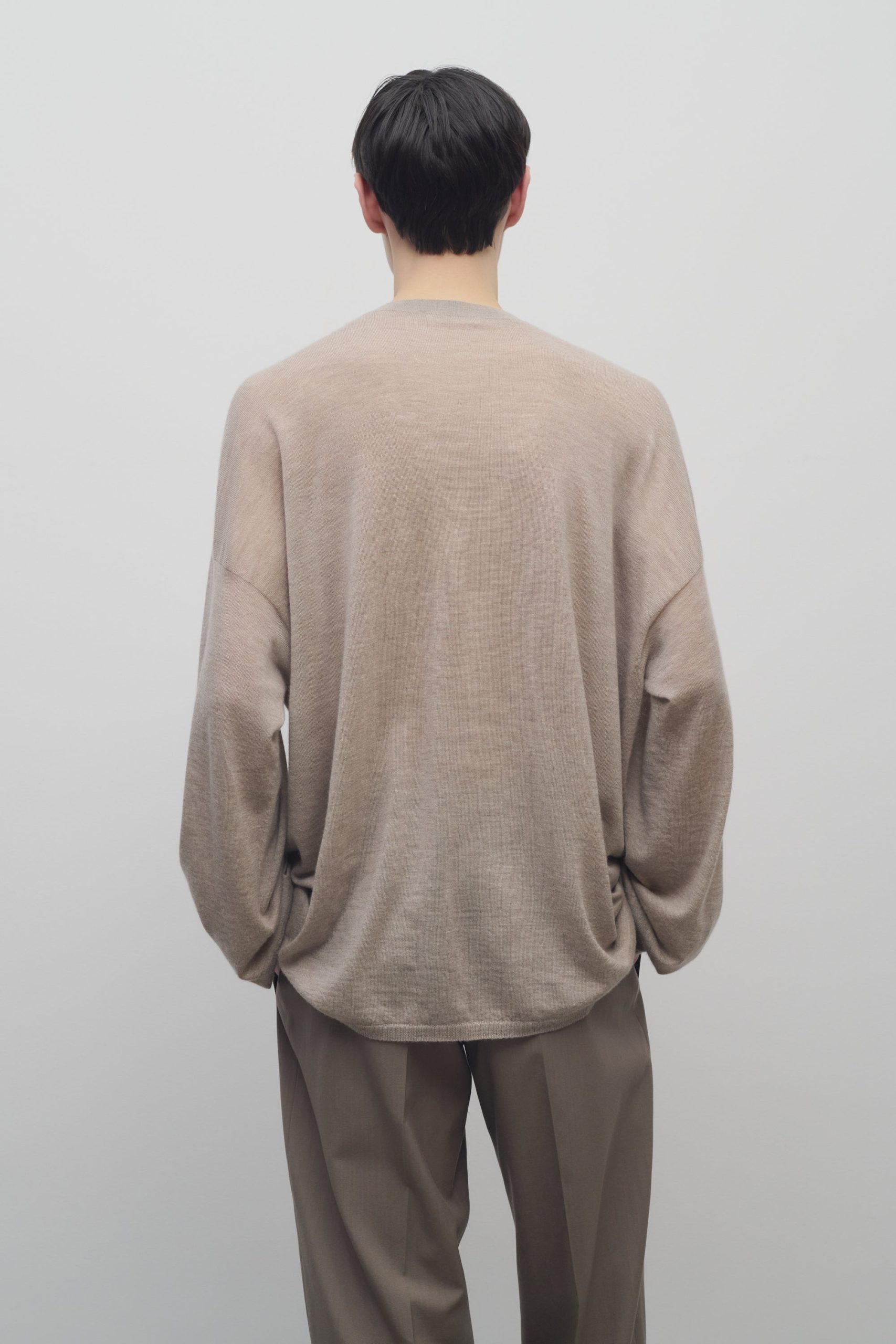 Oversized crewneck top in fine lightweight cashmere with dropped shoulders and ribbed neckline. cuffs. and hem.