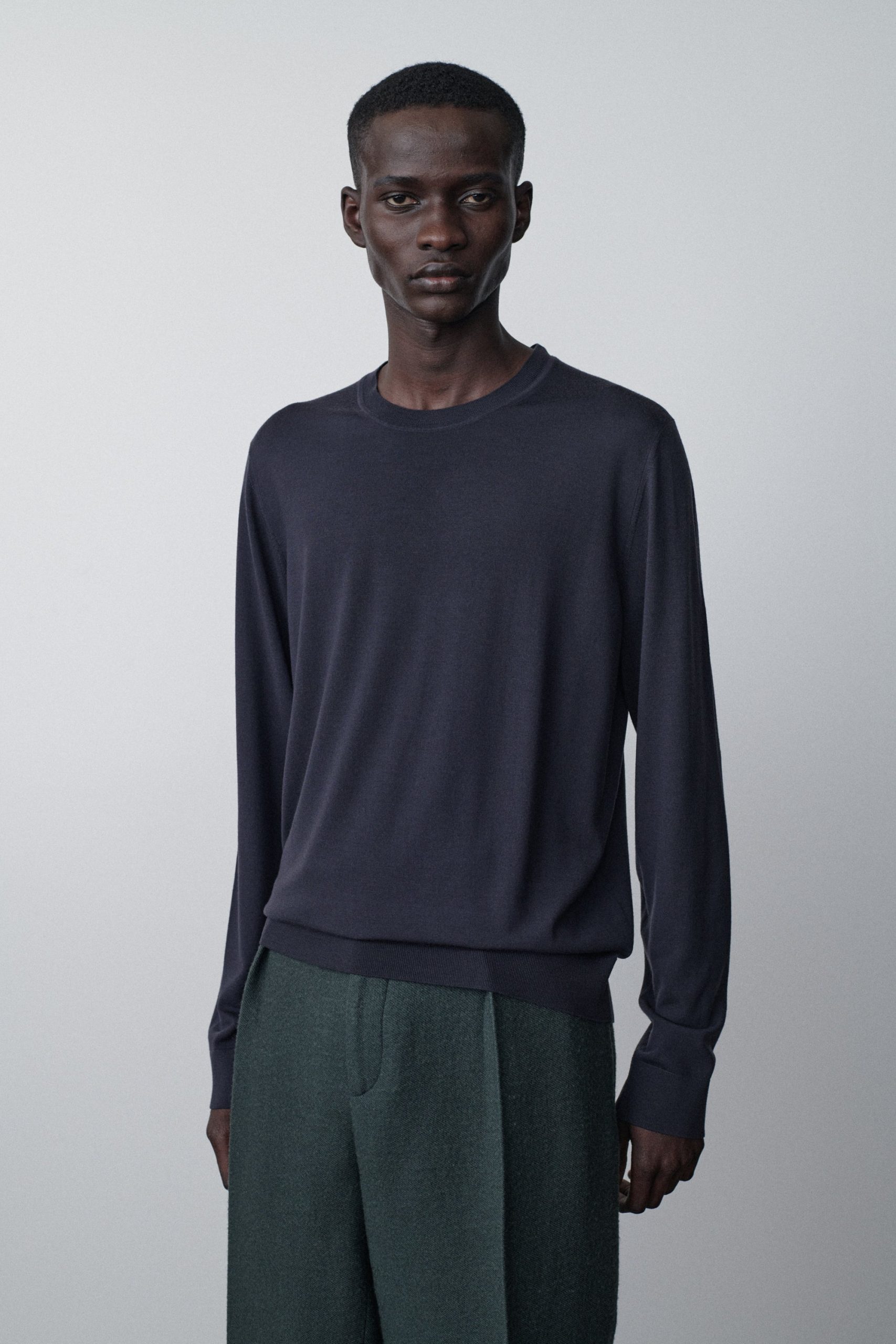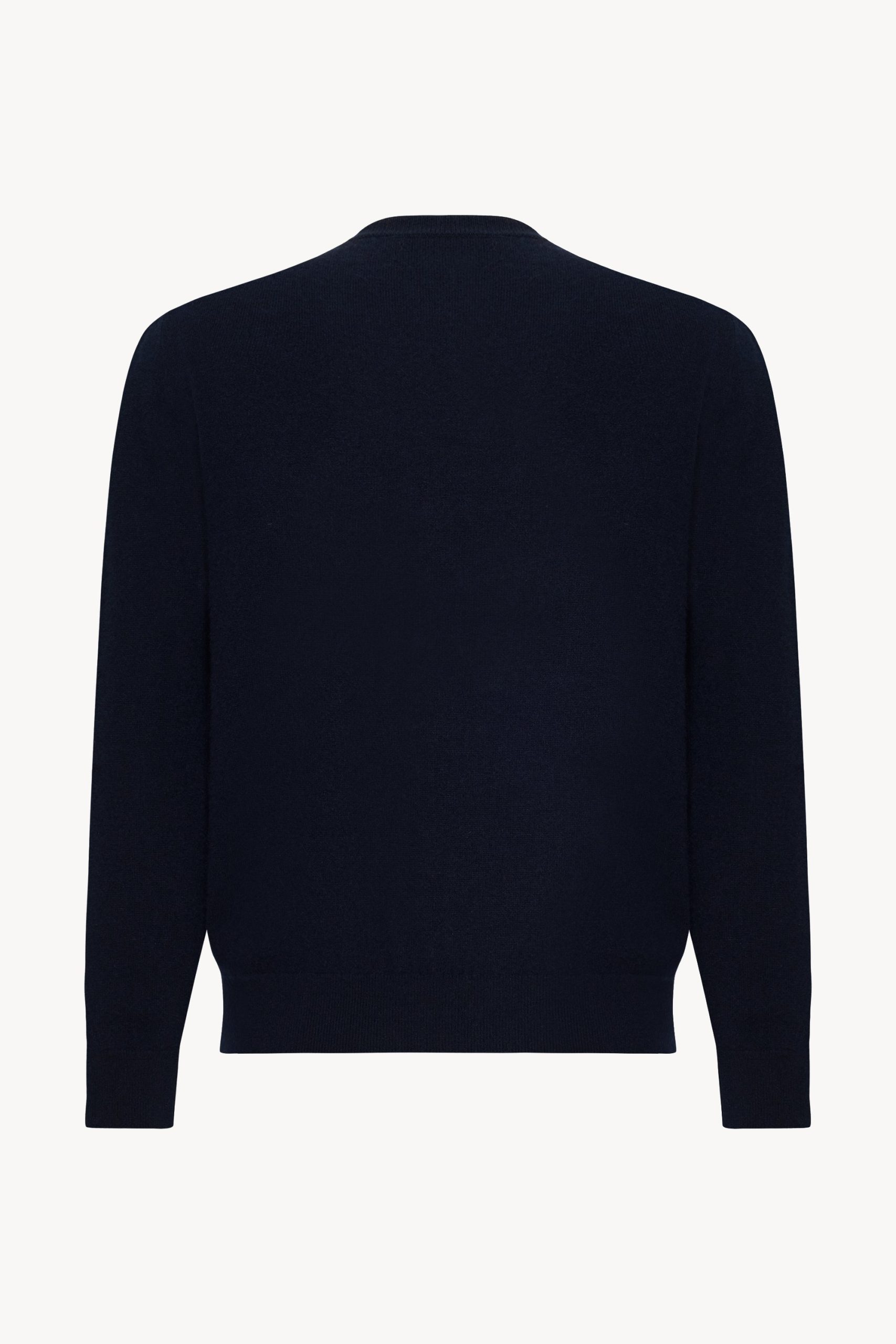 Long-sleeved crew neck top in cashmere jersey with regular fit. ribbed neckline. cuff and hem. and signature center back detail.