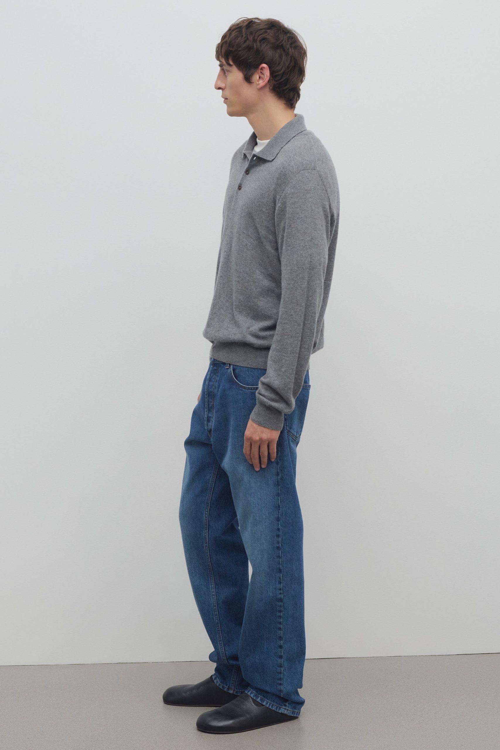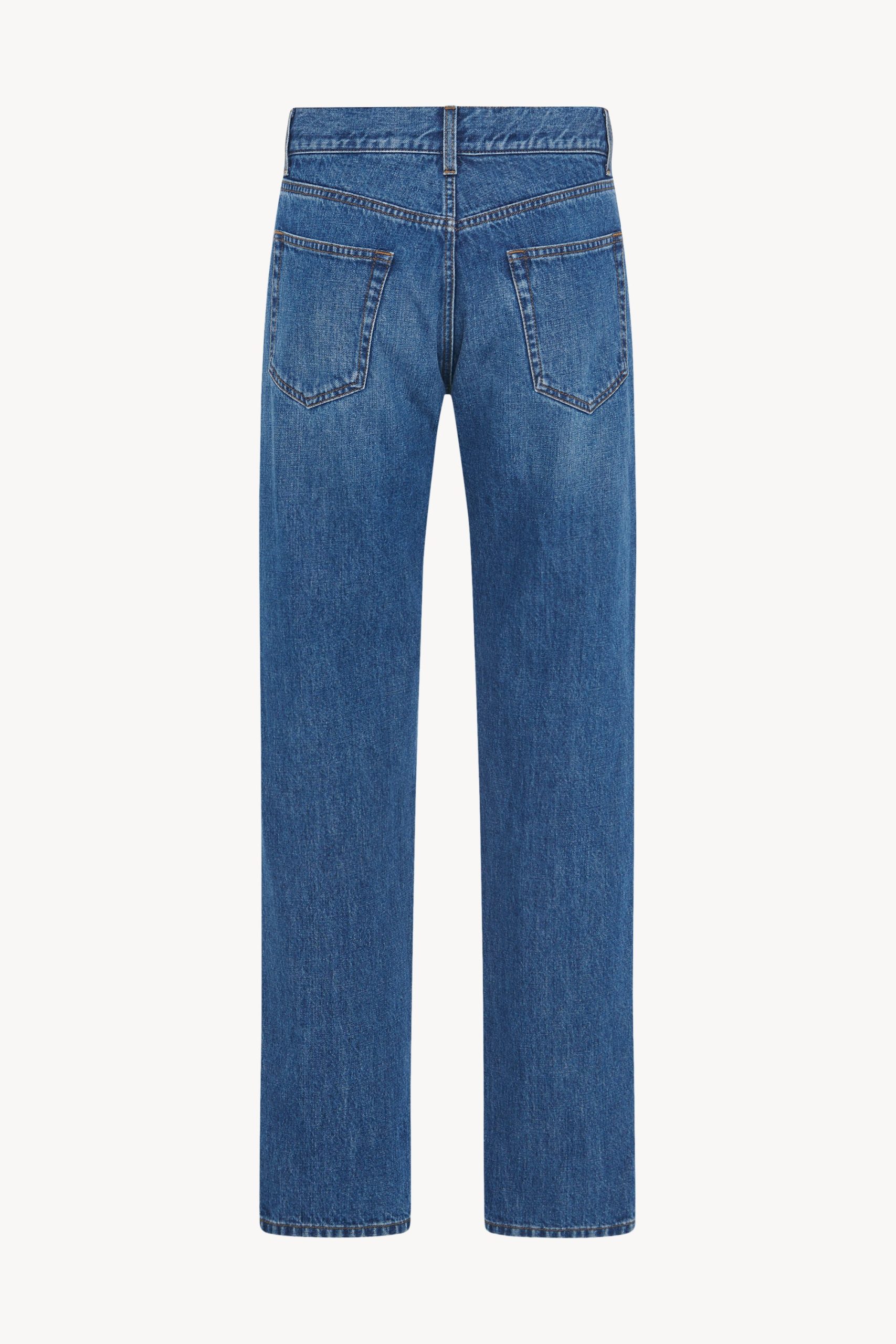 Relaxed fit jean in garment treated denim with classic 5-pocket construction. contrast topstitching. and zipper fly closure.