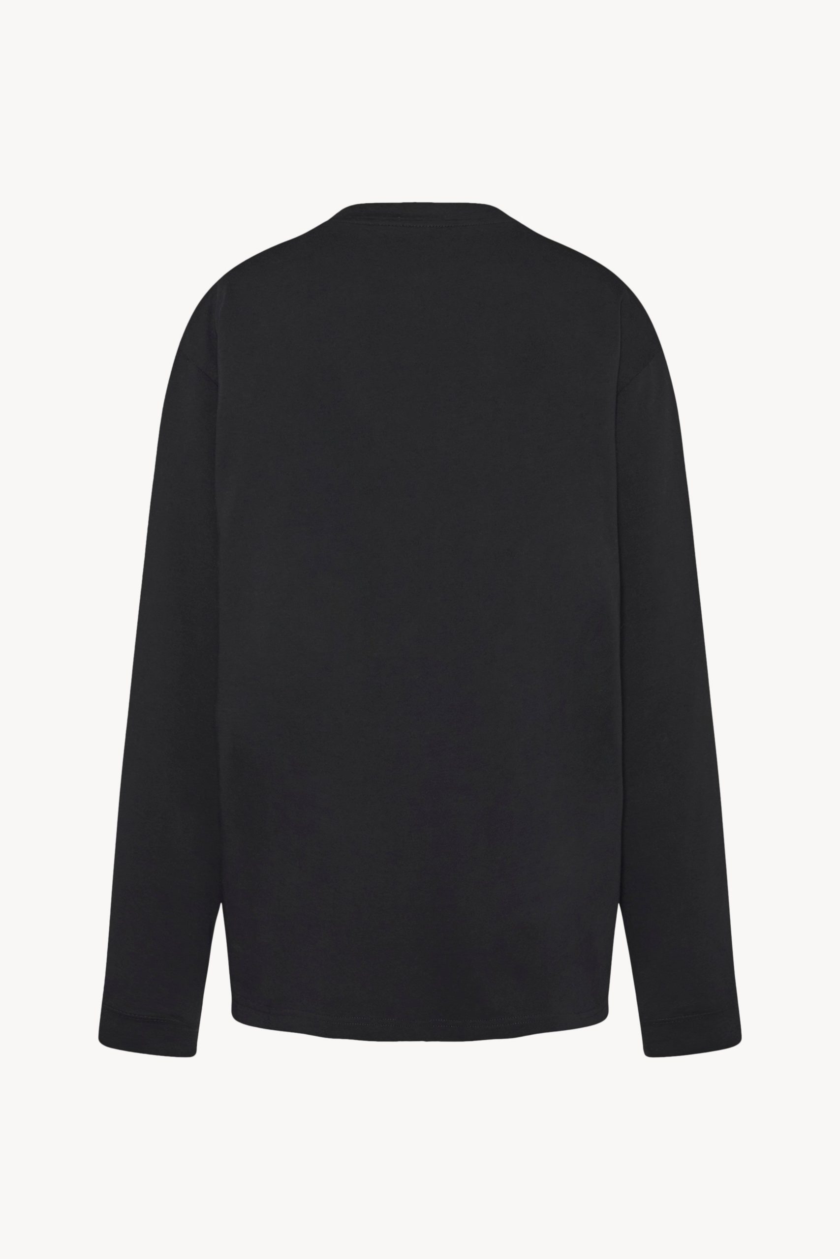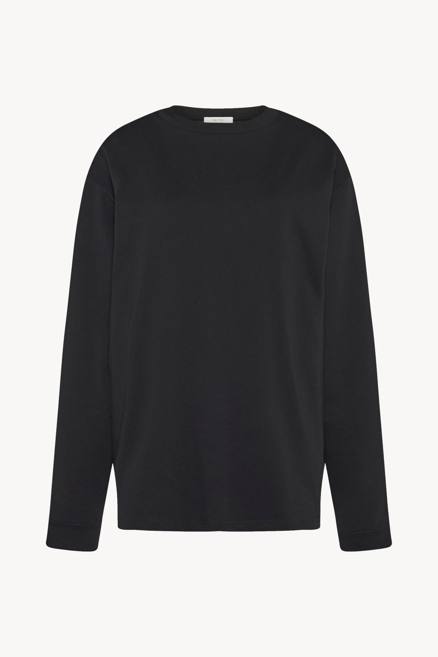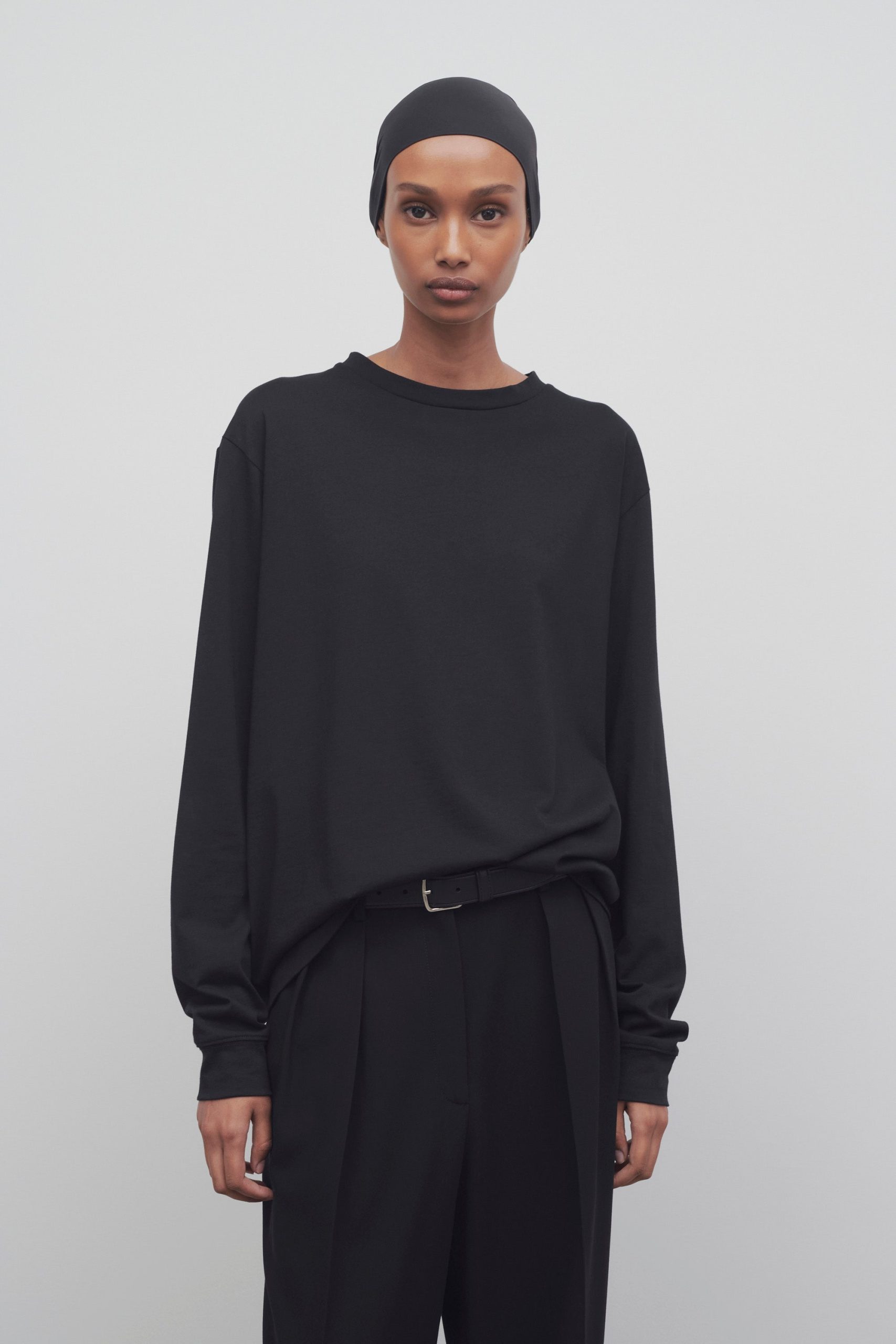 Oversized long-sleeved t-shirt in soft organic Pima cotton with dropped shoulder and wide crew neckline.