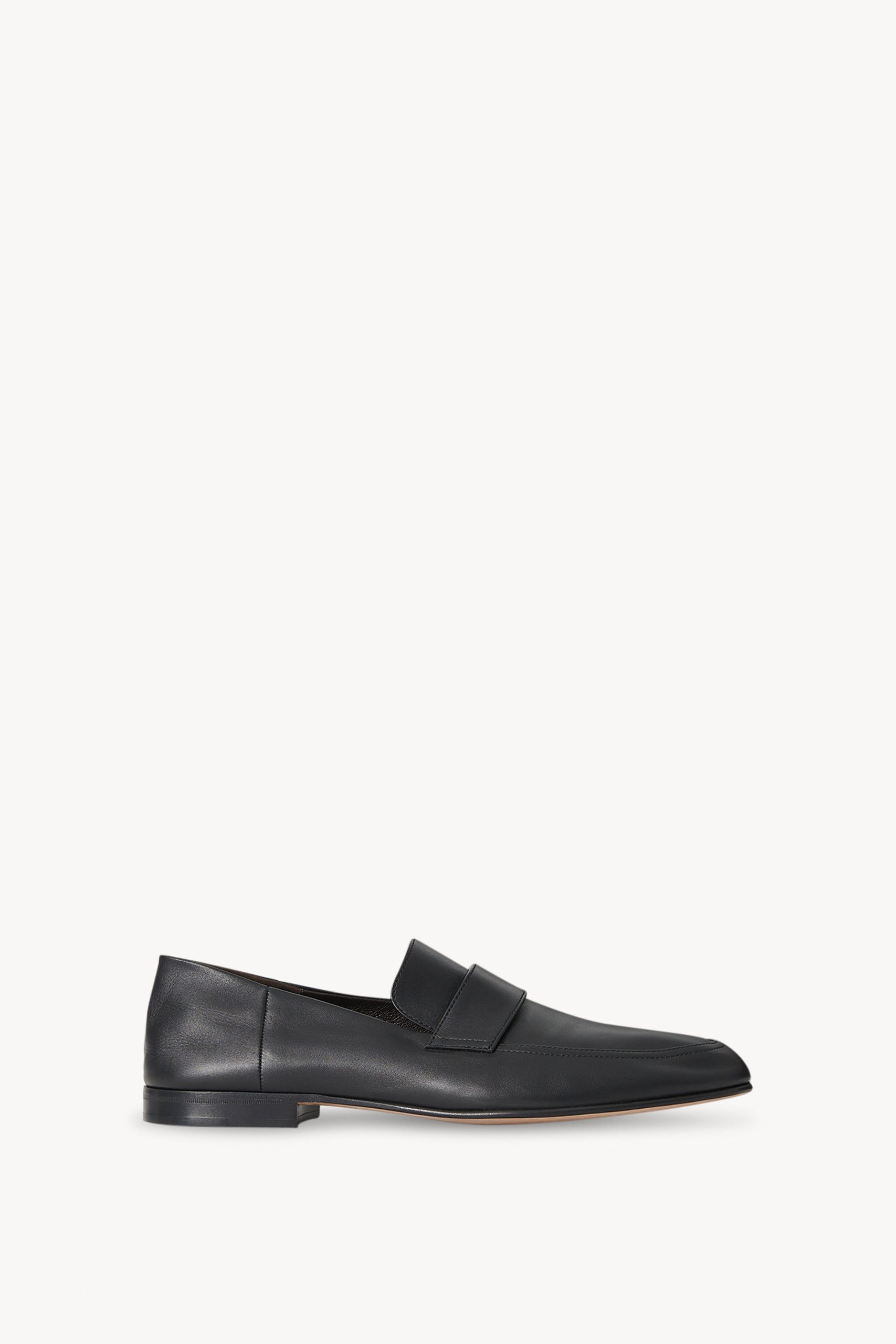 Classic slip-on loafer in matte calfskin leather with leather sole.