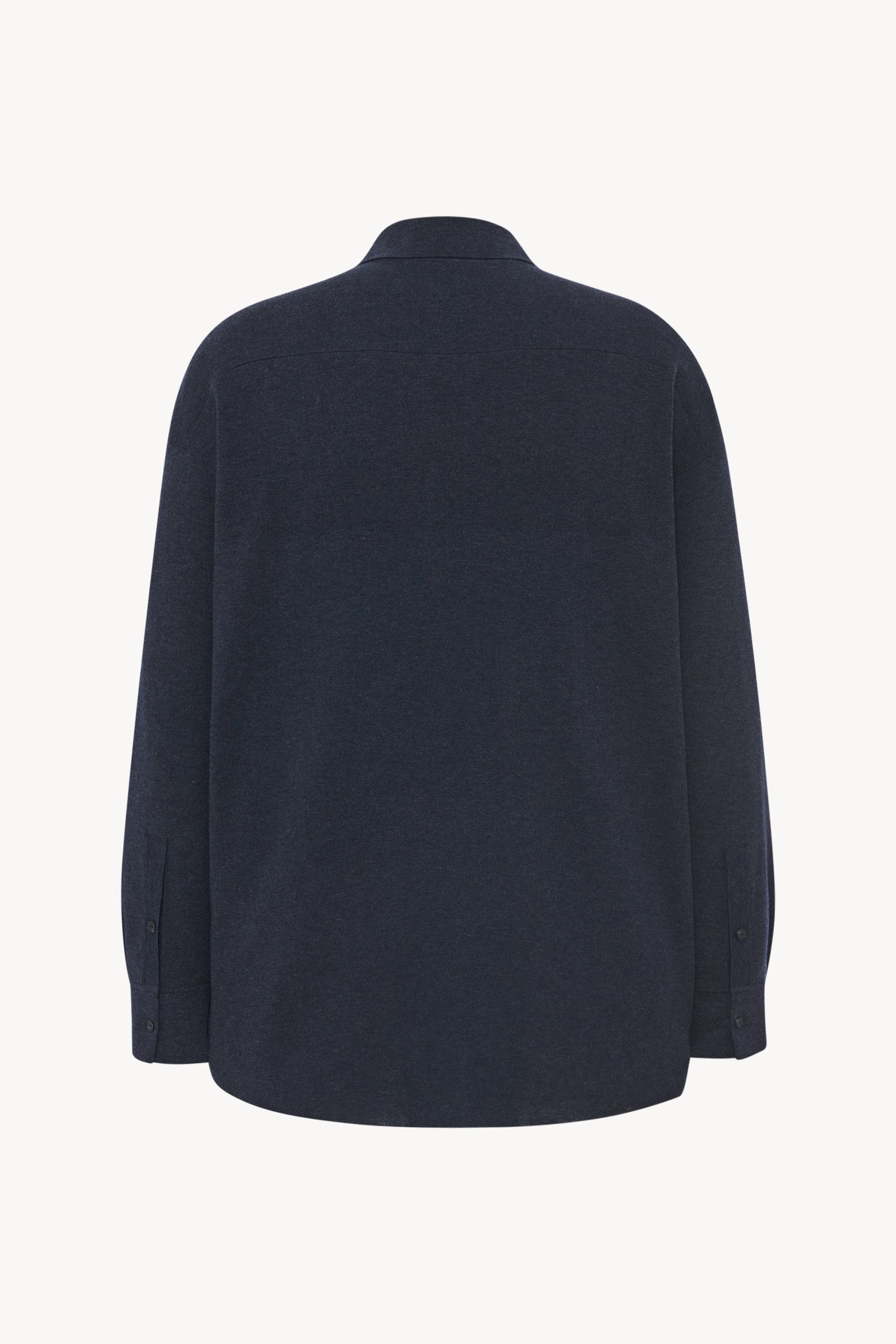 Collared overshirt in finely knit cotton and cashmere with relaxed fit and concealed front button placket. and straight hem.
