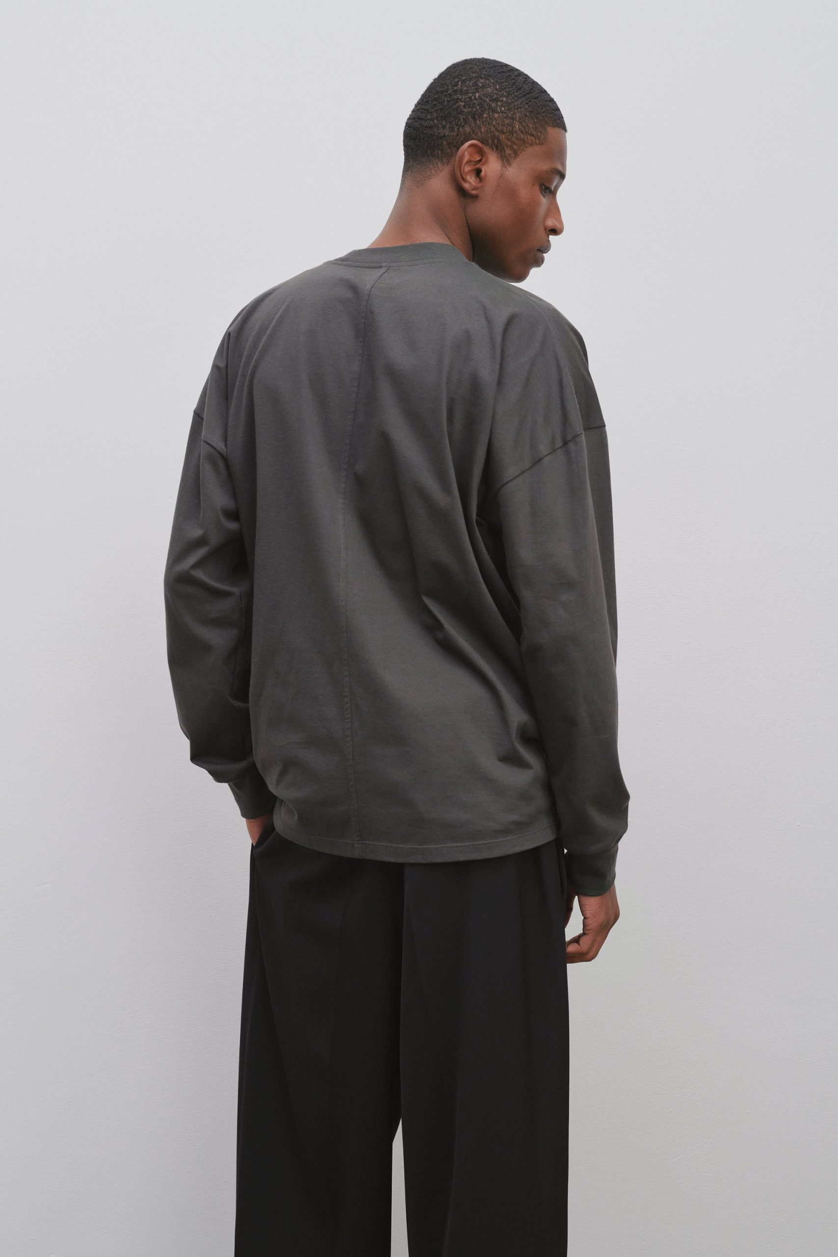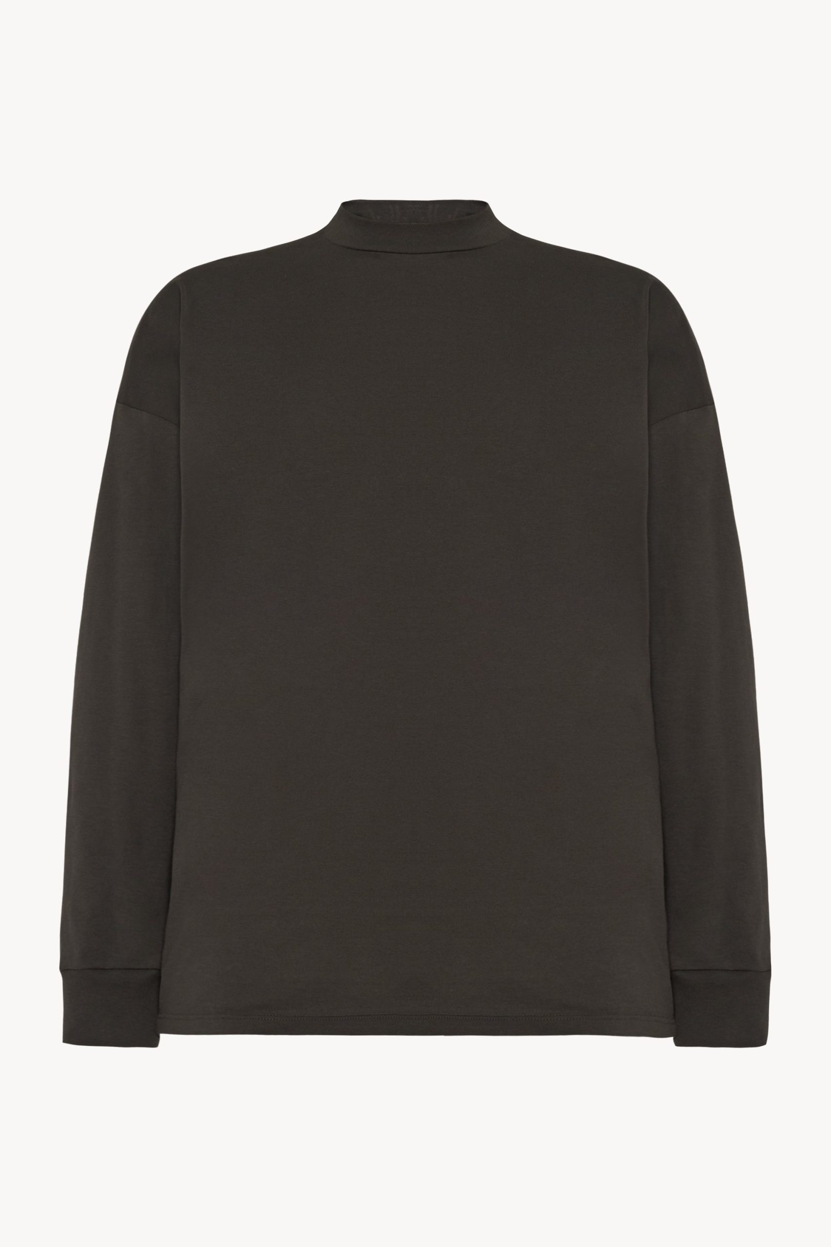 Long-sleeved mock neck t-shirt in Supima cotton jersey with oversized fit and ribbed collar.