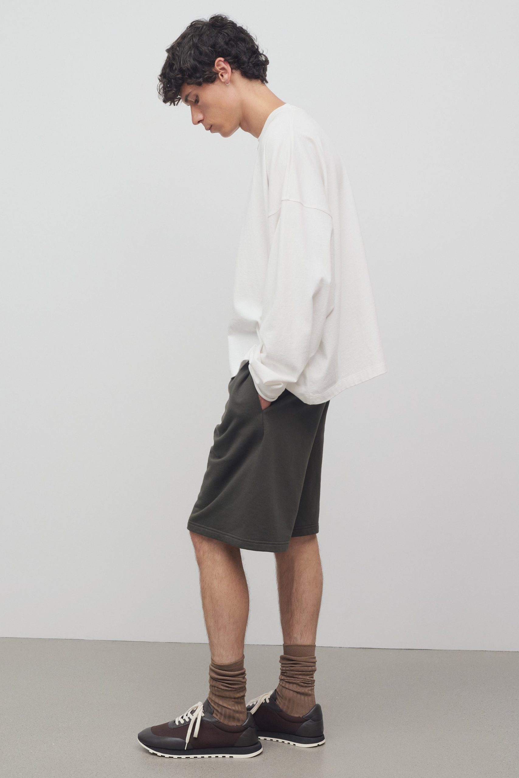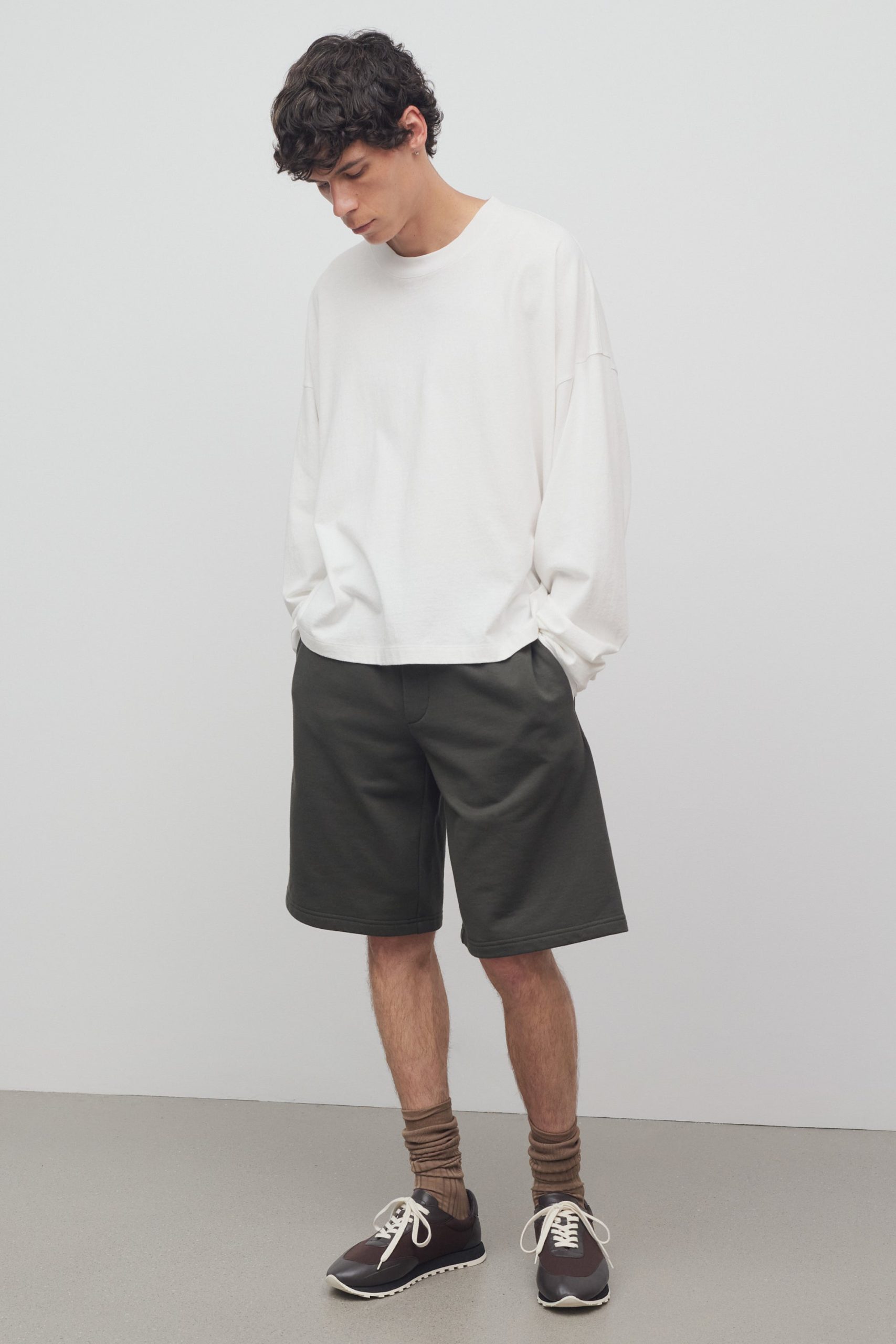 Relaxed fit pull on shorts in soft cotton jersey with elastic waistband and side seam pockets.