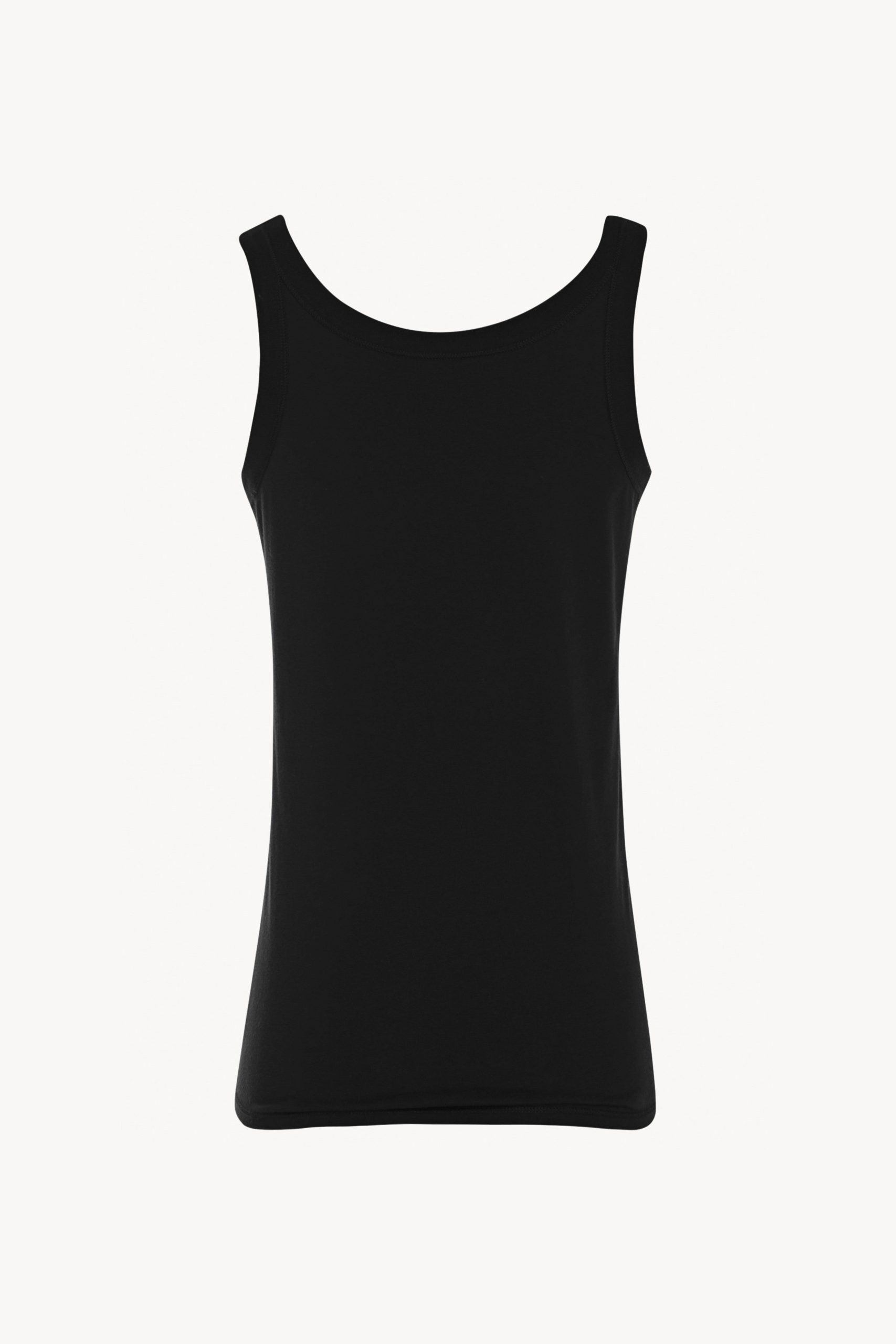 Lightweight tank top in organic ribbed cotton with ribbed straps and neckline.