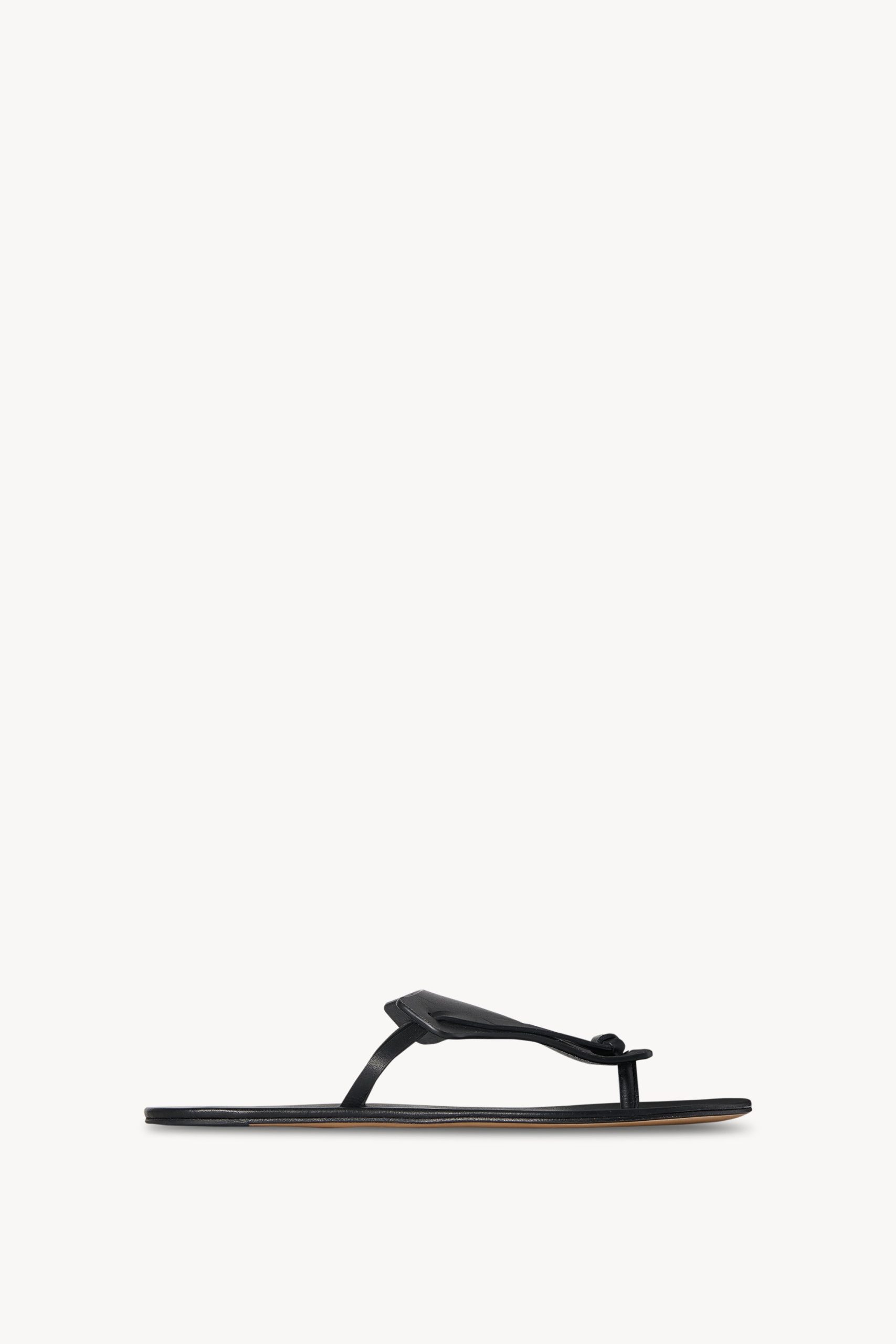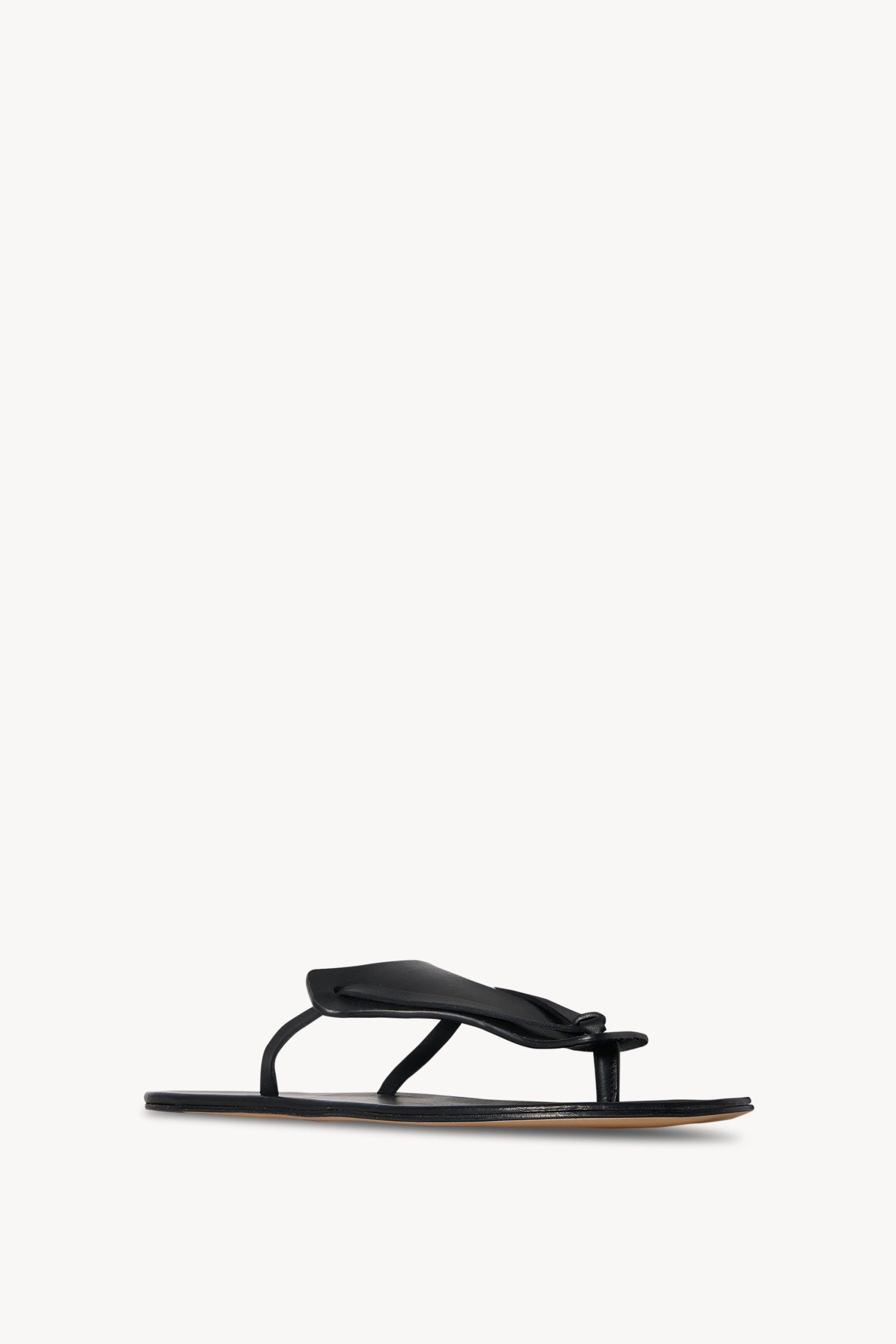 Sculptural flip-flop sandal in vegetable tanned calfskin leather with layered straps and slim leather sole.