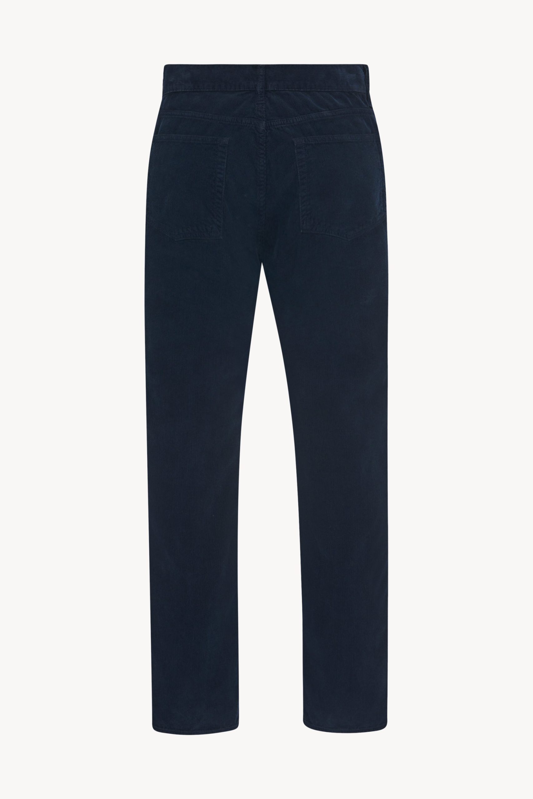 Straight-fit pant in Japanese cotton corduroy with classic 5-pocket construction. tonal topstitching. and zipper fly closure.