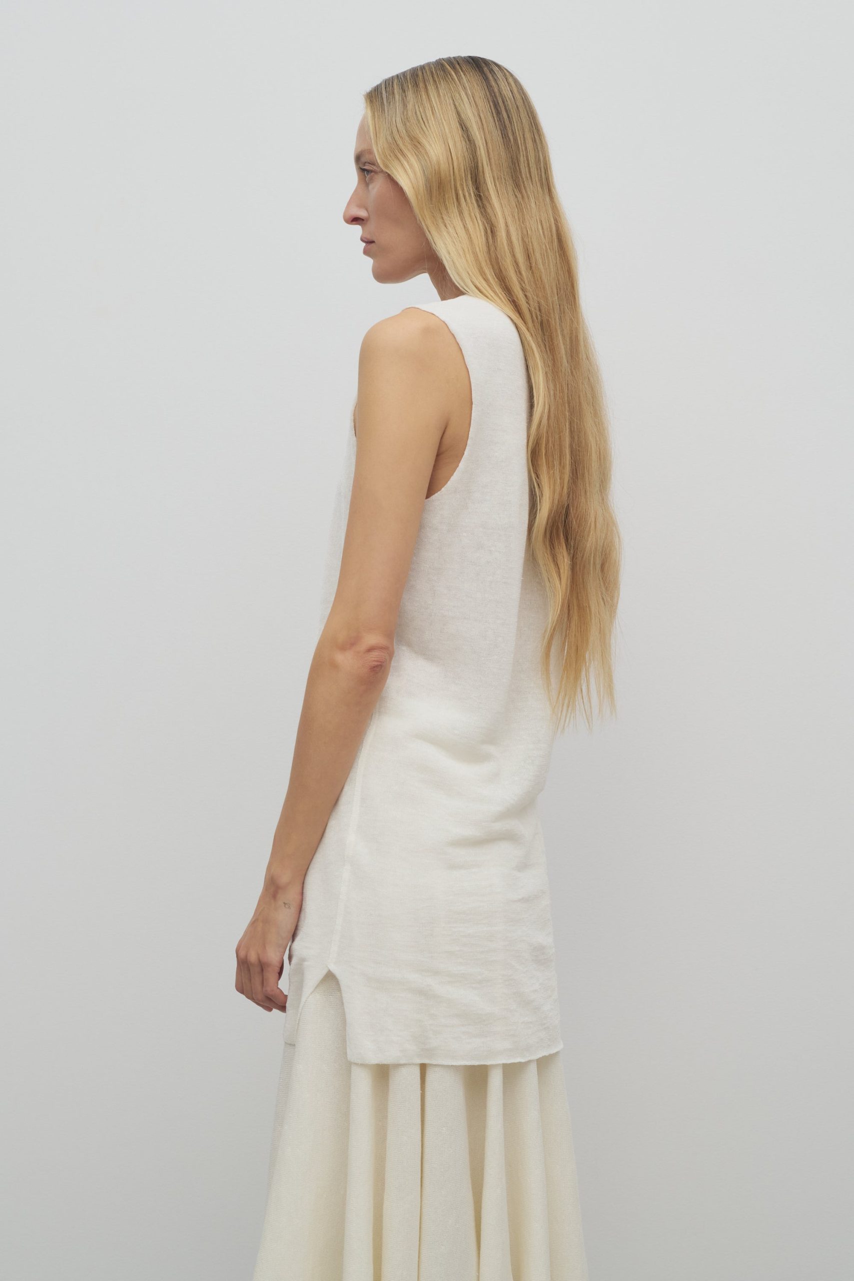 Elongated tank top in textured linen and cotton knit with squared neckline and straight fit.