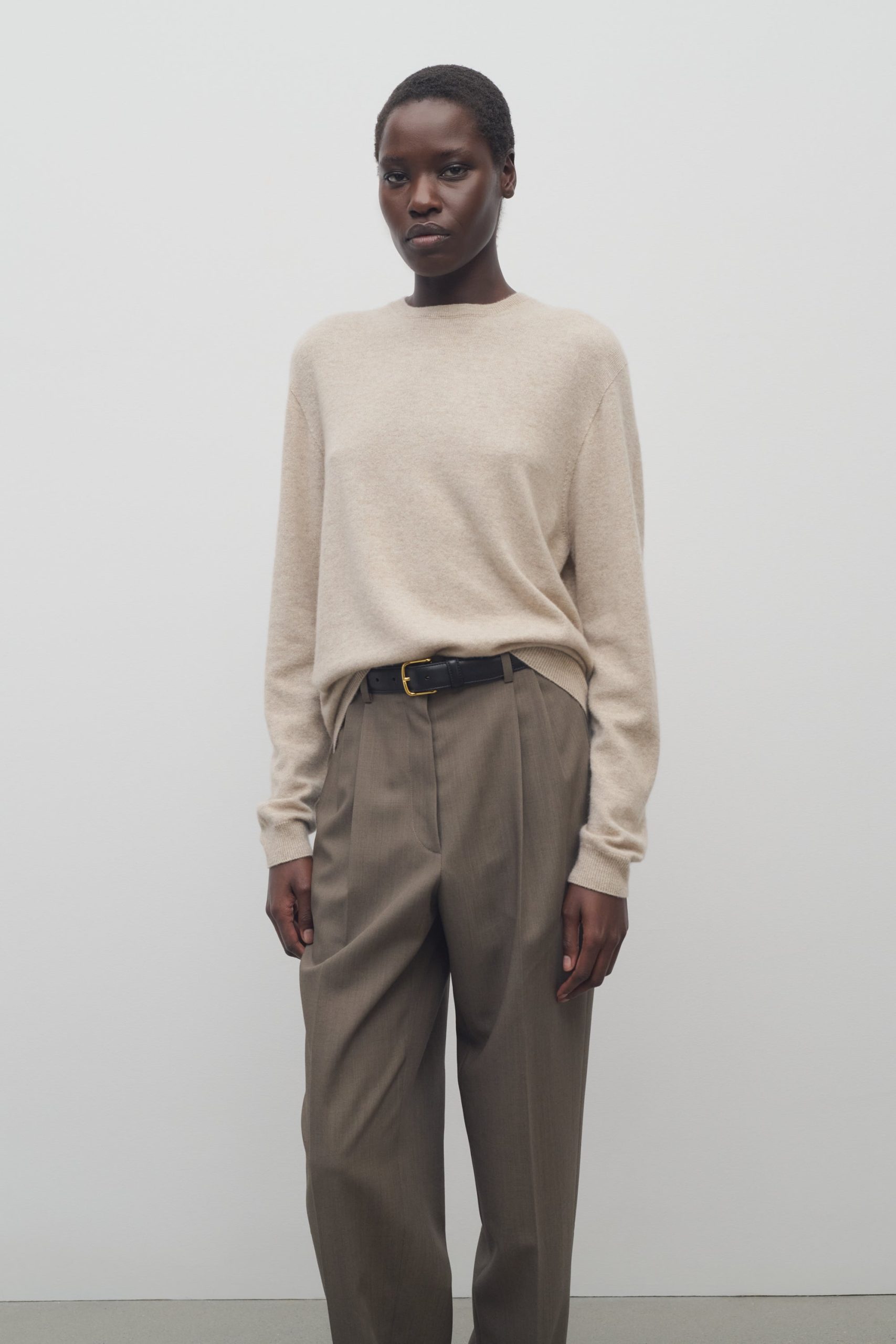 Classic crewneck sweater in soft lightweight cashmere with relaxed fit and ribbed neckline. cuffs. and hem.