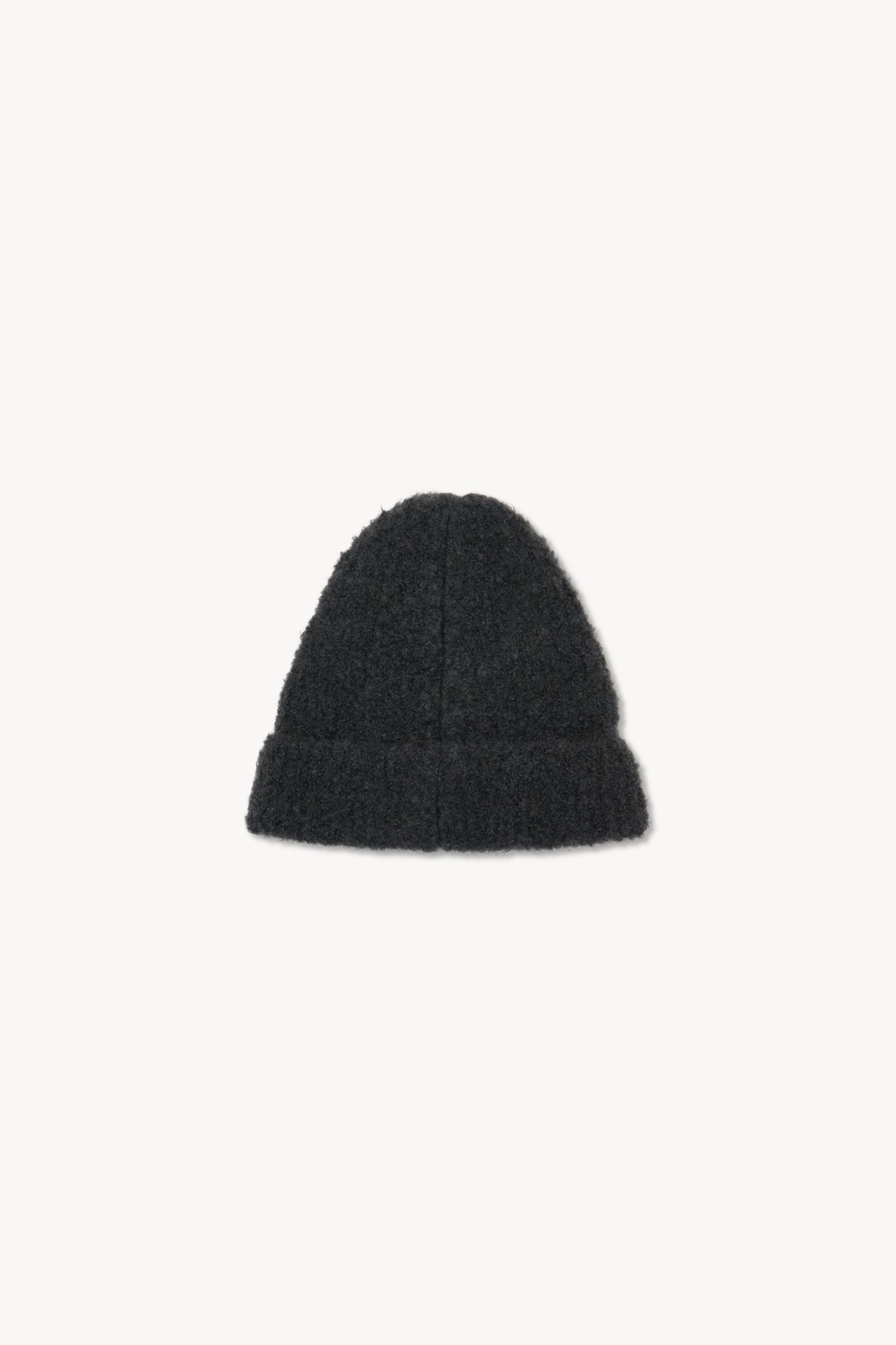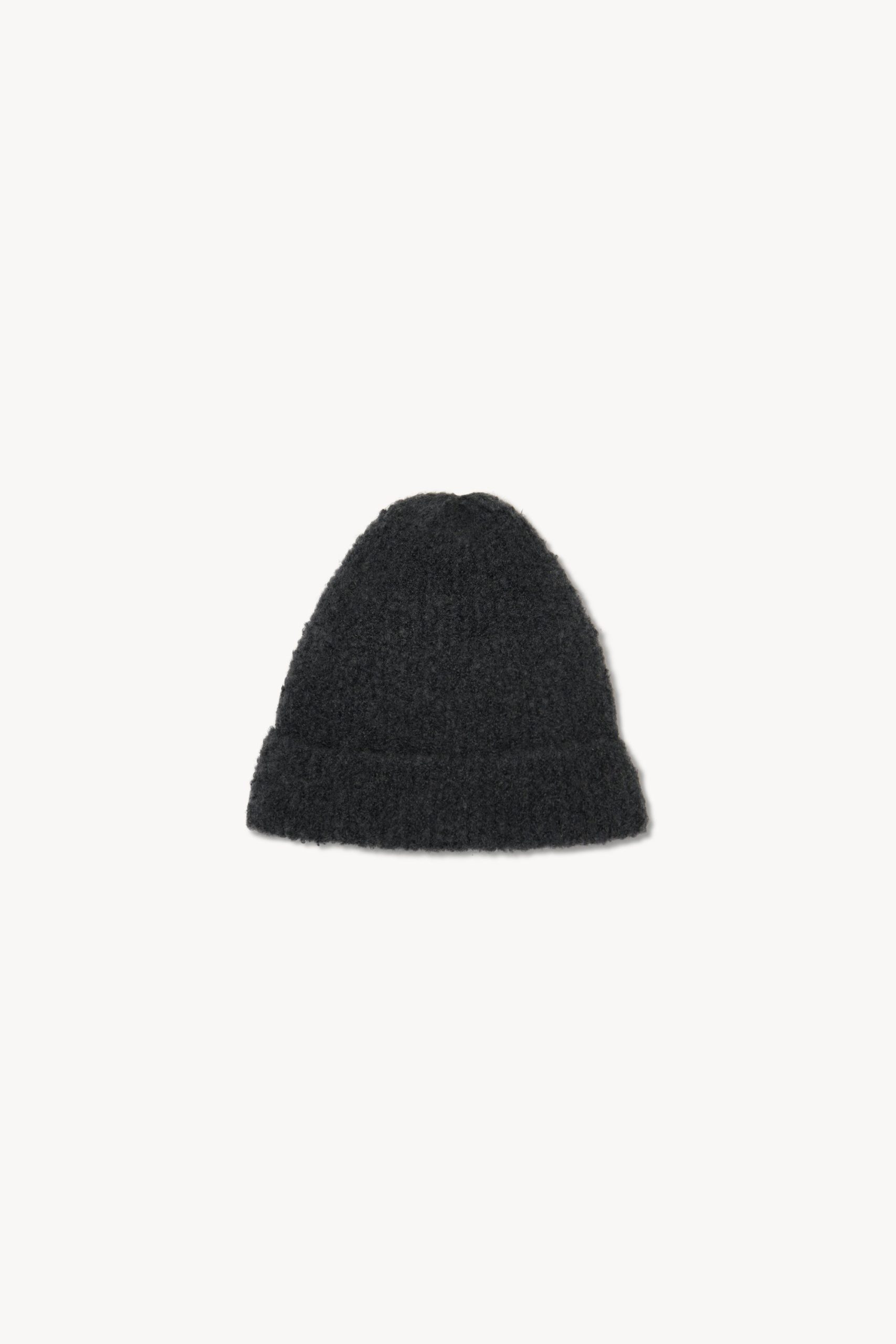 Fitted beanie in textured alpaca and cashmere bouclé with ribbed construction and clean finish.